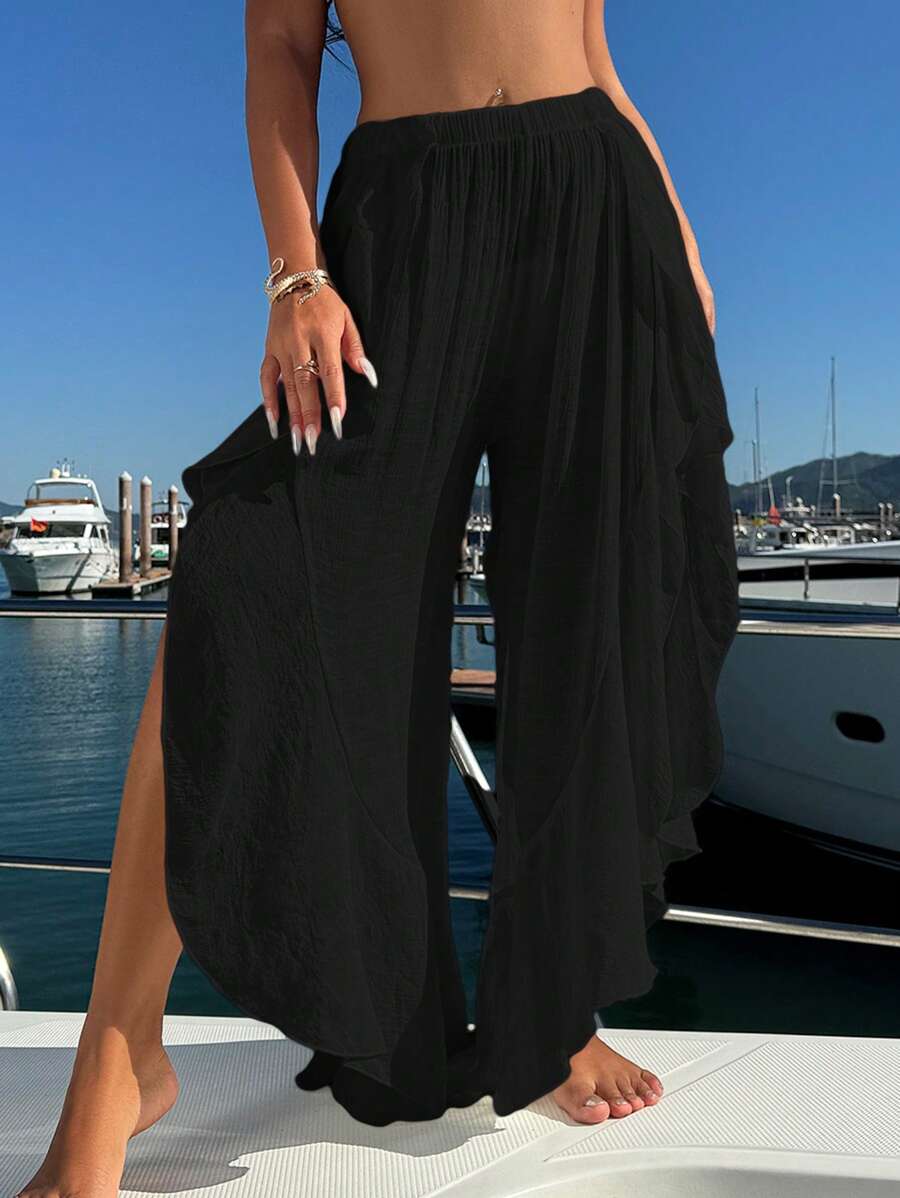 1 pieza pantalon transparente de playa con volantes y unicolor para mujer en verano