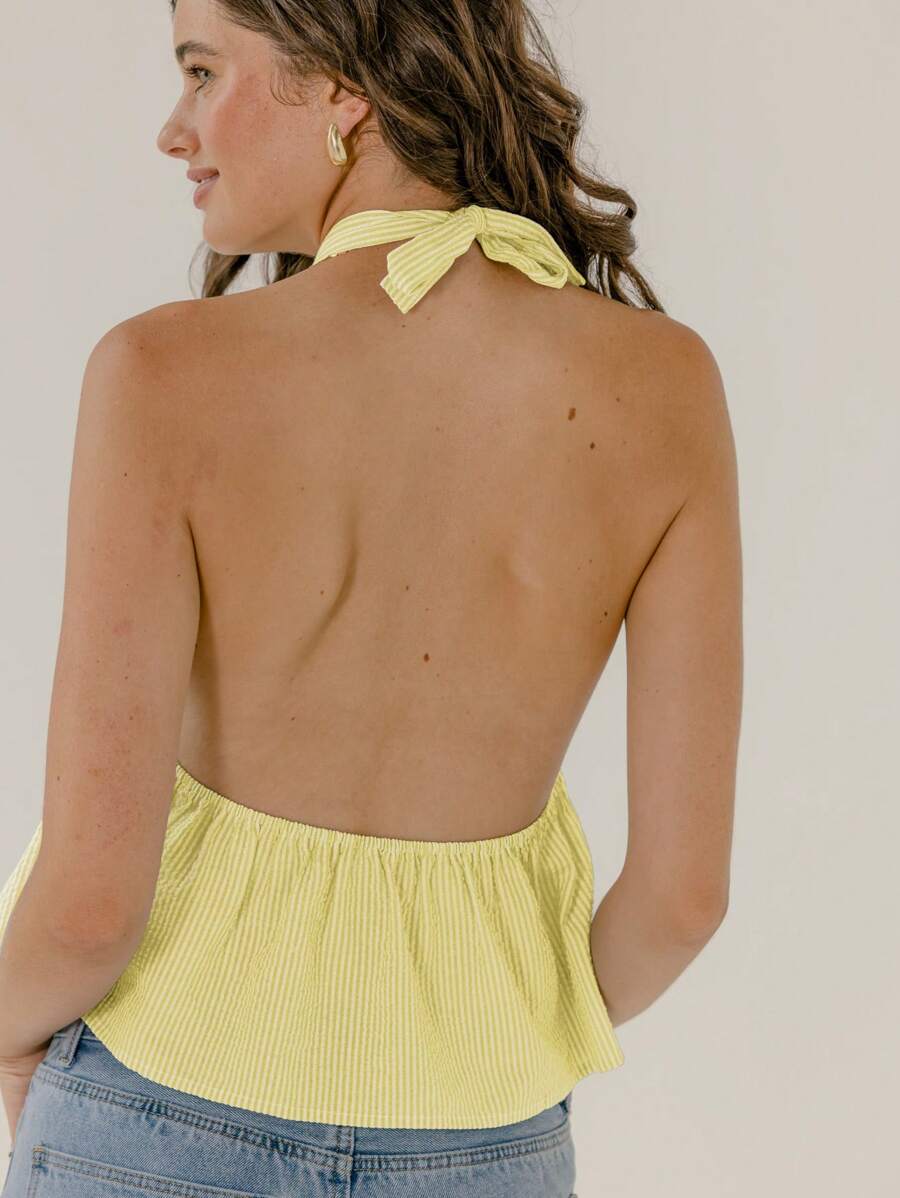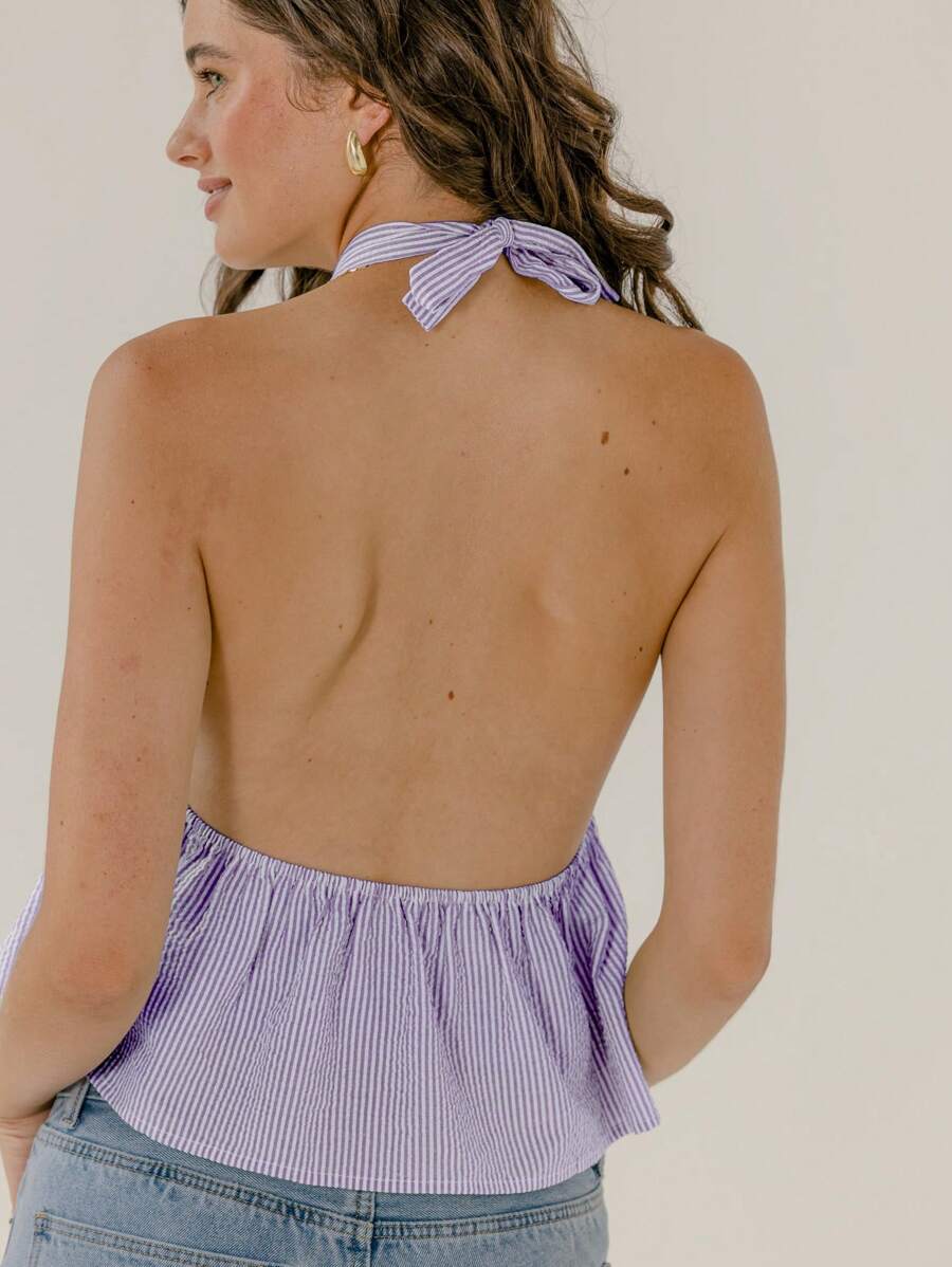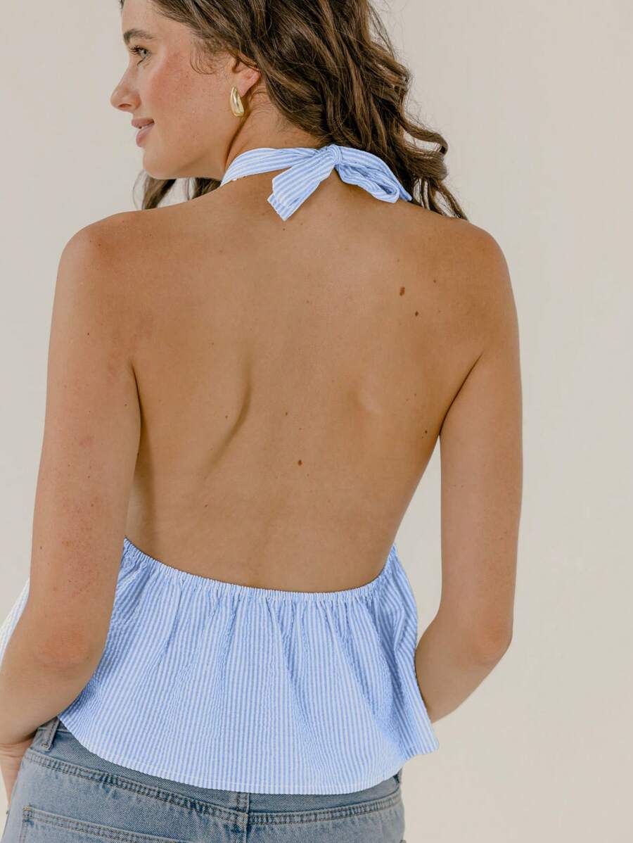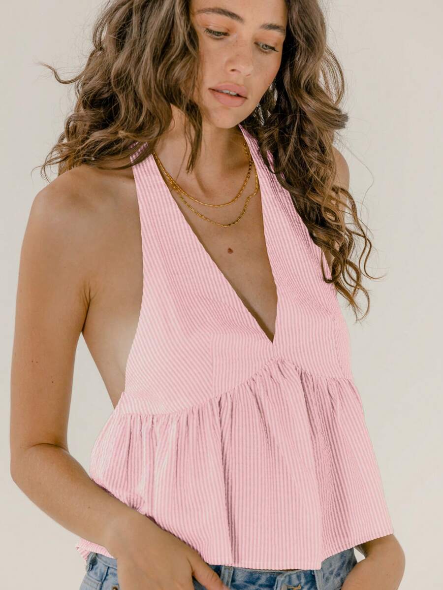 Aralina top de verano con cuello de halter, fluido y femenino con diseno de rayas