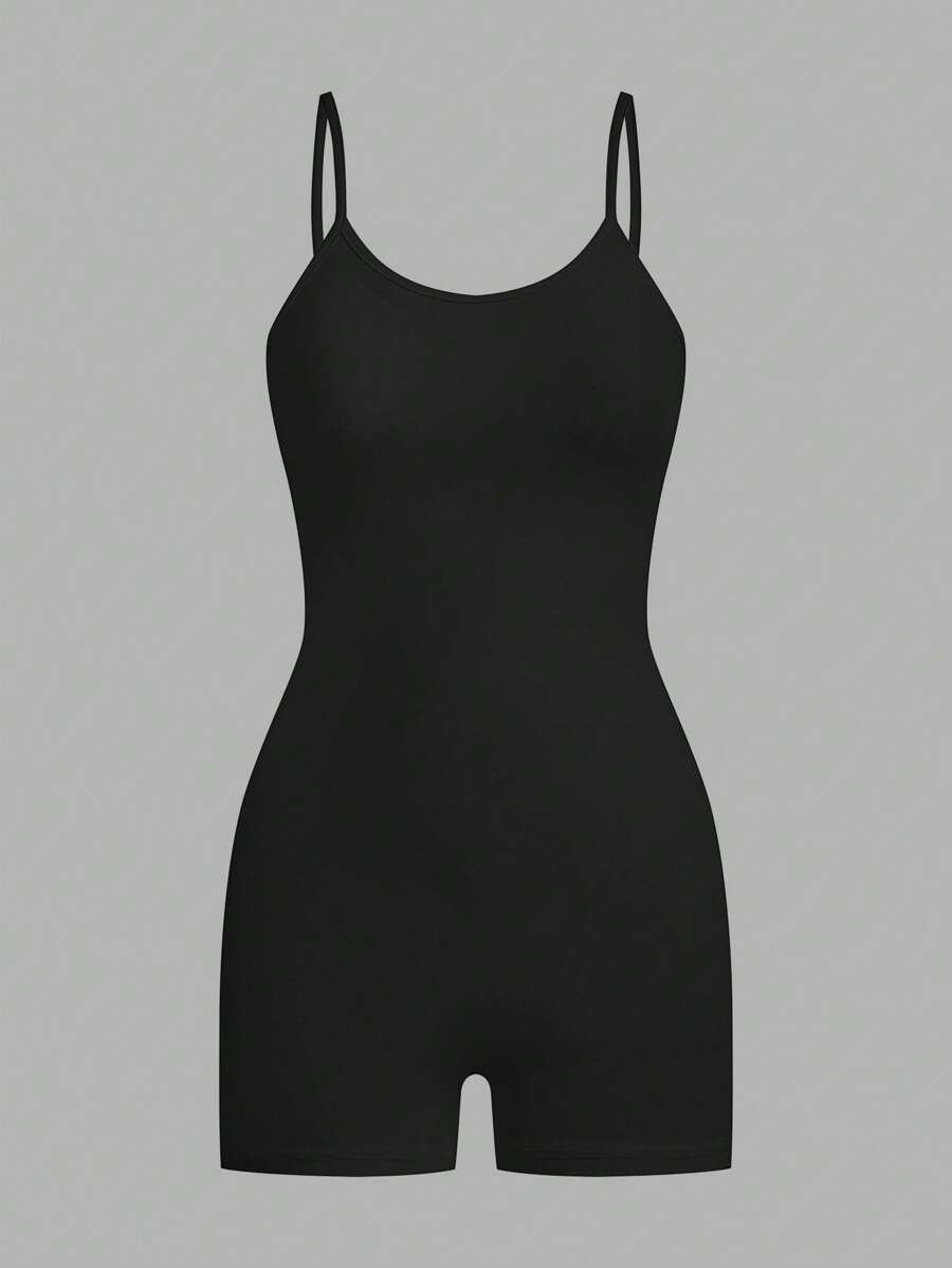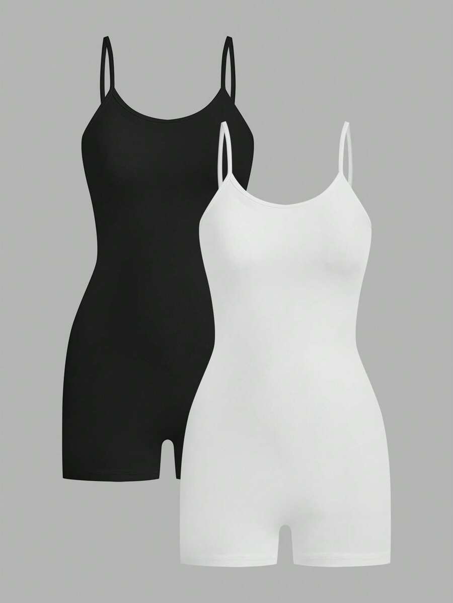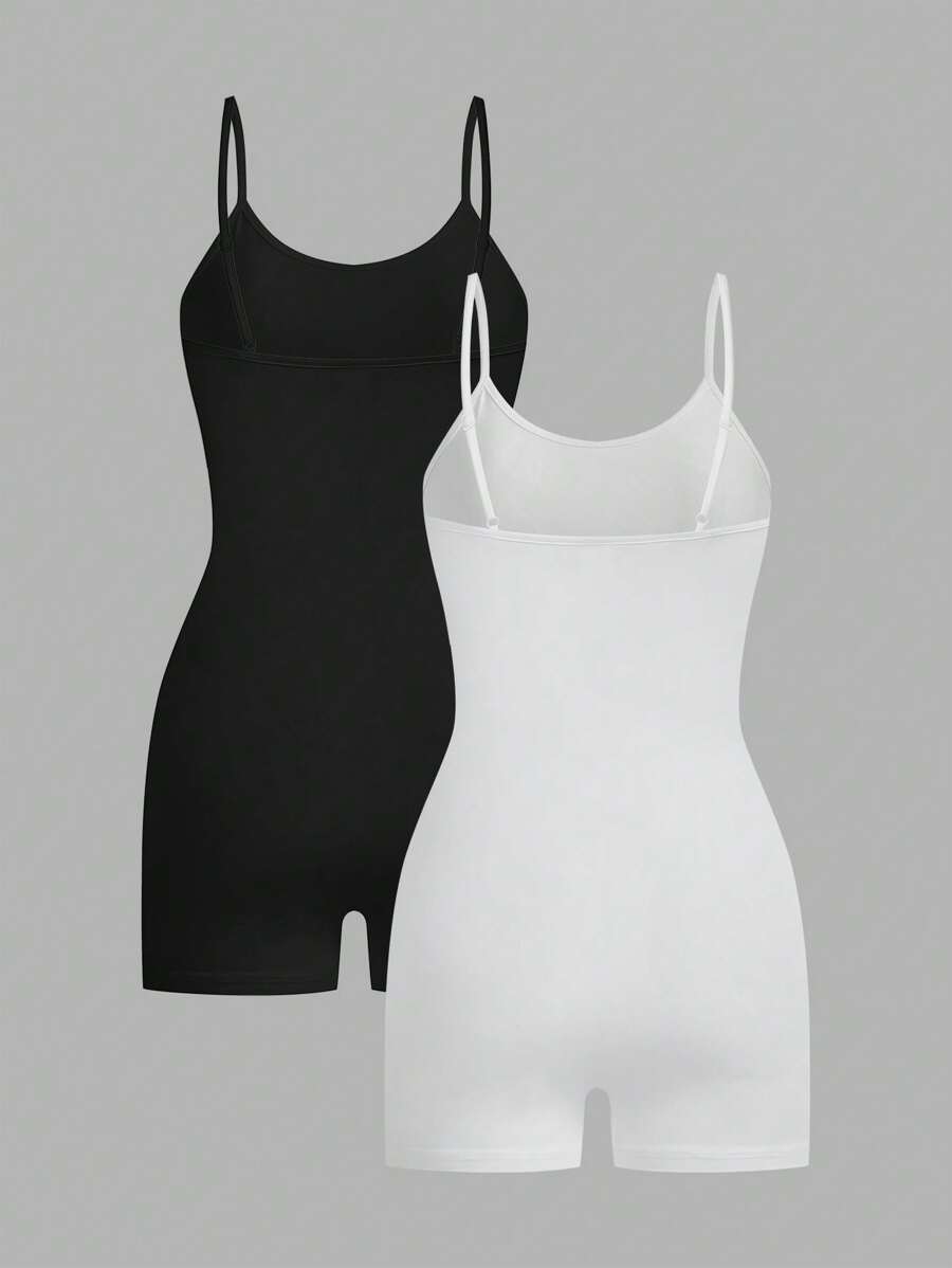 2 piezas enterizo informal de unicolor con tirantes finos para mujer
