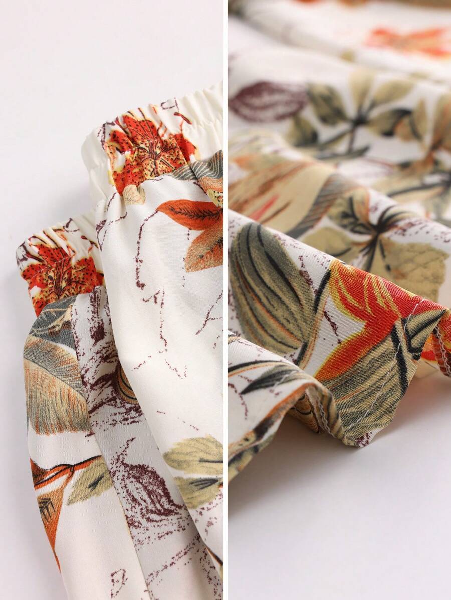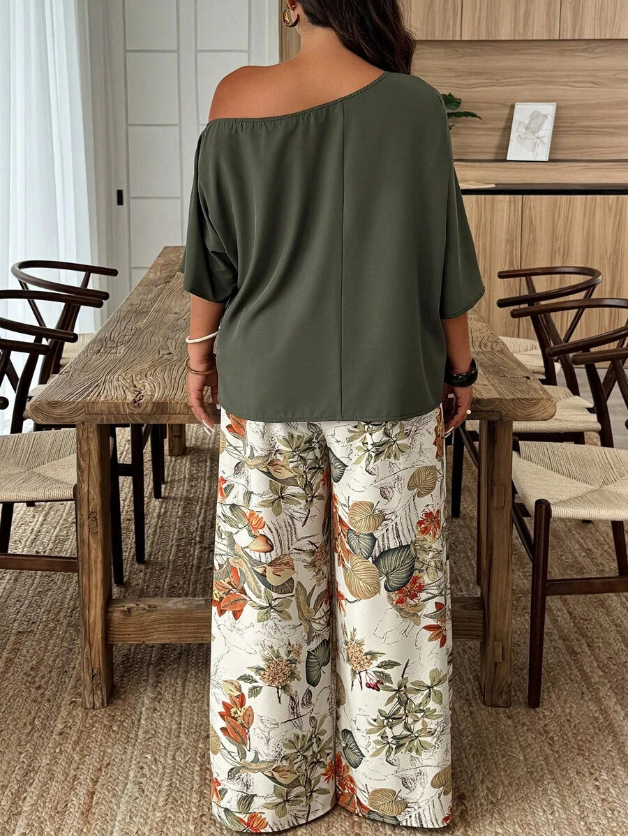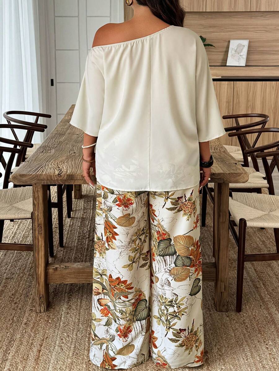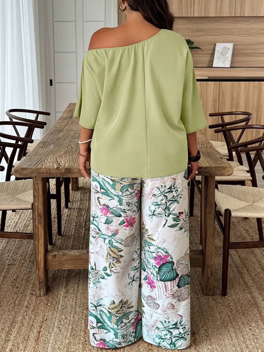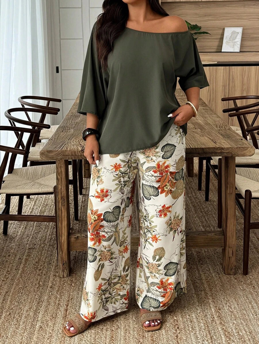 Weeklong conjunto informal de 2 piezas con estampado aleatorio, talla grande, para vacaciones