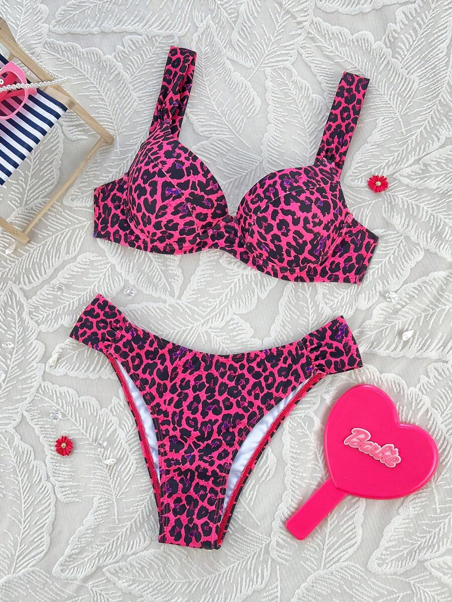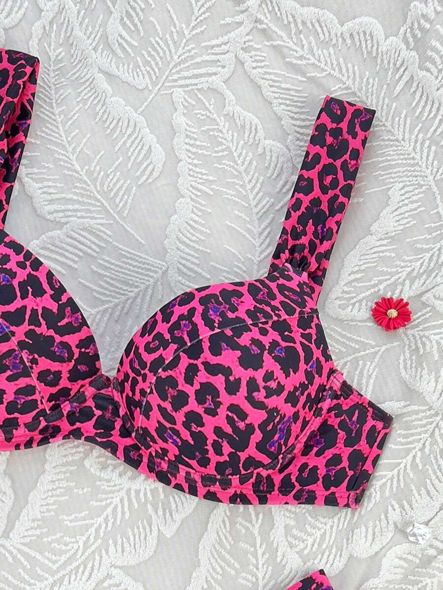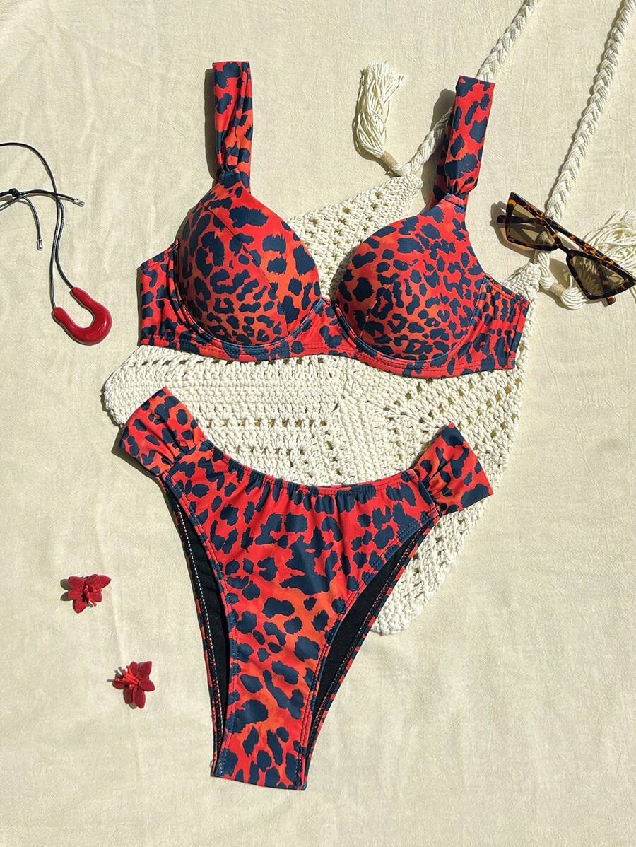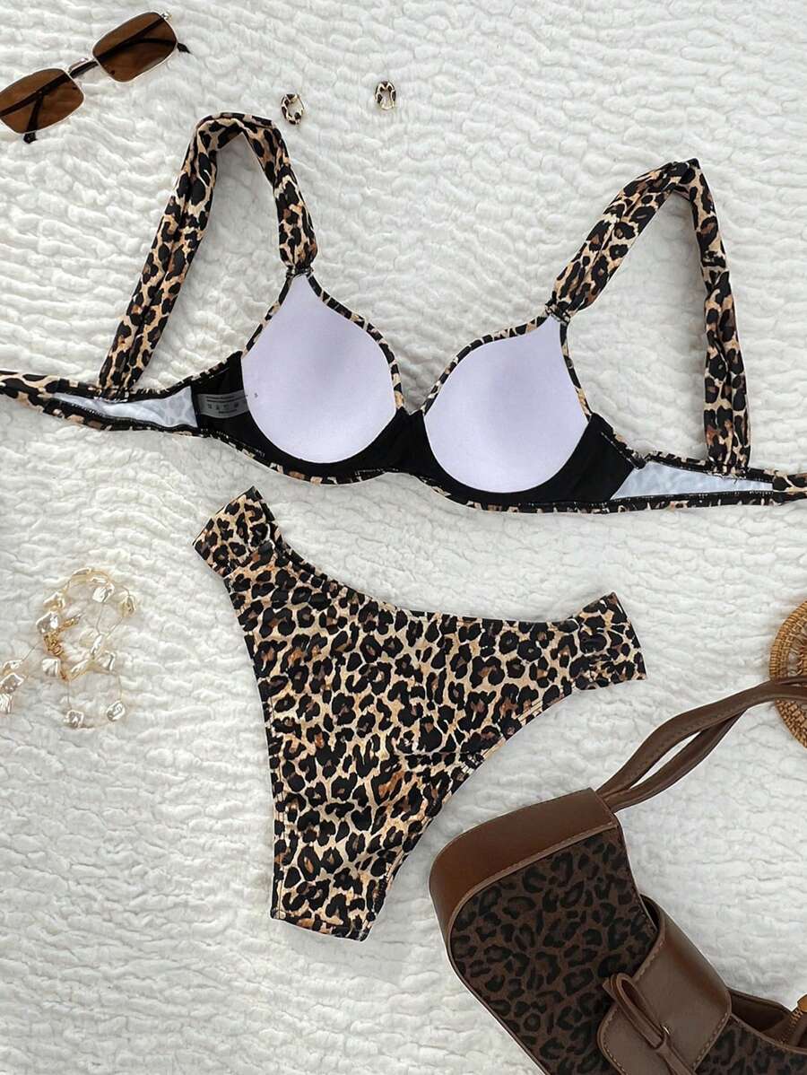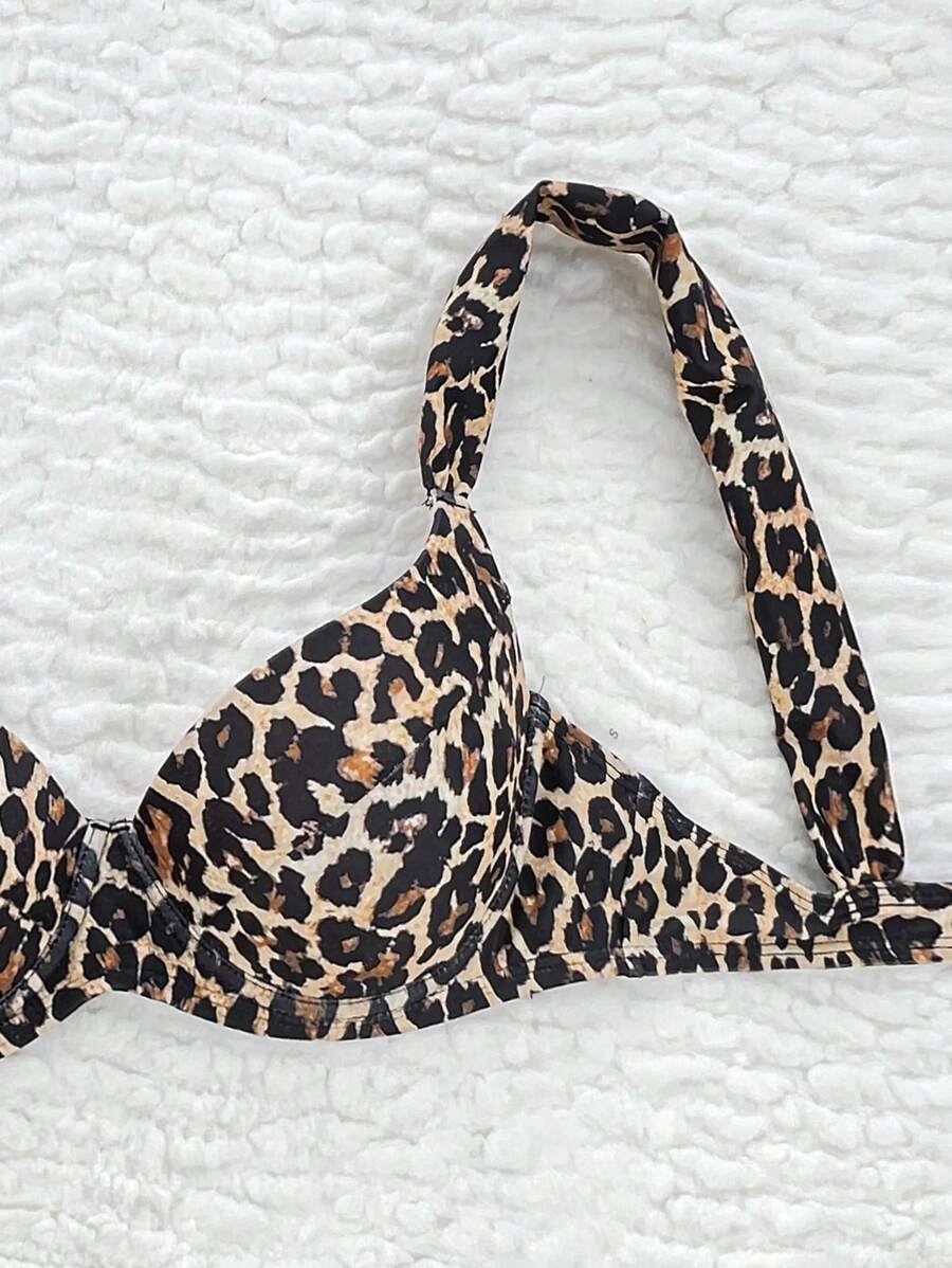 2 piezas conjunto de bikini con estampado de leopardo y push-up para mujer, conjunto de ropa de playa sexy para vacaciones de primavera