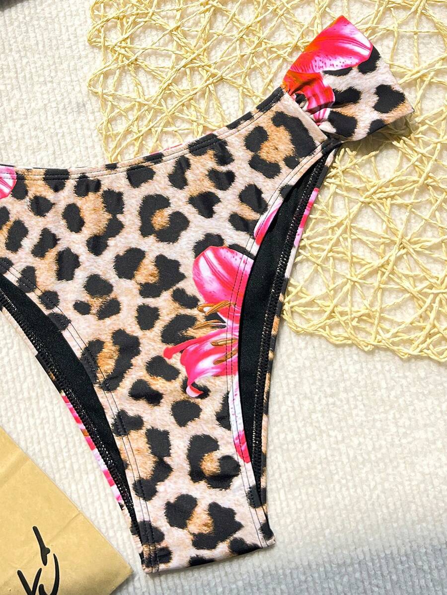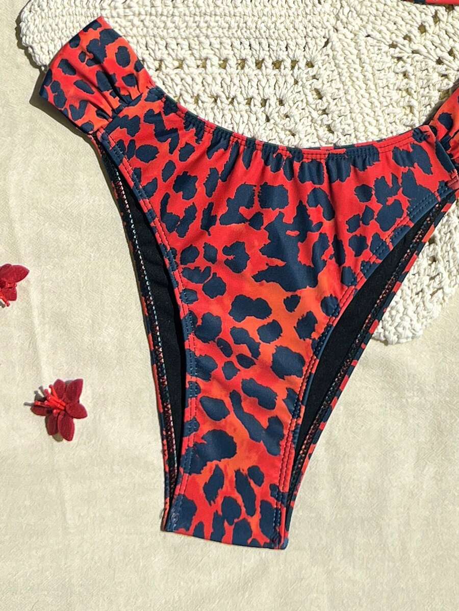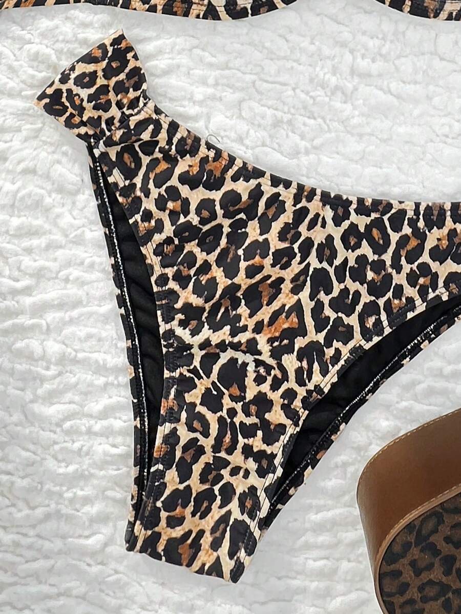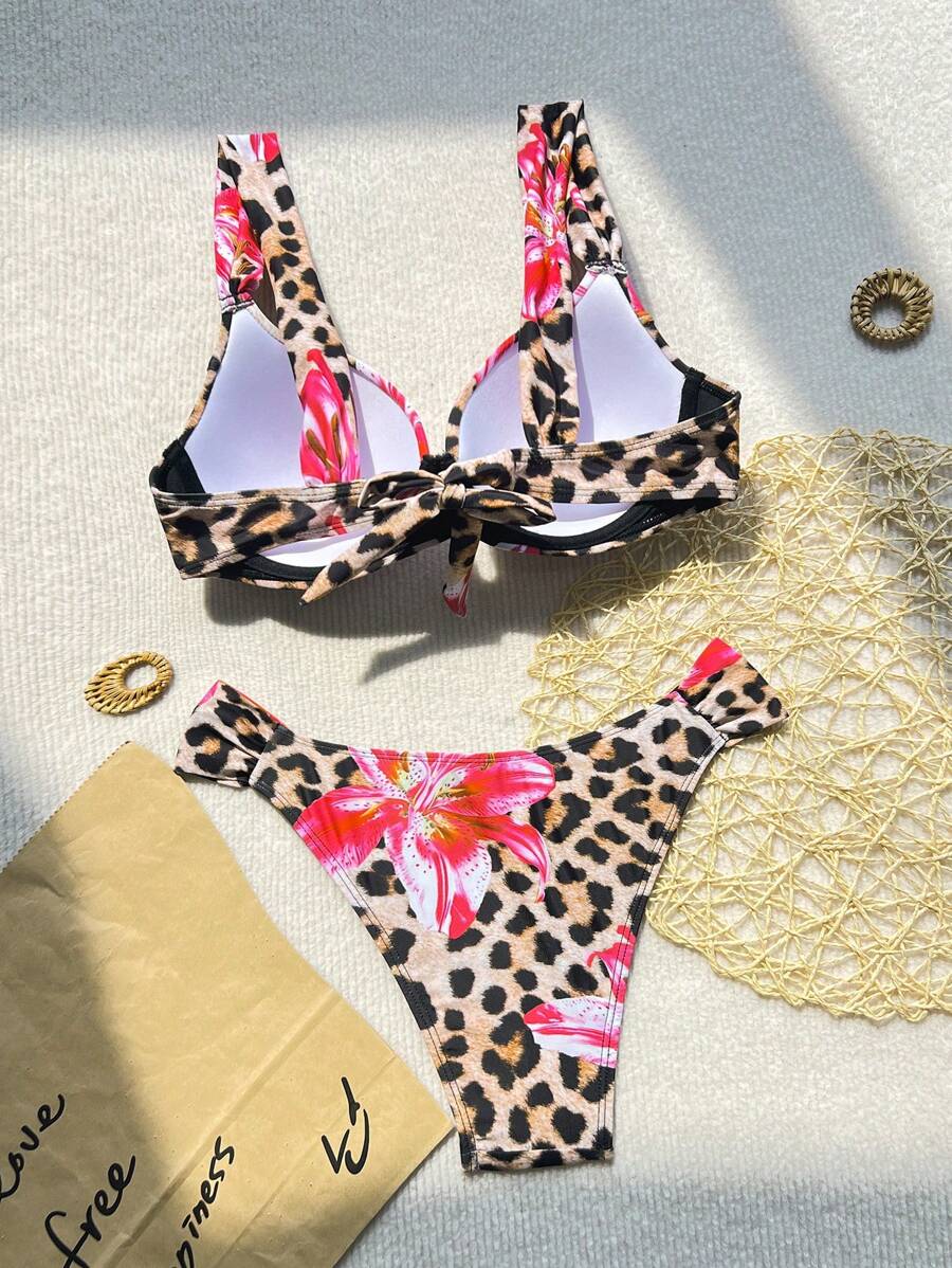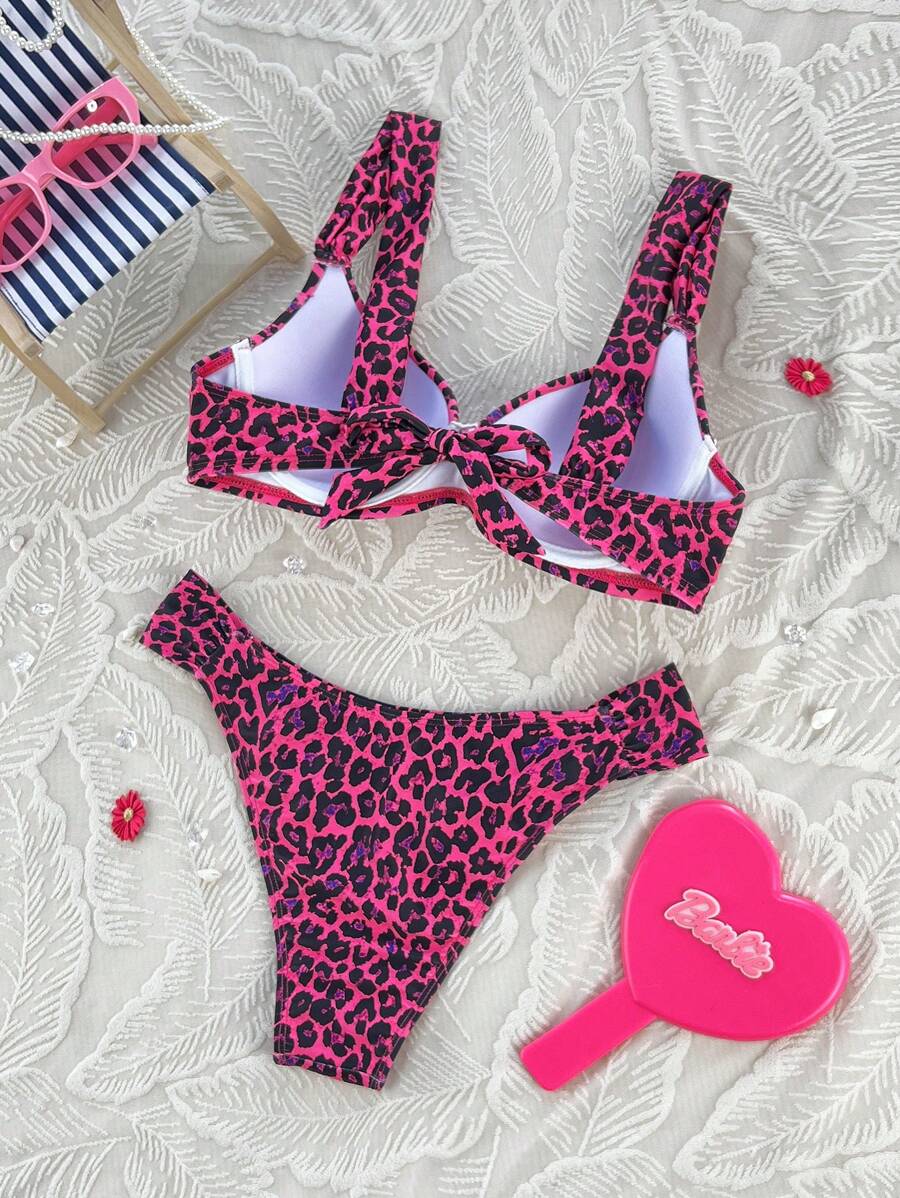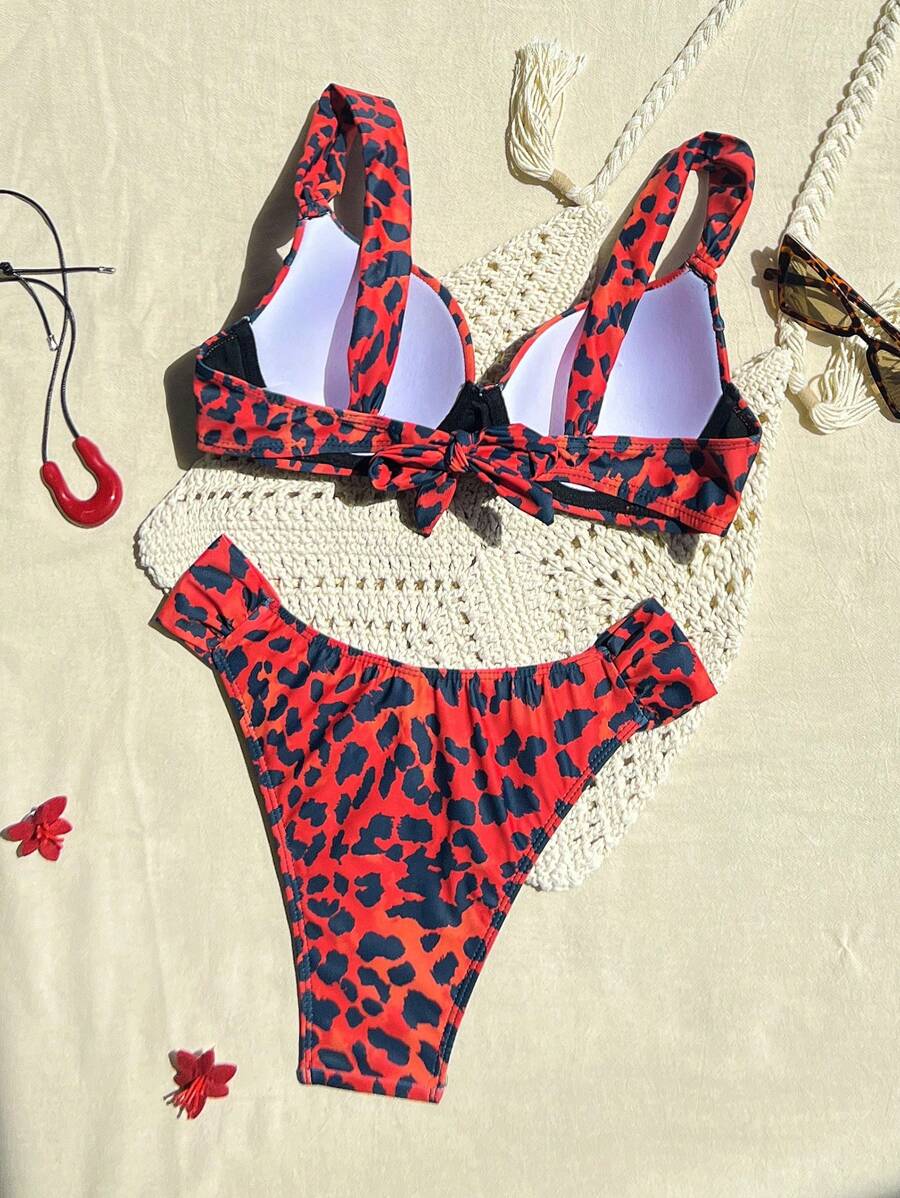 2 piezas conjunto de bikini con estampado de leopardo y push-up para mujer, conjunto de ropa de playa sexy para vacaciones de primavera