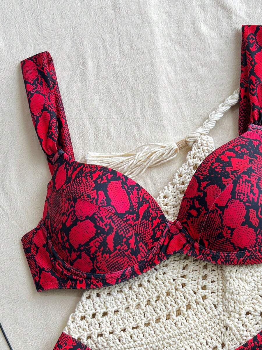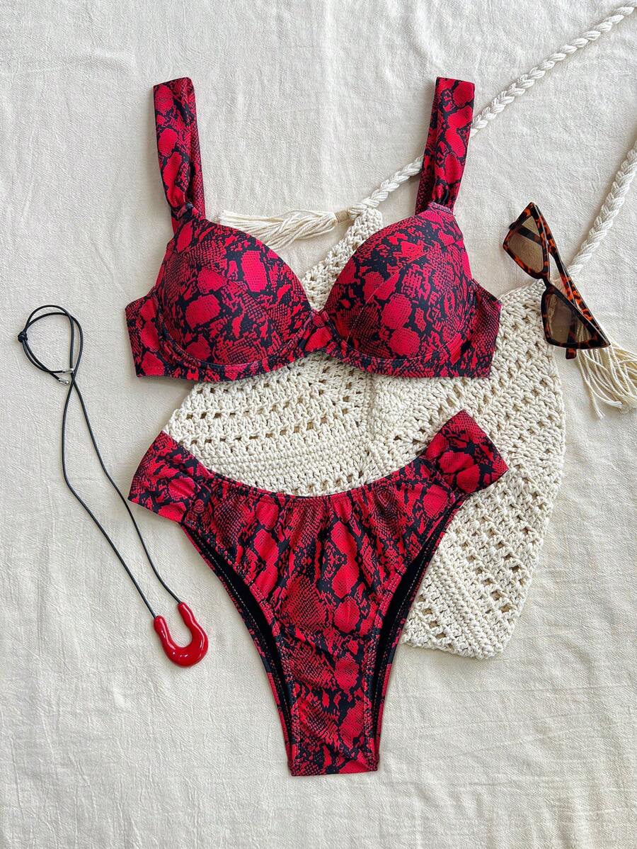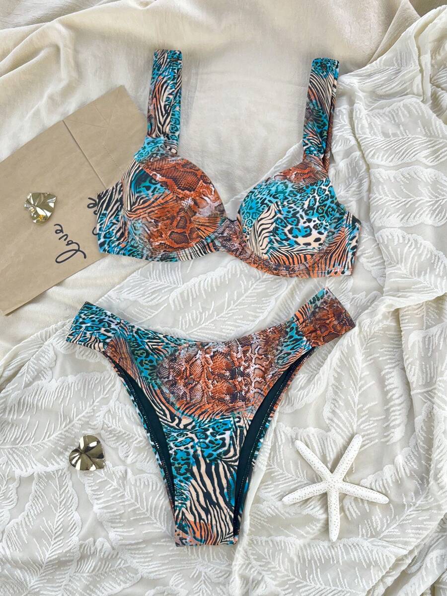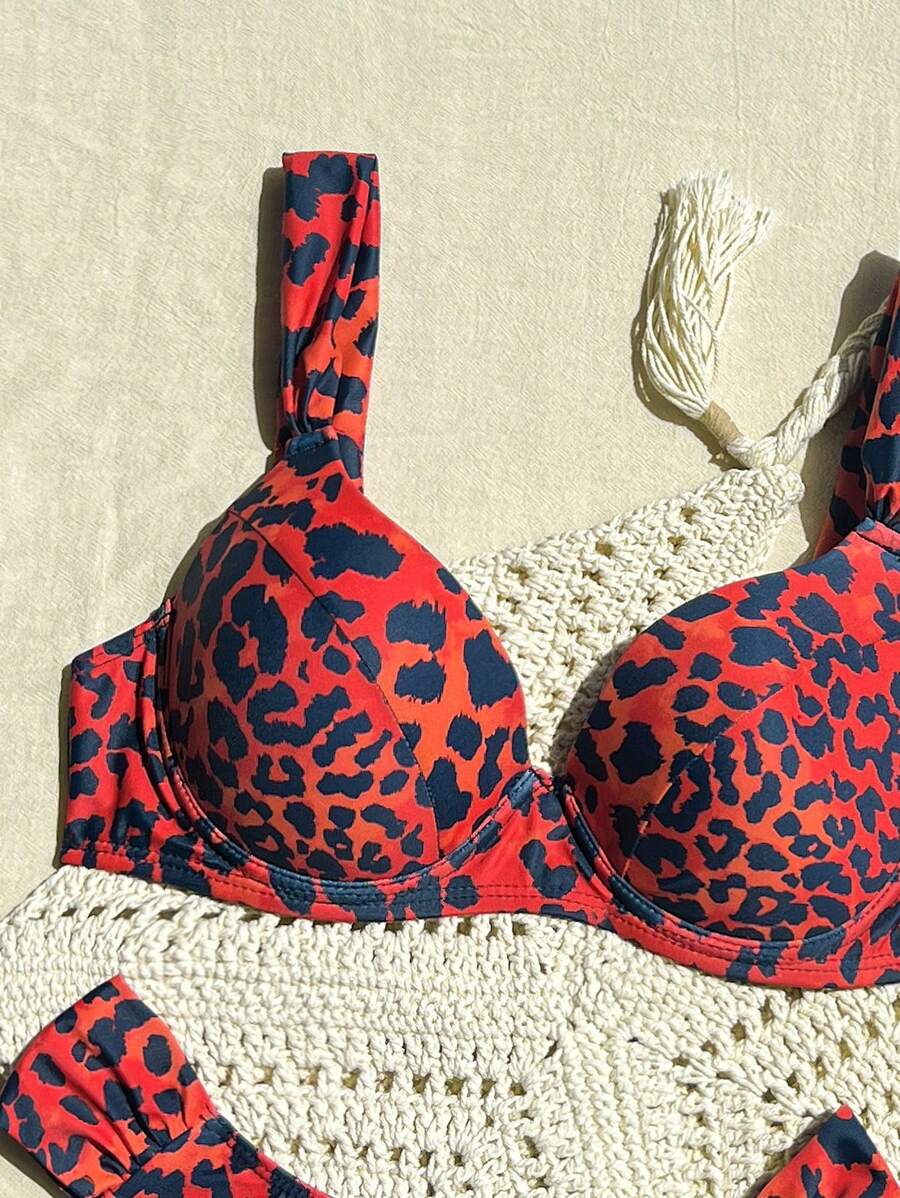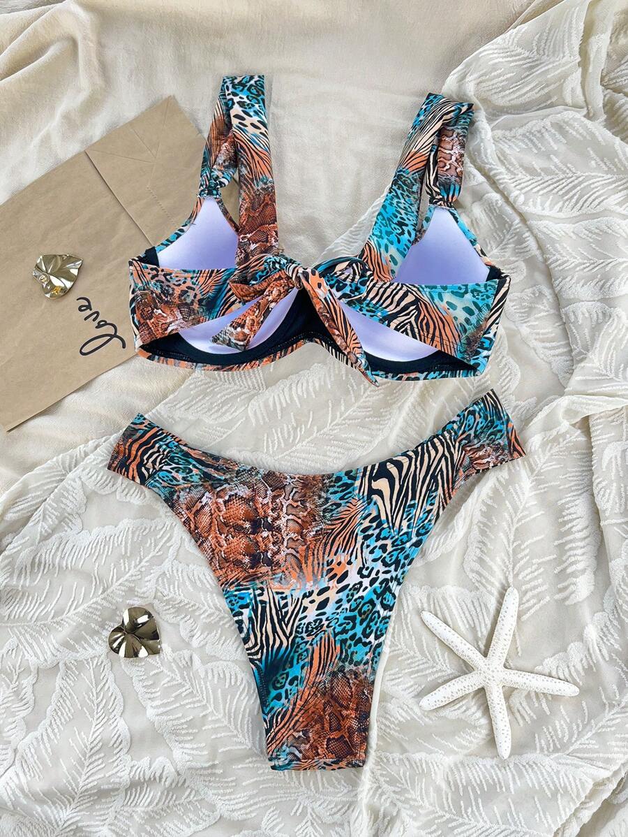 2 piezas conjunto de bikini con estampado de leopardo y push-up para mujer, conjunto de ropa de playa sexy para vacaciones de primavera