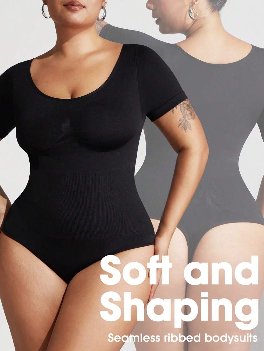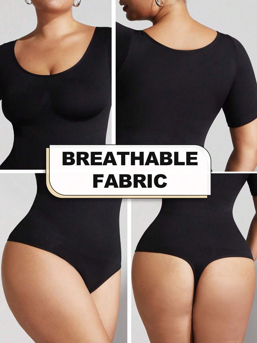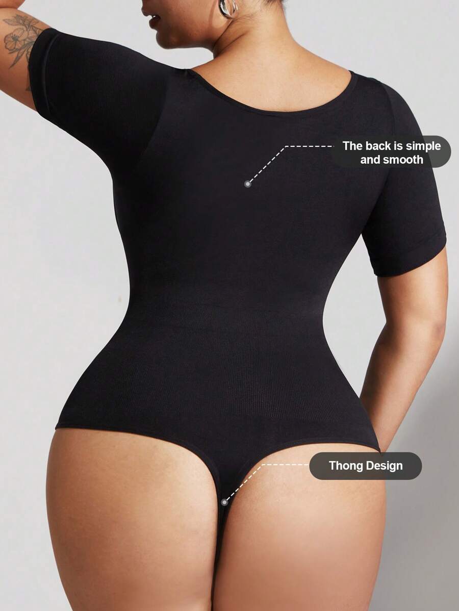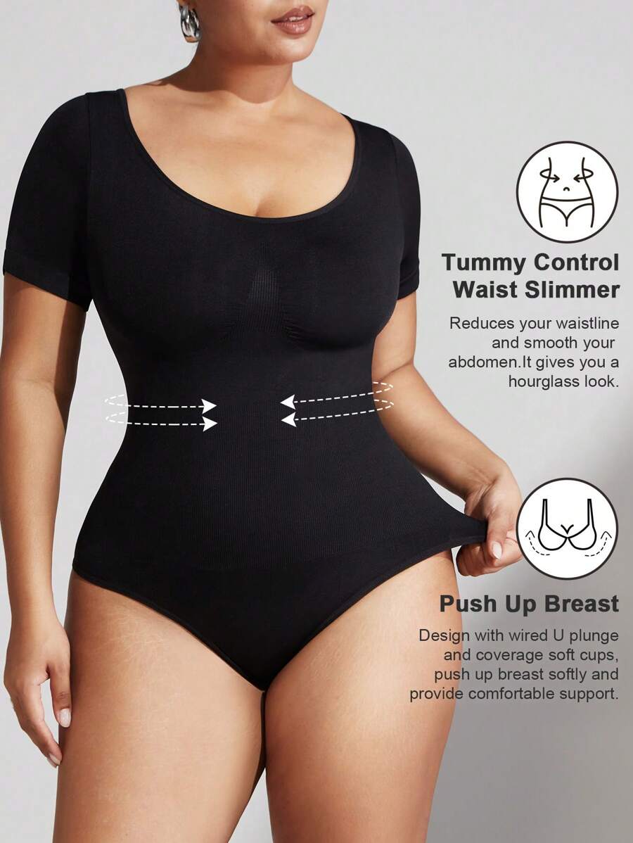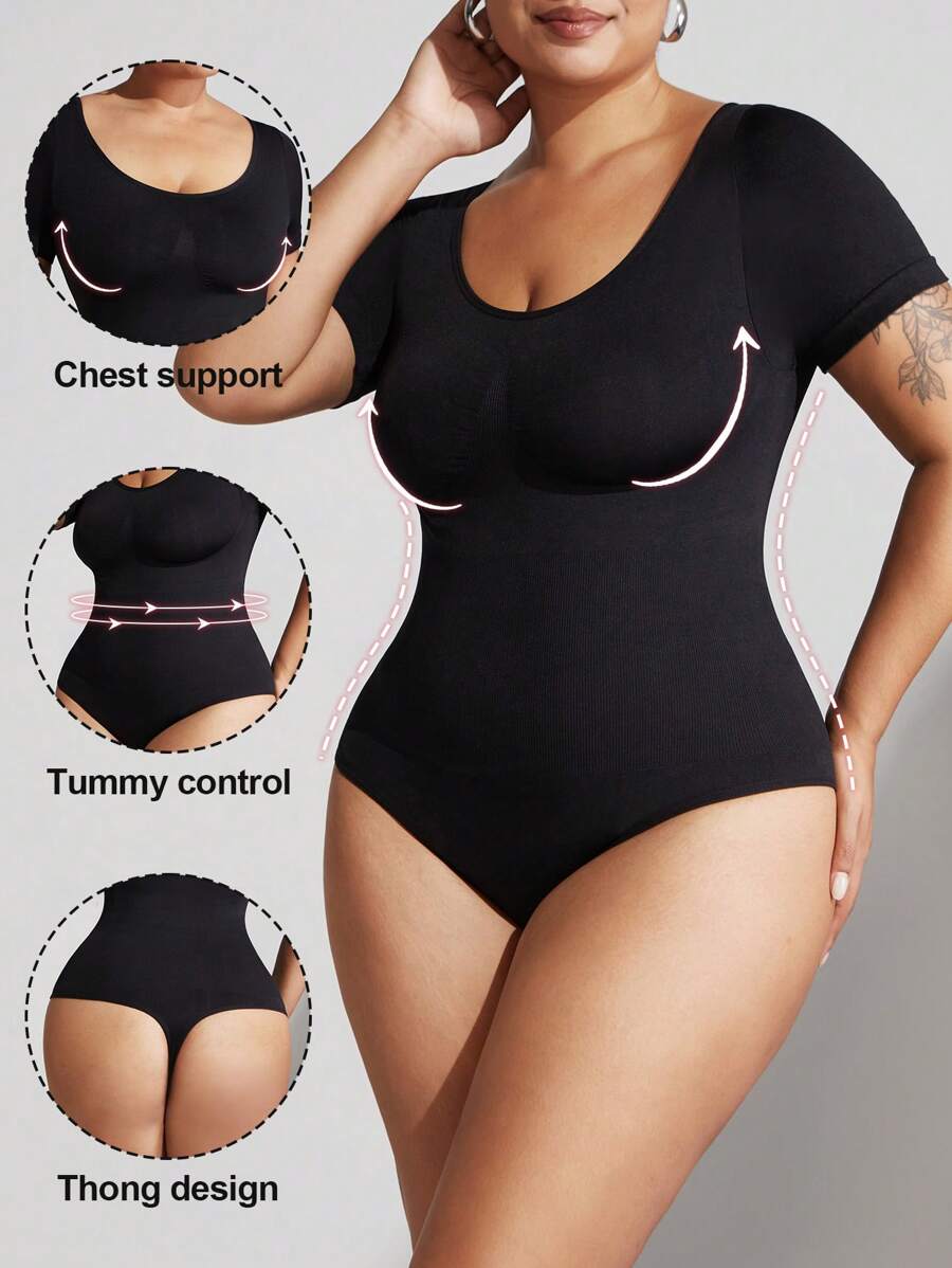 1 pieza shapewear de talla grande para mujer, moldeador de control de abdomen, cintura entrenadora, levantador de gluteos, body sin costuras, enterizo de verano de manga corta