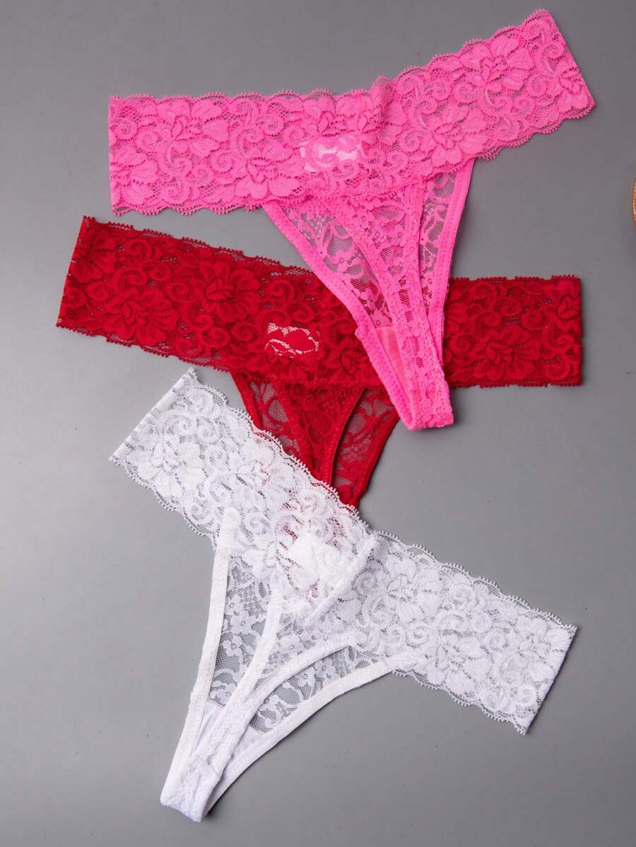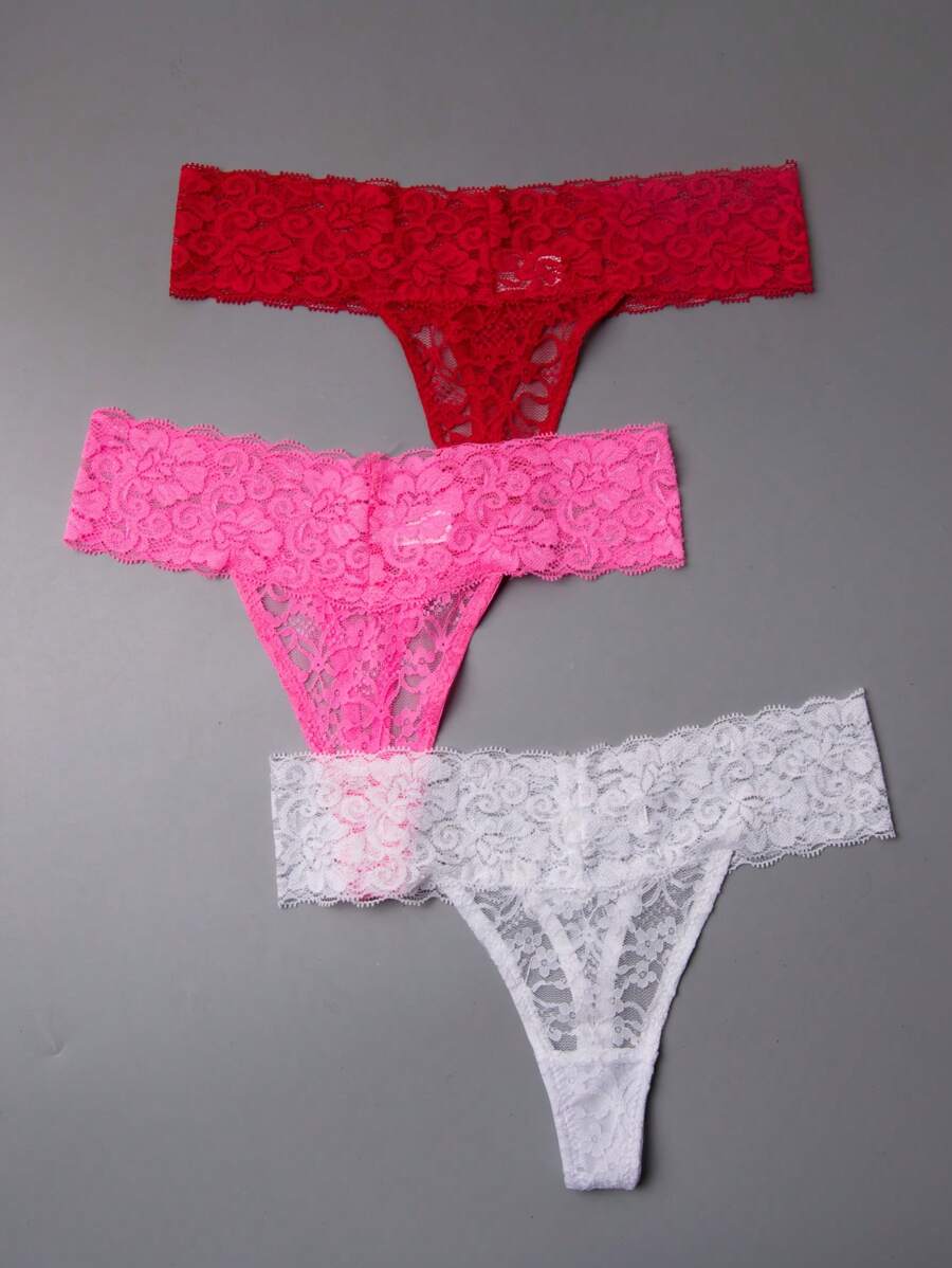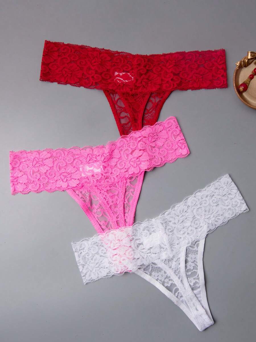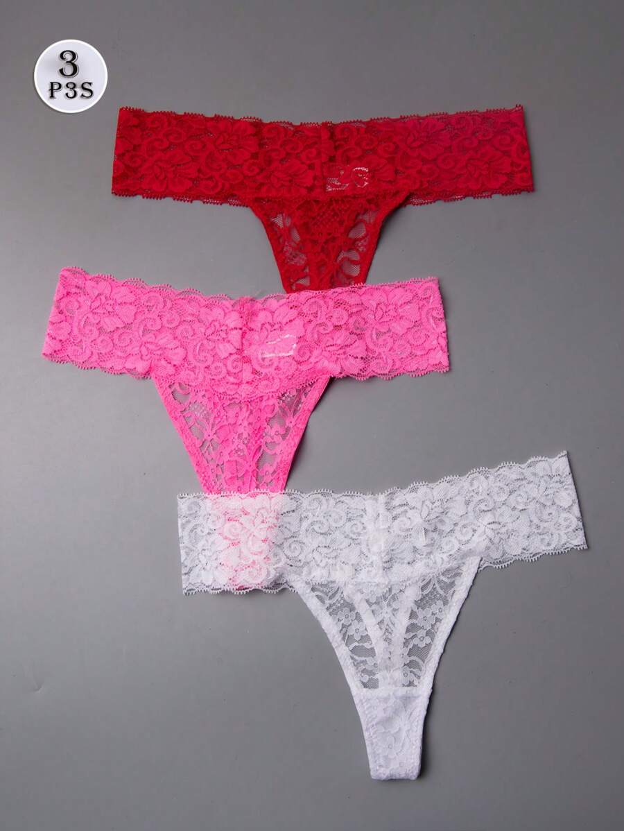 3 paquetes de tangas de encaje sexy para mujer, 90% poliamida 10% spandex, tanga con espalda en forma de t delgada, tejido de punto, unicolor, cintura baja, lenceria de 165g/m2 de peso ligero