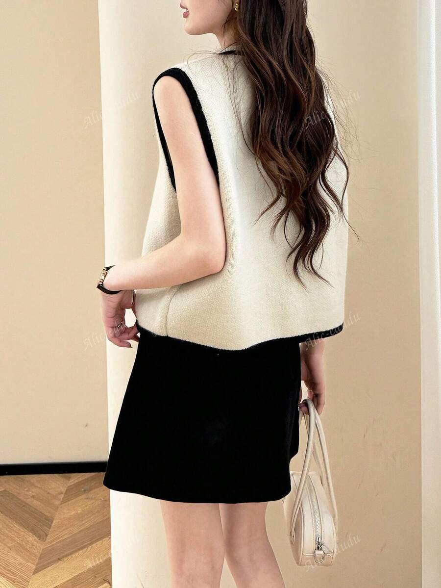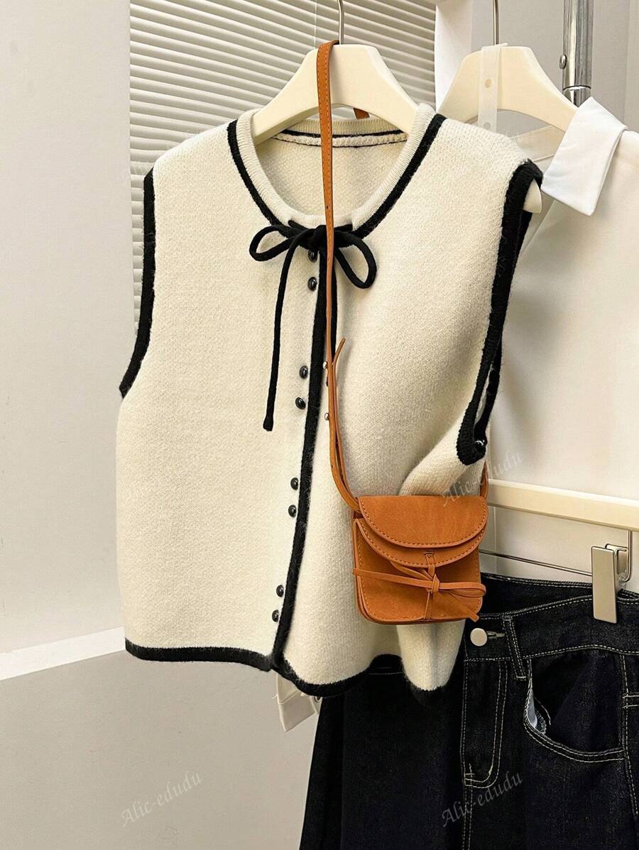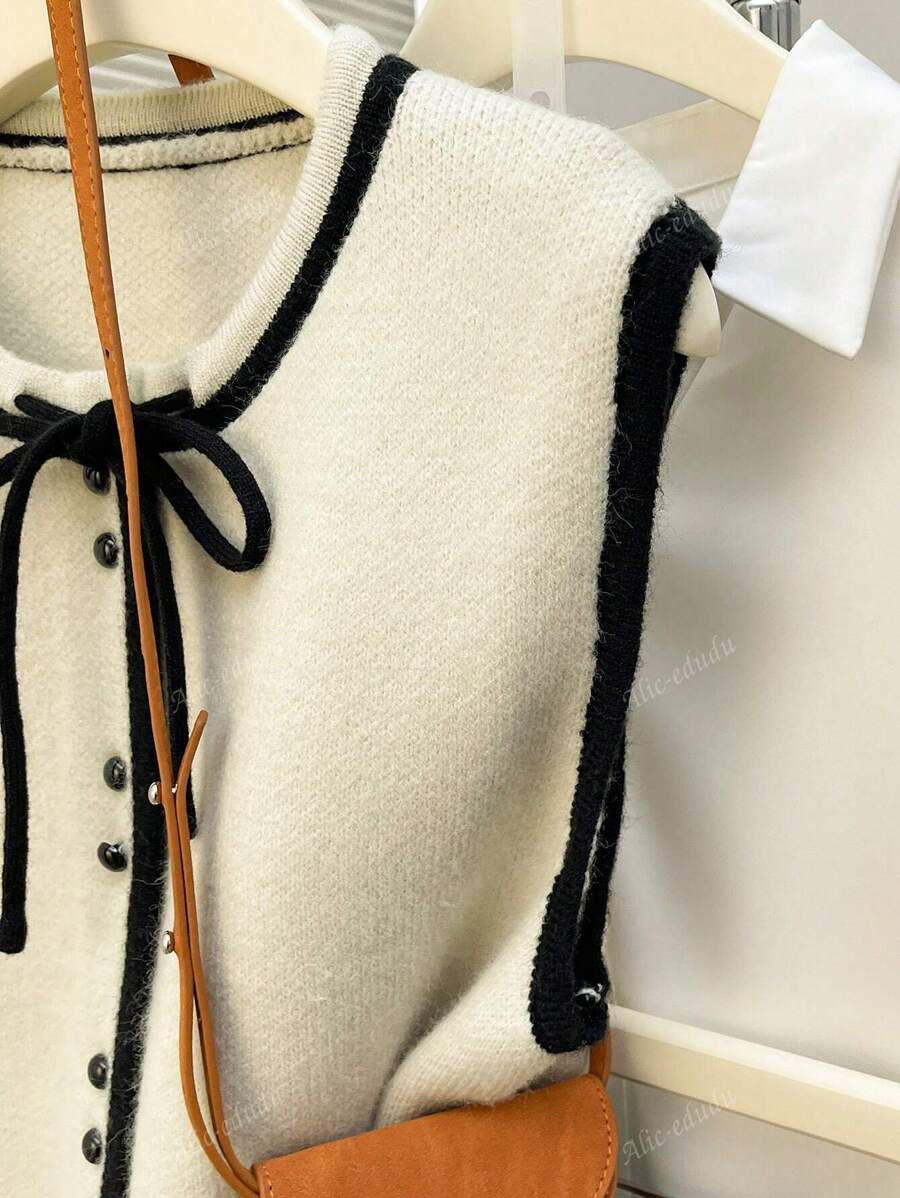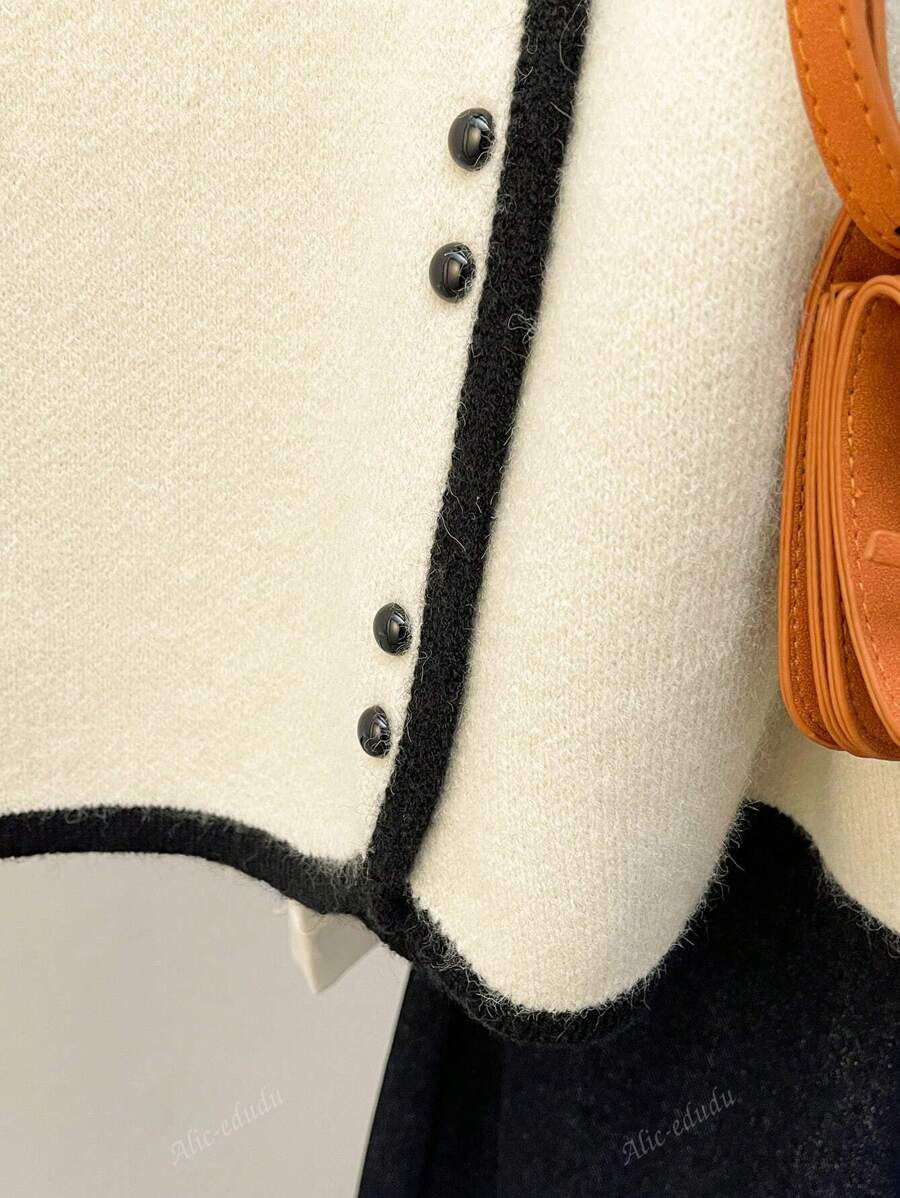 Alicedudu chaleco tipo cardigan con ribete de contraste para mujer, para otono/invierno