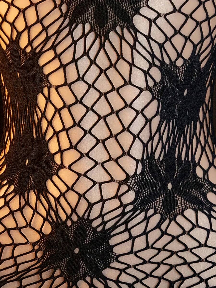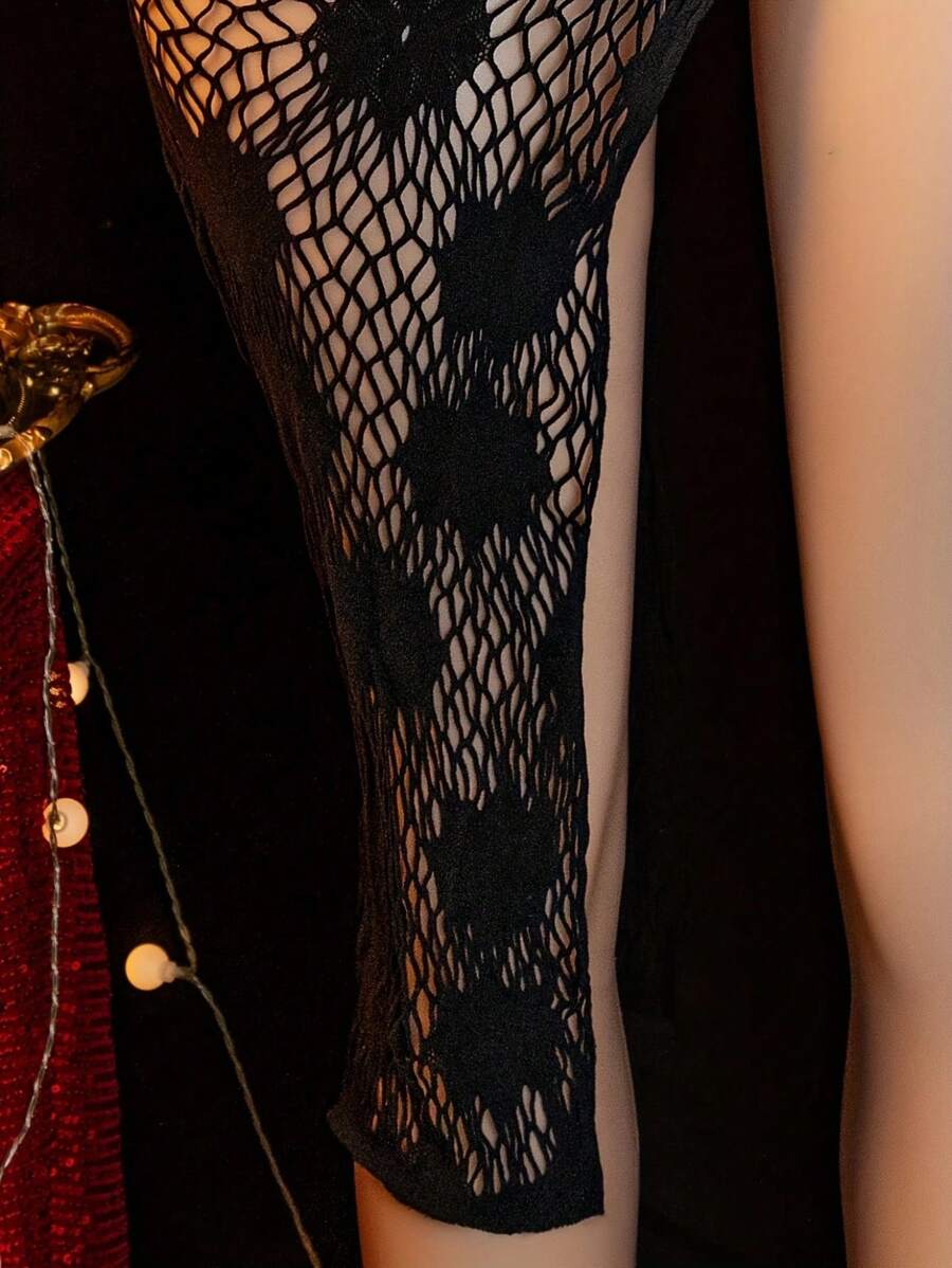Vestido de lenceria elegante negro con flores de nailon transparente y elastano, lenceria de malla con abertura hasta el muslo, lavable a mano, ropa interior para mujer, rave