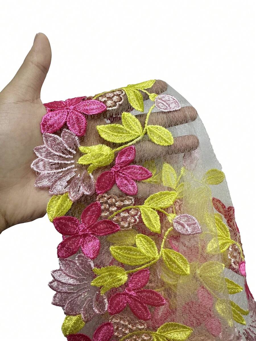 Camisola de red con estampado de degradado arcoiris, silueta de espina de pescado, bordado y patchwork