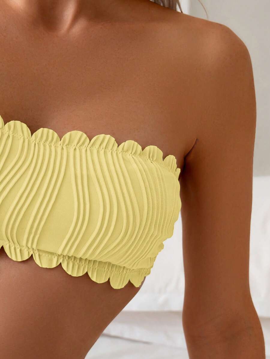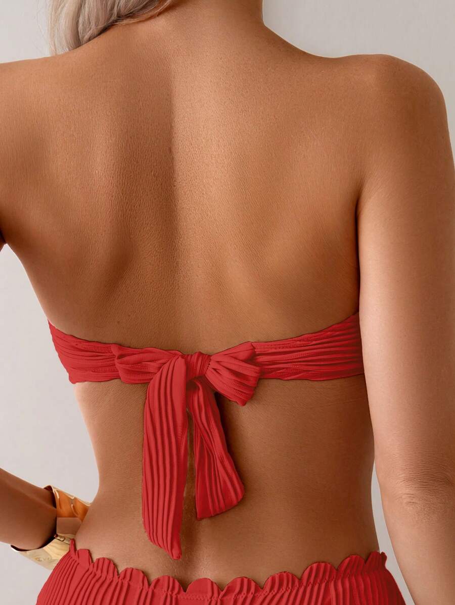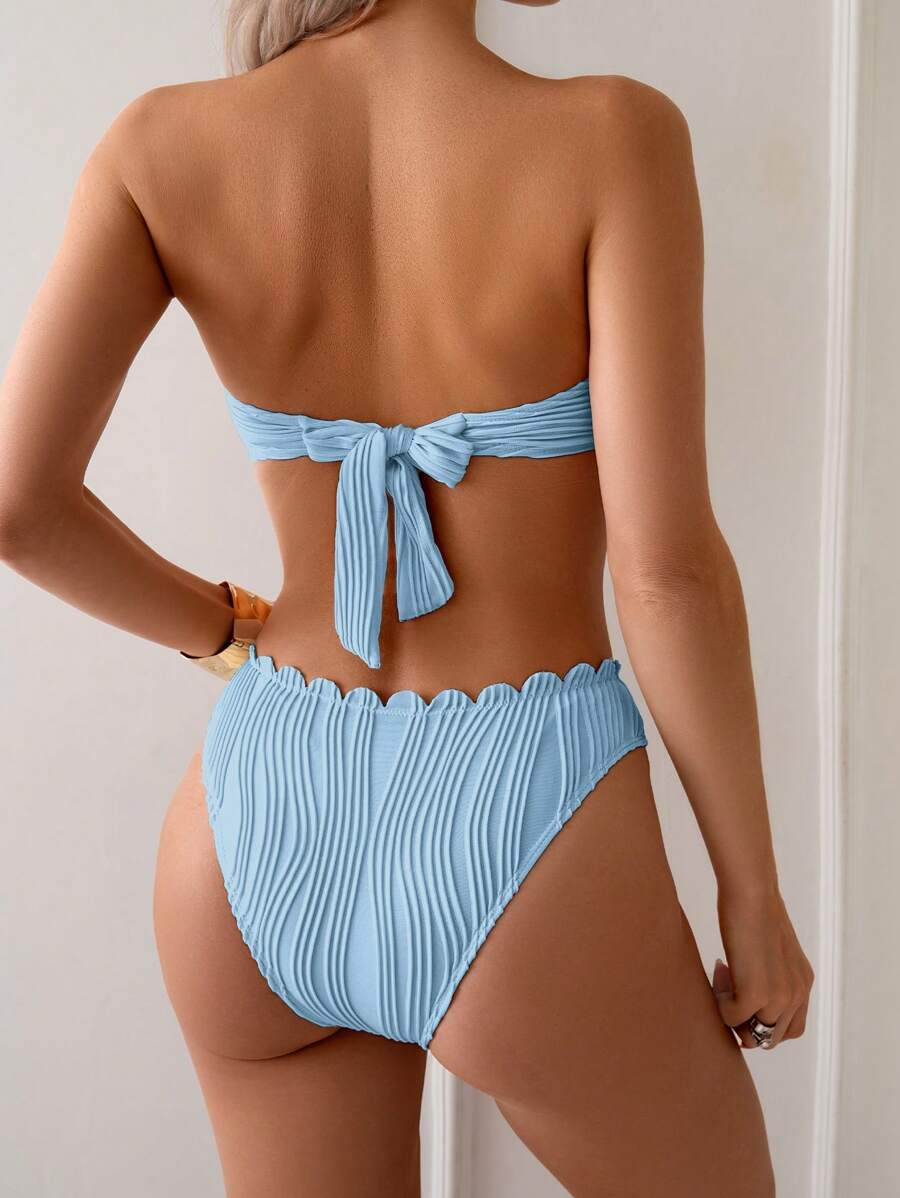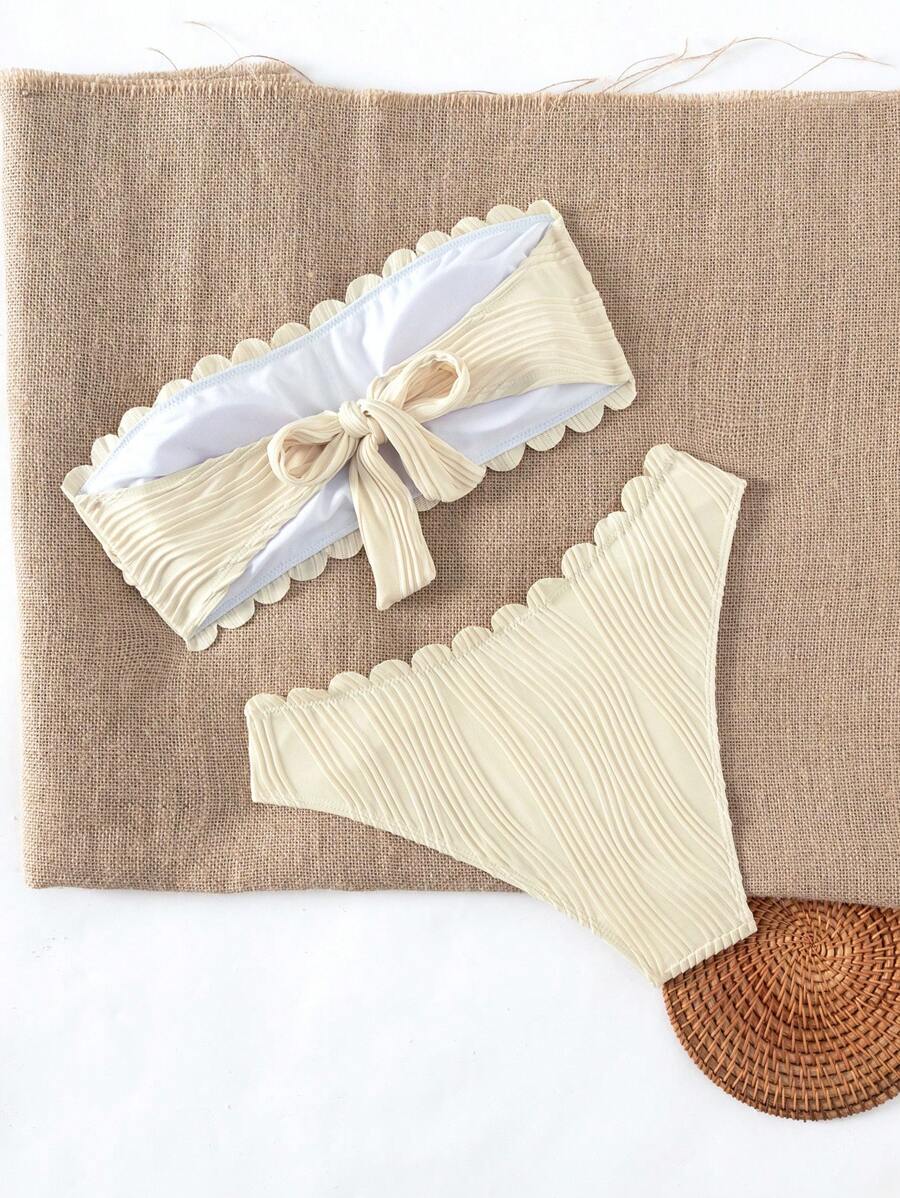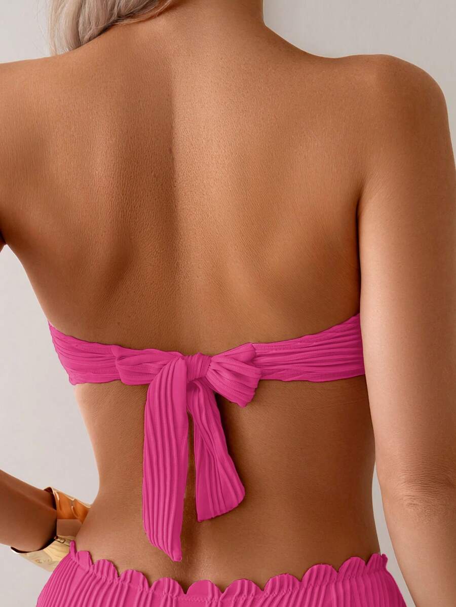 2 piezas conjunto de bikini de unicolor estilo primavera, traje de bano sin espalda con adorno de concha marina para mujer
