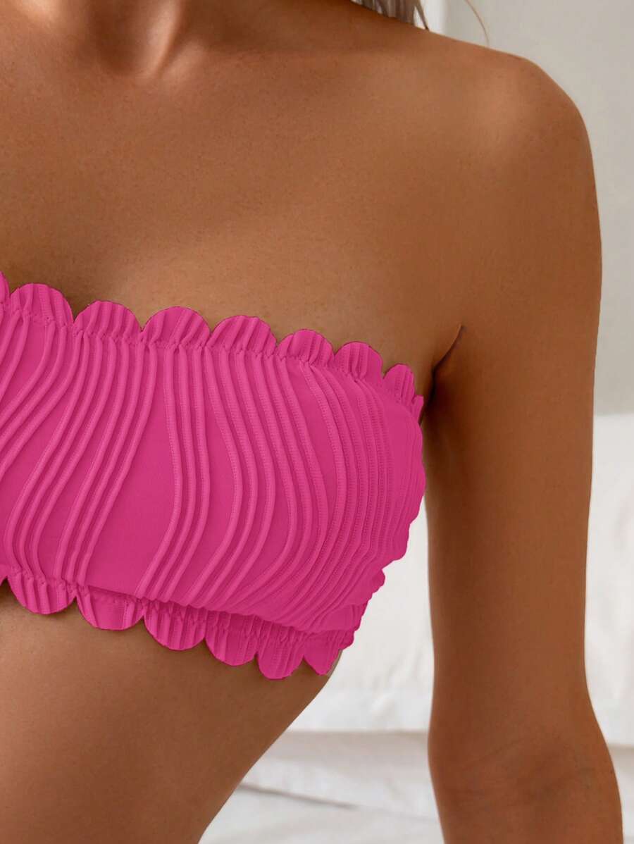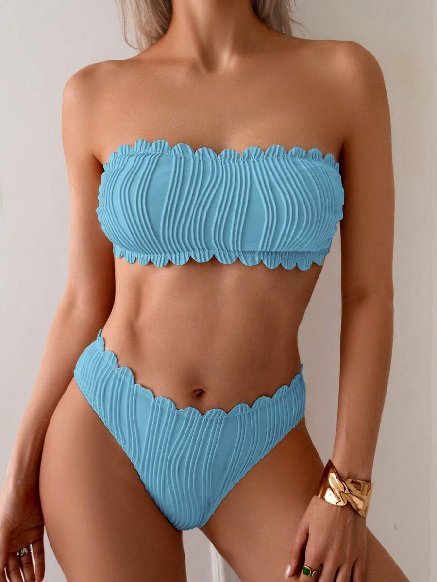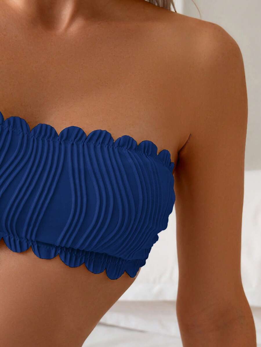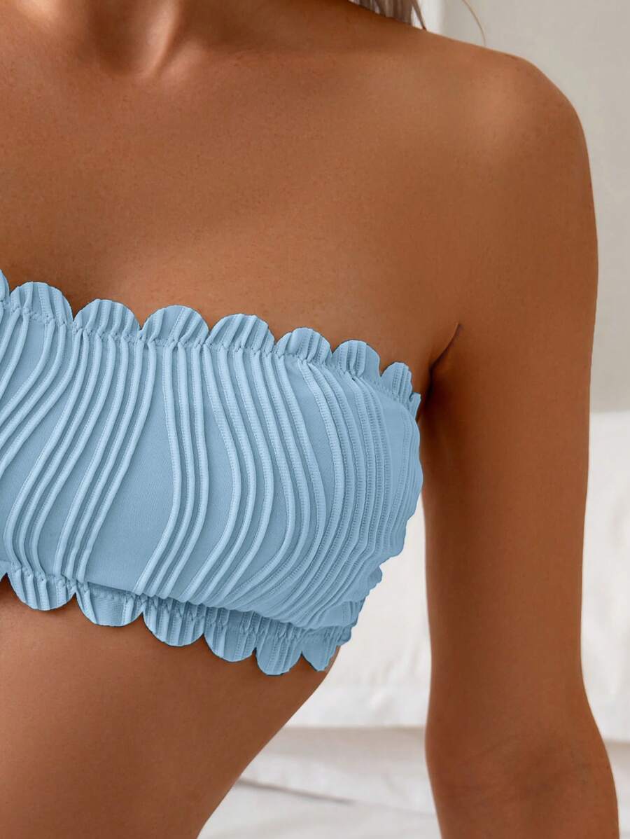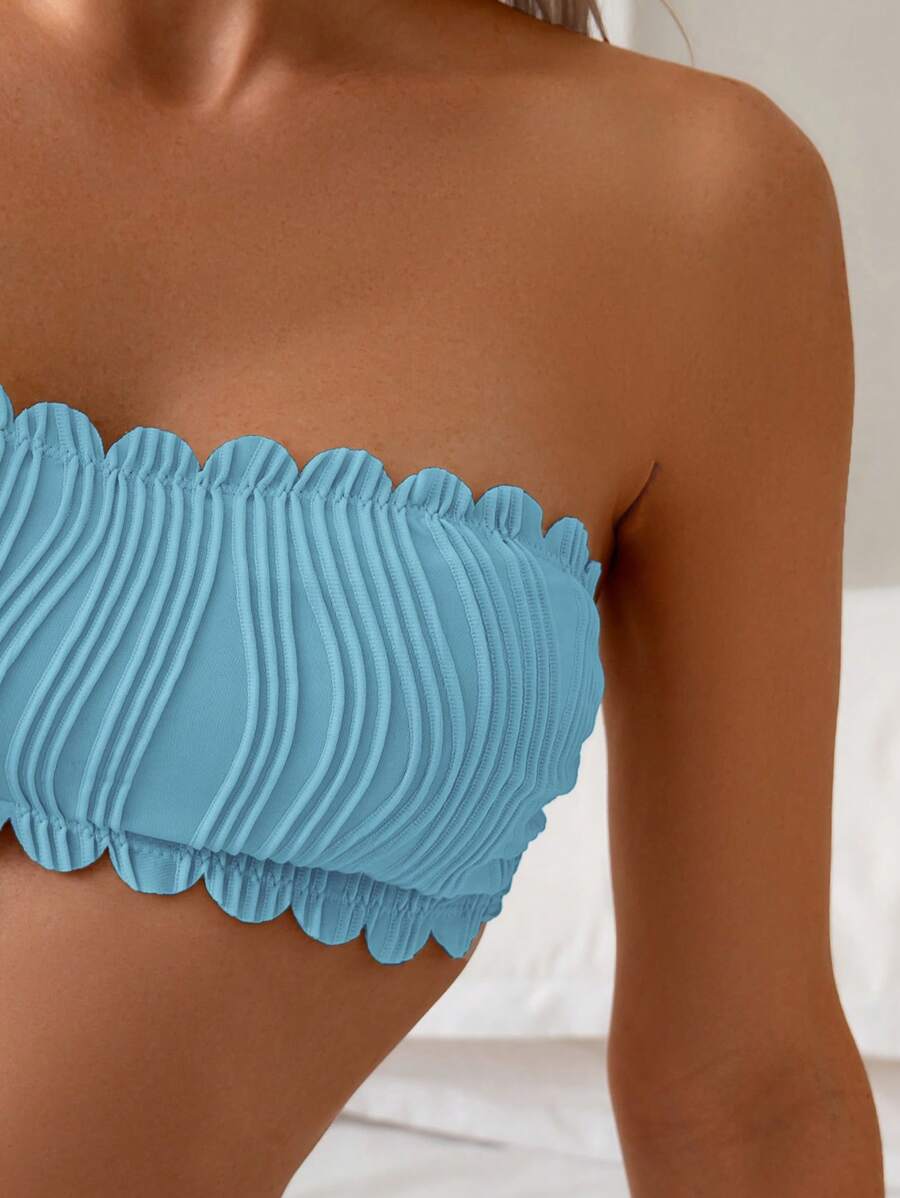 2 piezas conjunto de bikini de unicolor estilo primavera, traje de bano sin espalda con adorno de concha marina para mujer