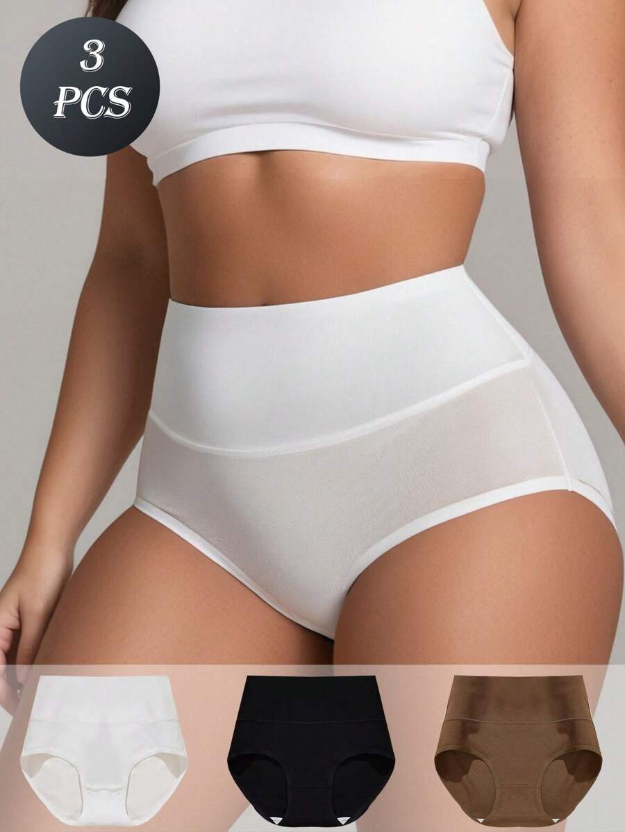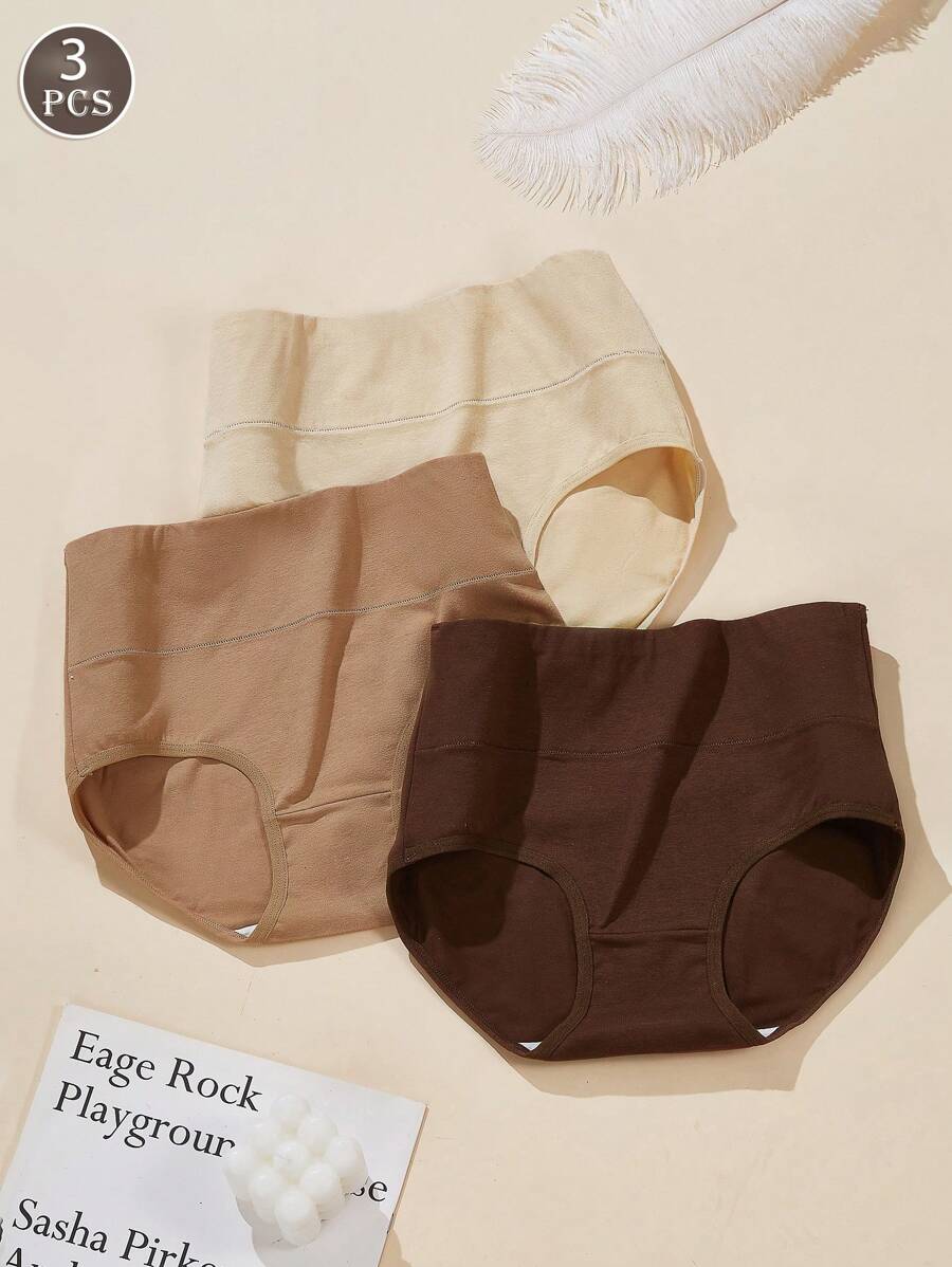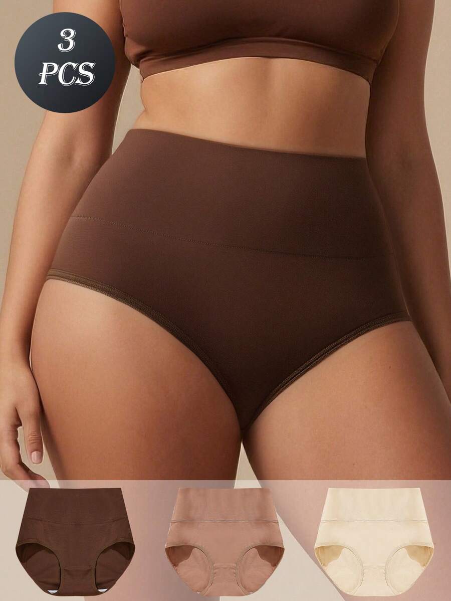 3 piezas bragas de control de cintura alta maillard para mujeres, calzones de algodon comodos con control de abdomen y elevacion de gluteos