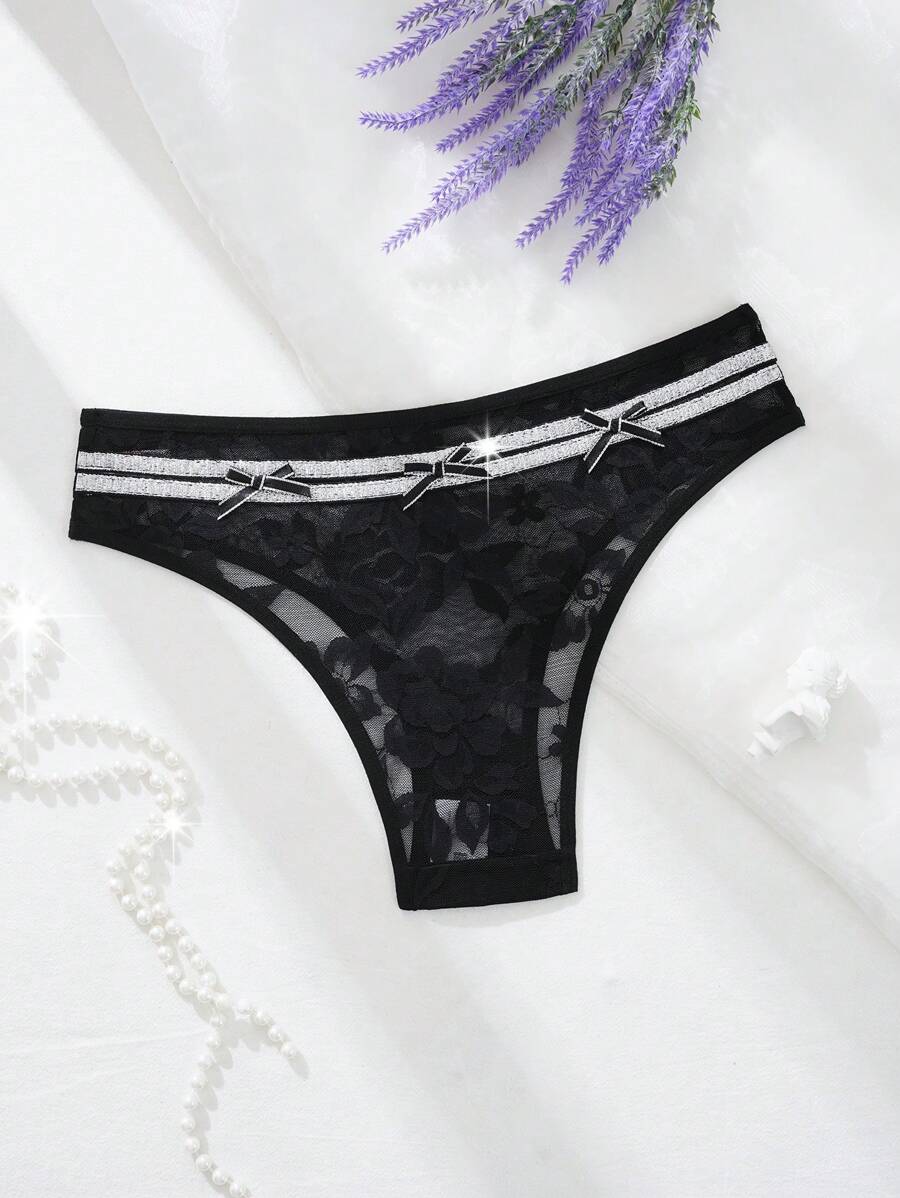 Ropa interior de mujer comoda y sexy con encaje floral, recorte calado y lazo plateado