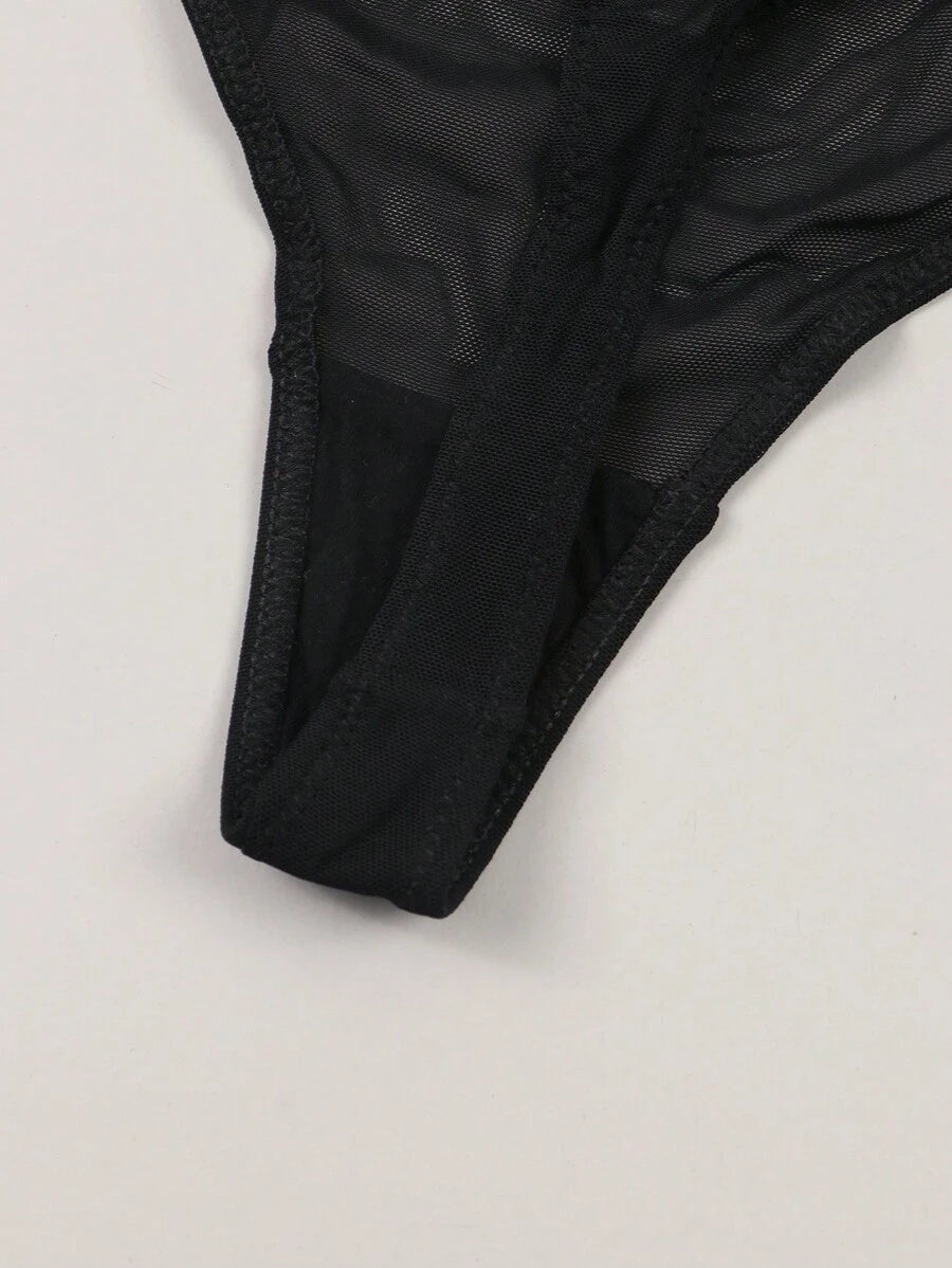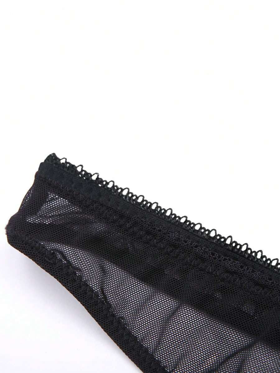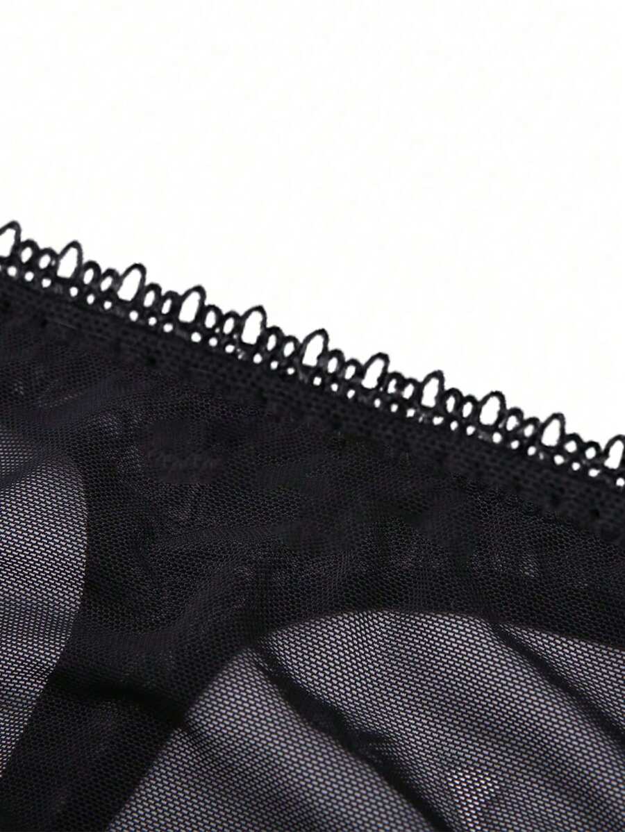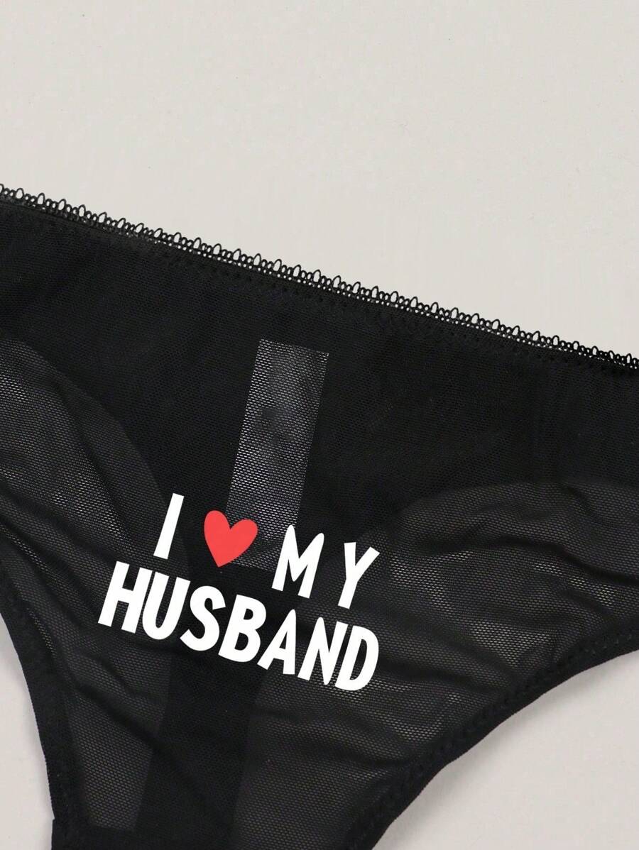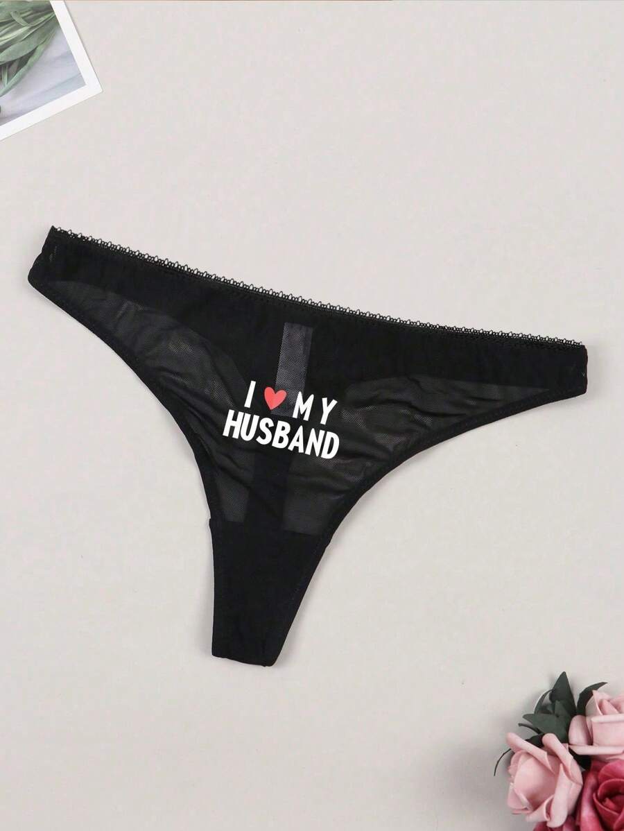 Mujeres tanga sexy y comodo semitransparente con impresion de corazon y eslogan, adecuado para citas diarias.