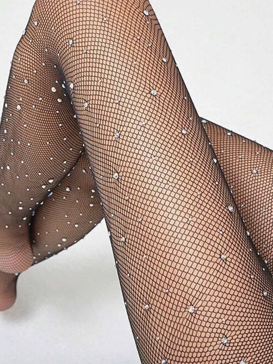 Medias de mujer de moda con cristales de piedras rhinestone y estilo de red, medias ajustadas y elasticas sexy para uso diario, ocio en casa, al aire libre, uso cotidiano, fiestas y ocasiones sexy, medias y polainas