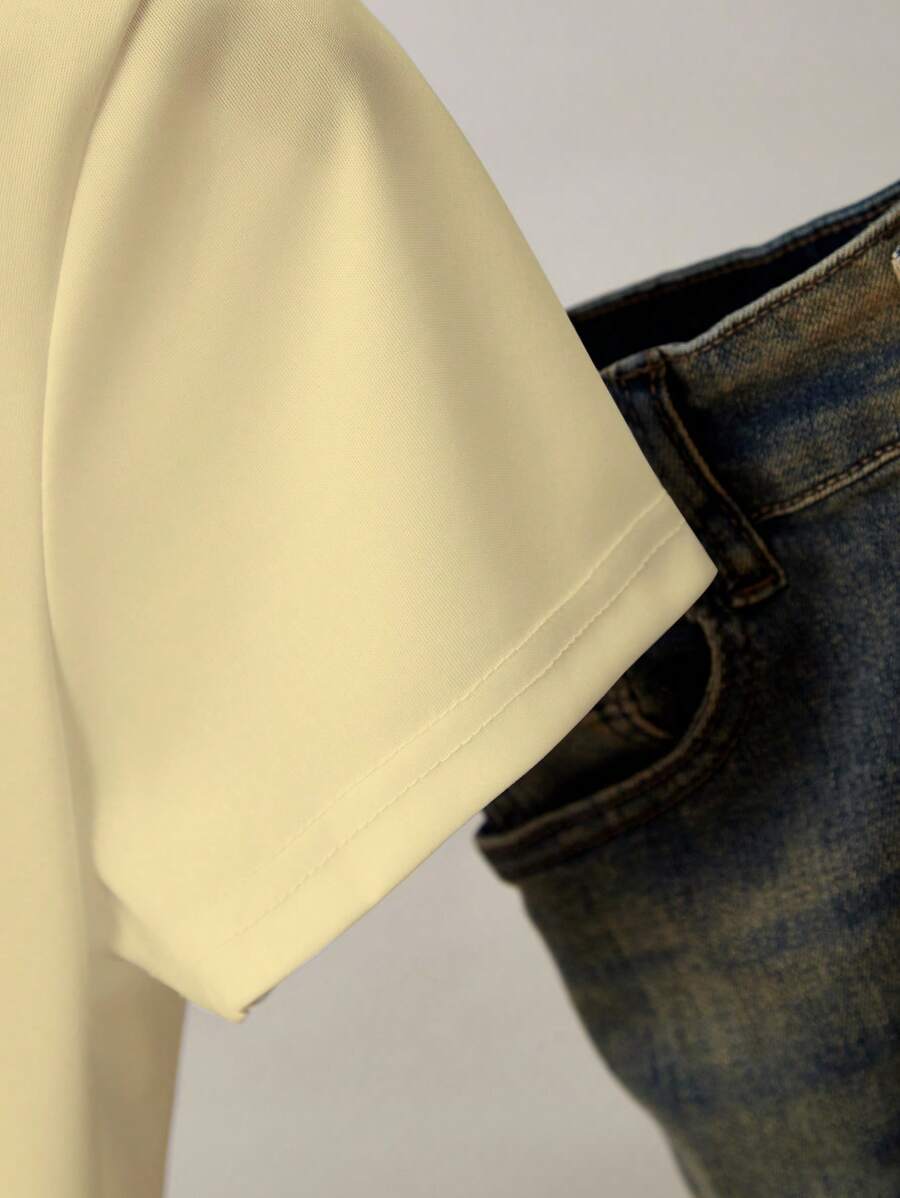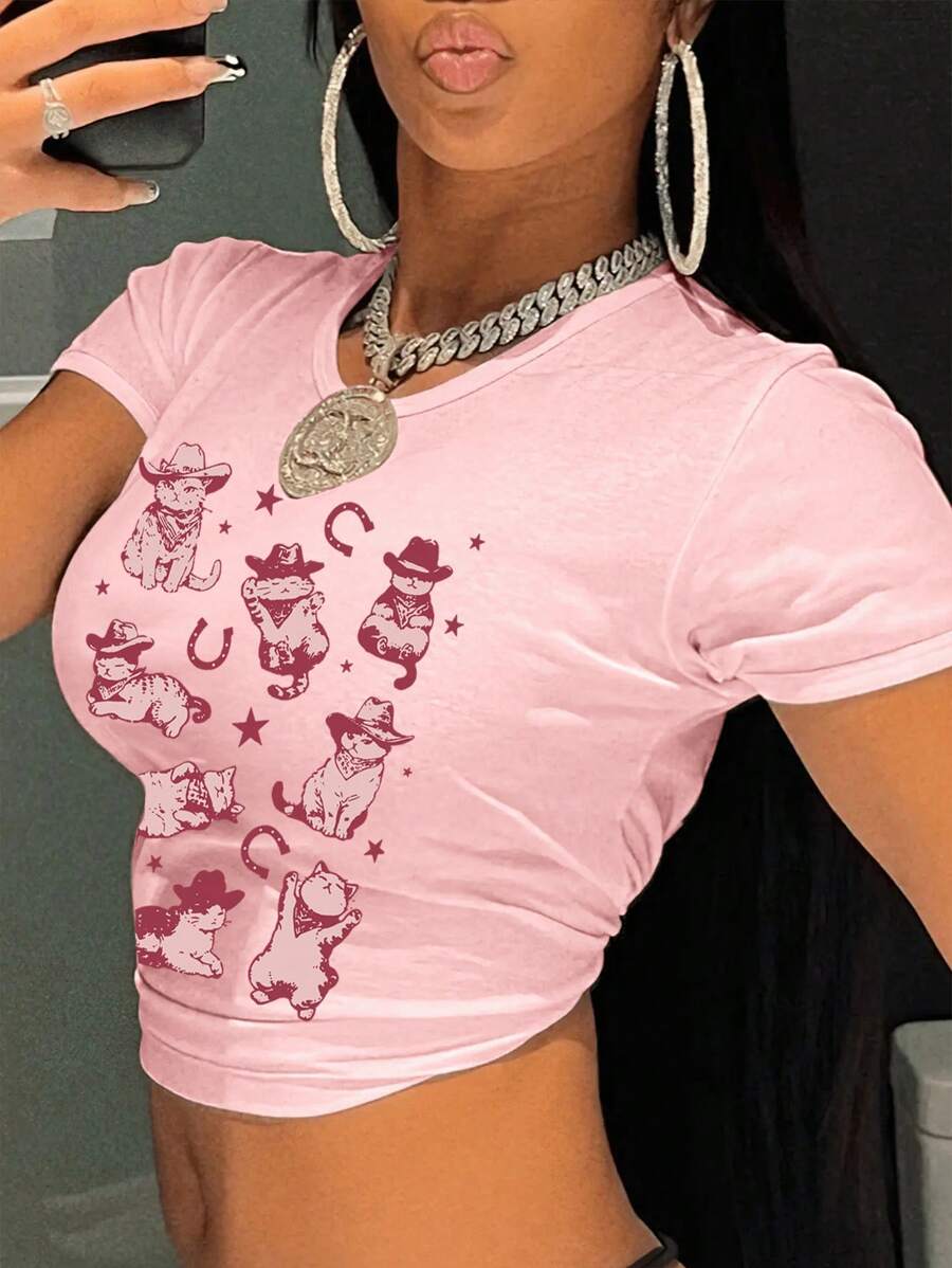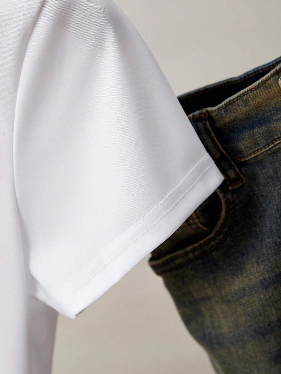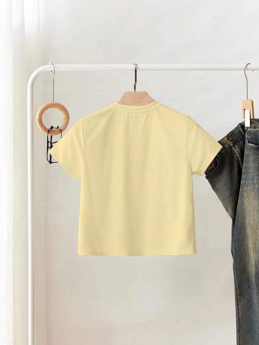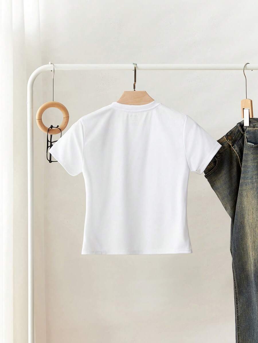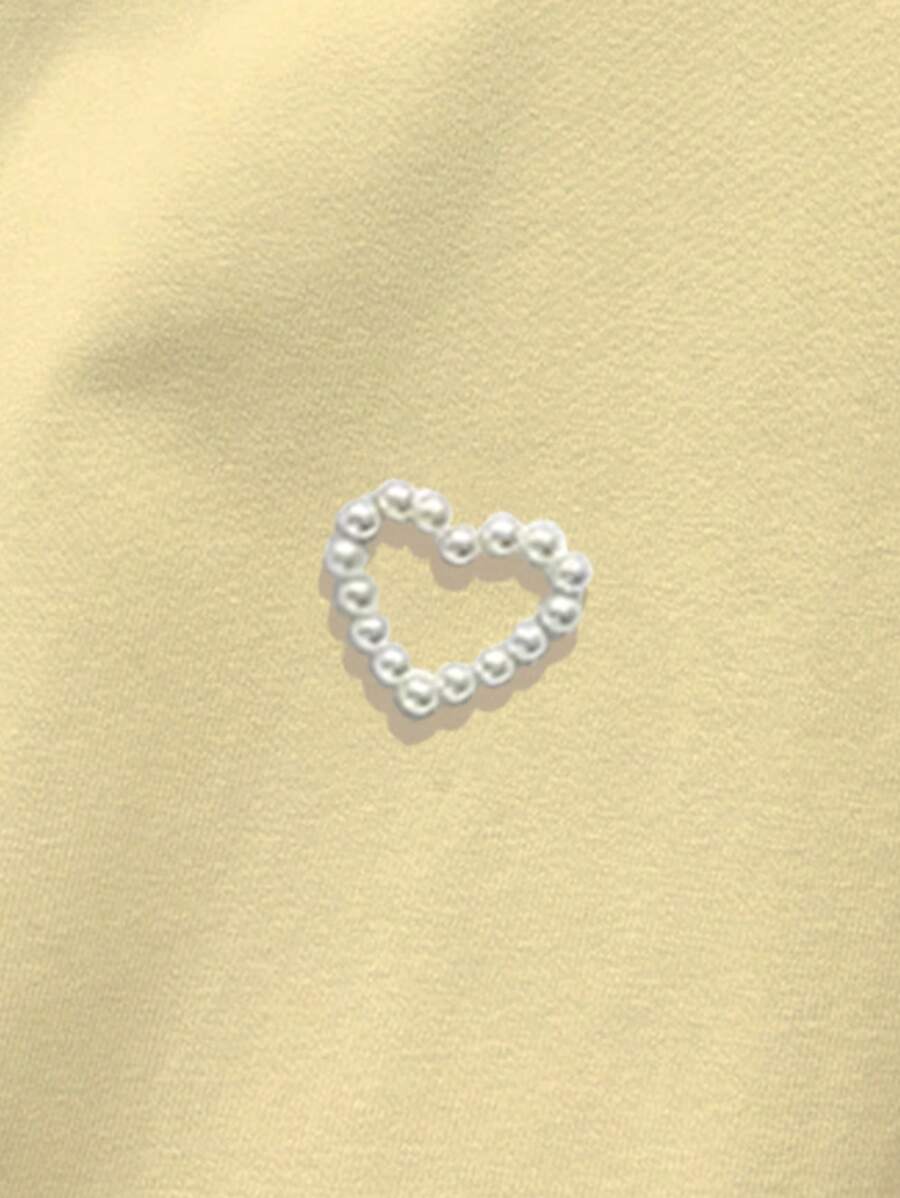 Camiseta de manga corta con cuello redondo, de verano, con perlas falsas en forma de corazon, estilo minimalista para mujer
