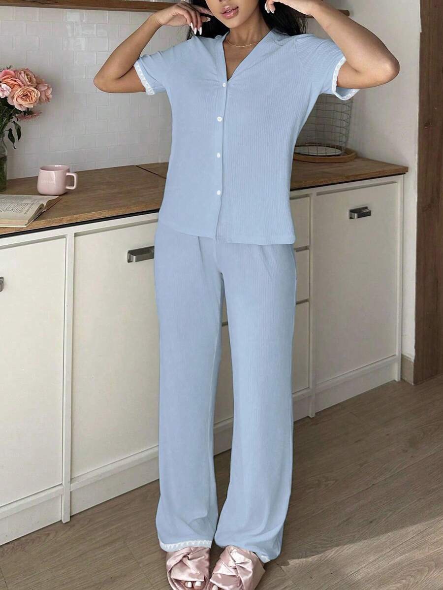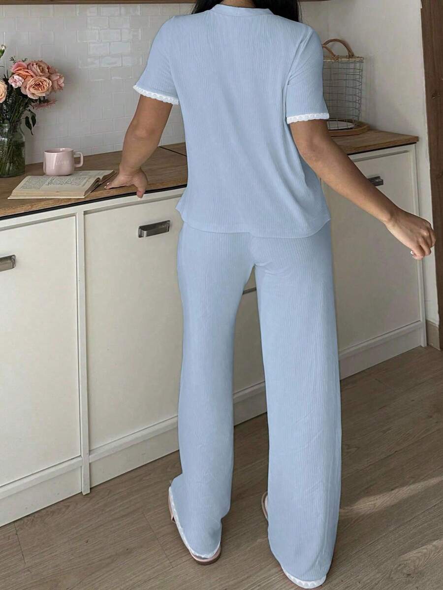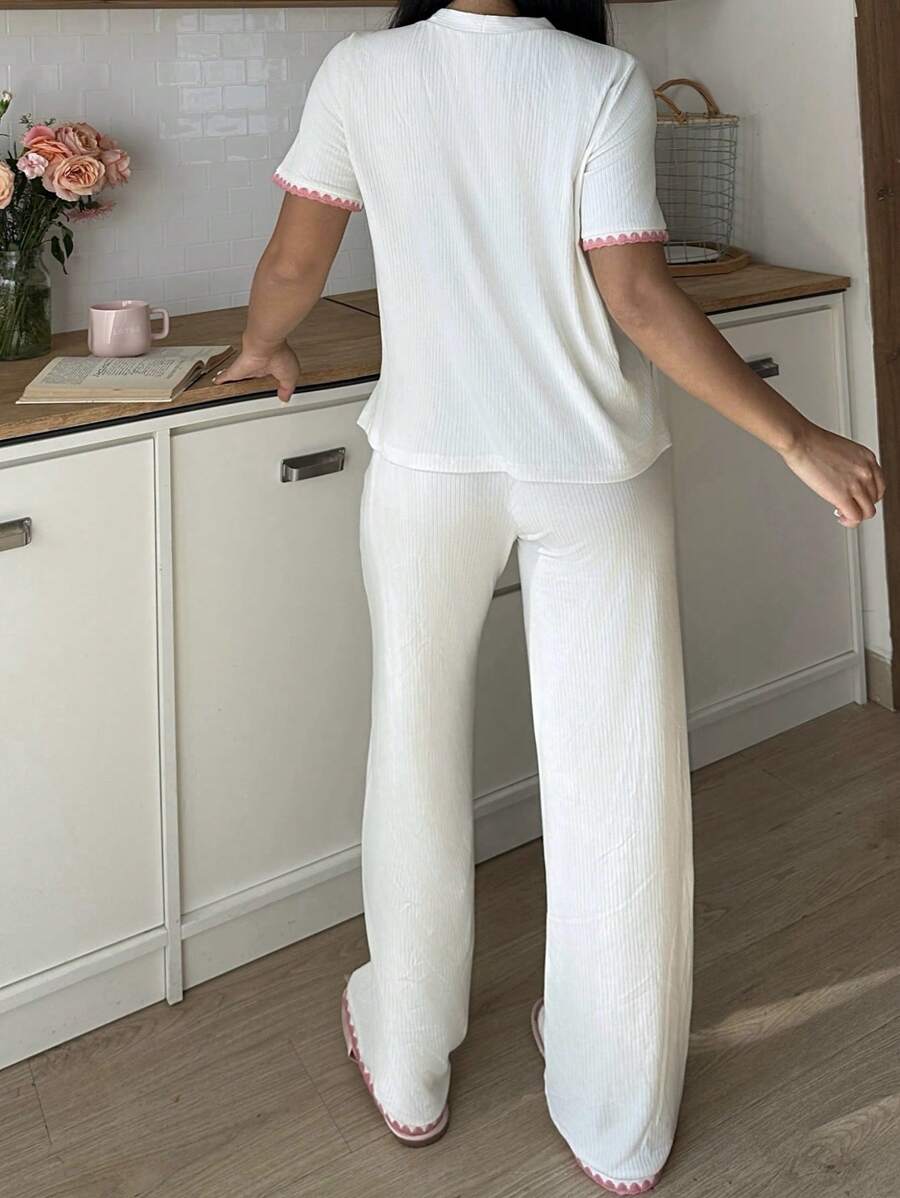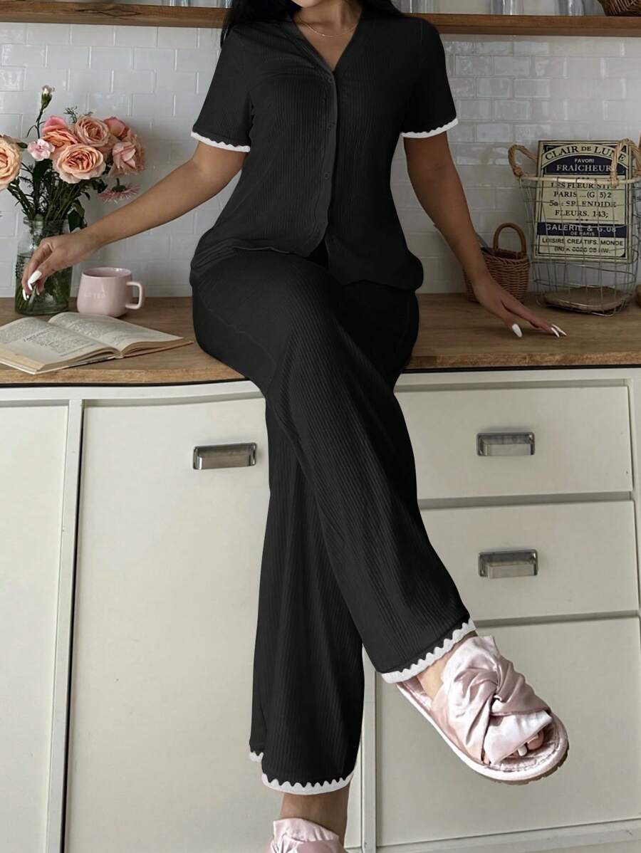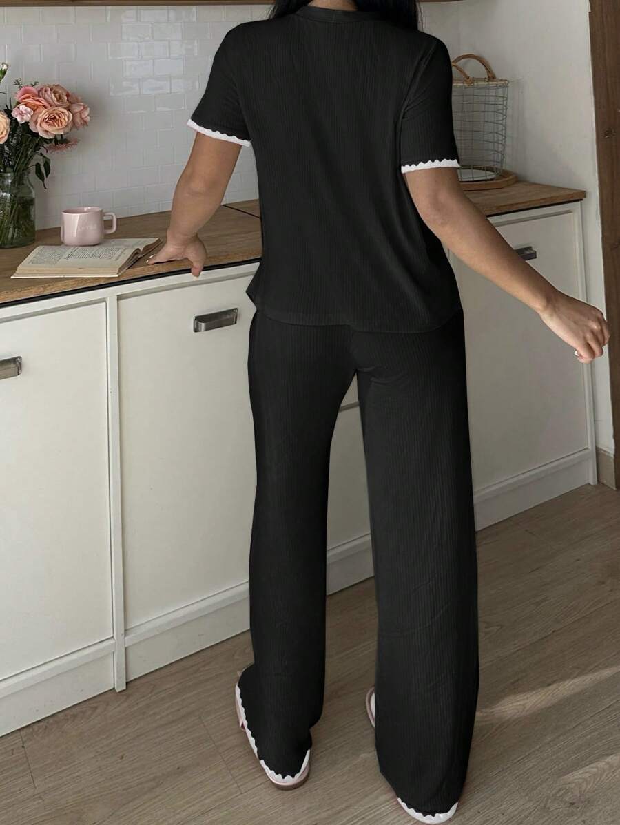 2 piezas conjunto de ropa de estar en casa informal con contraste de colores para mujer