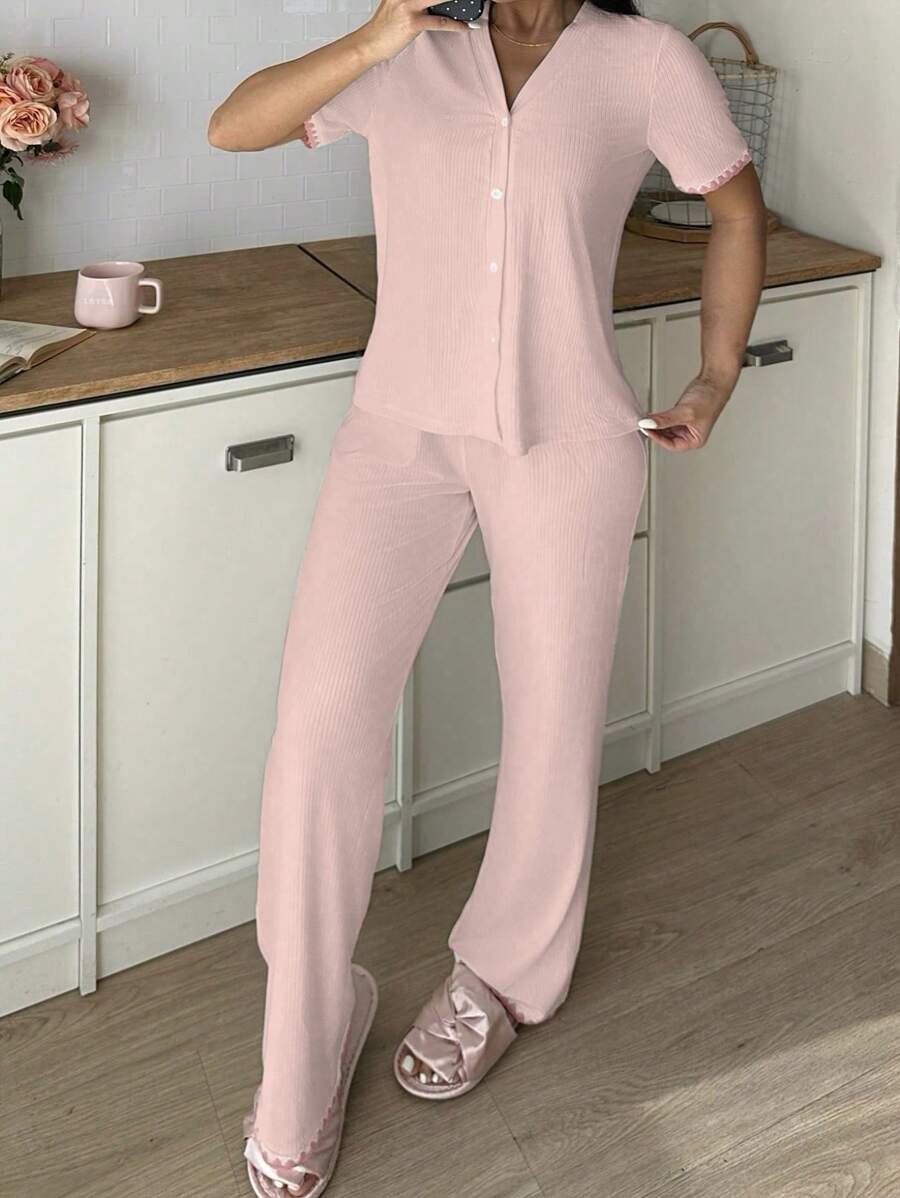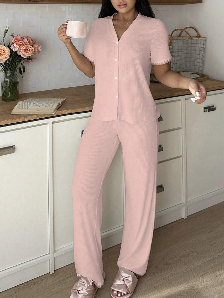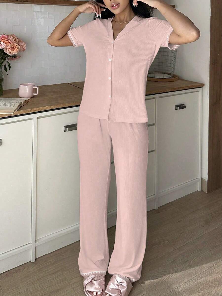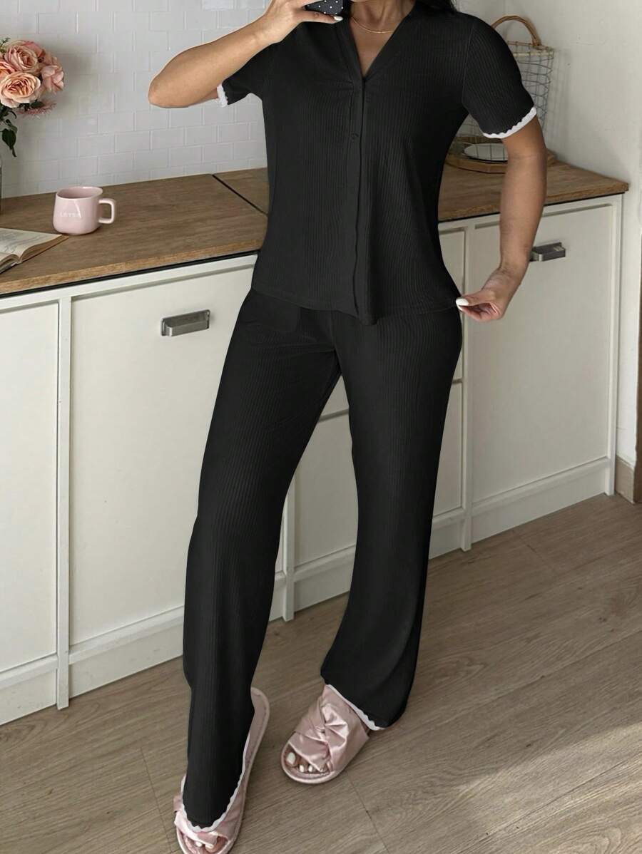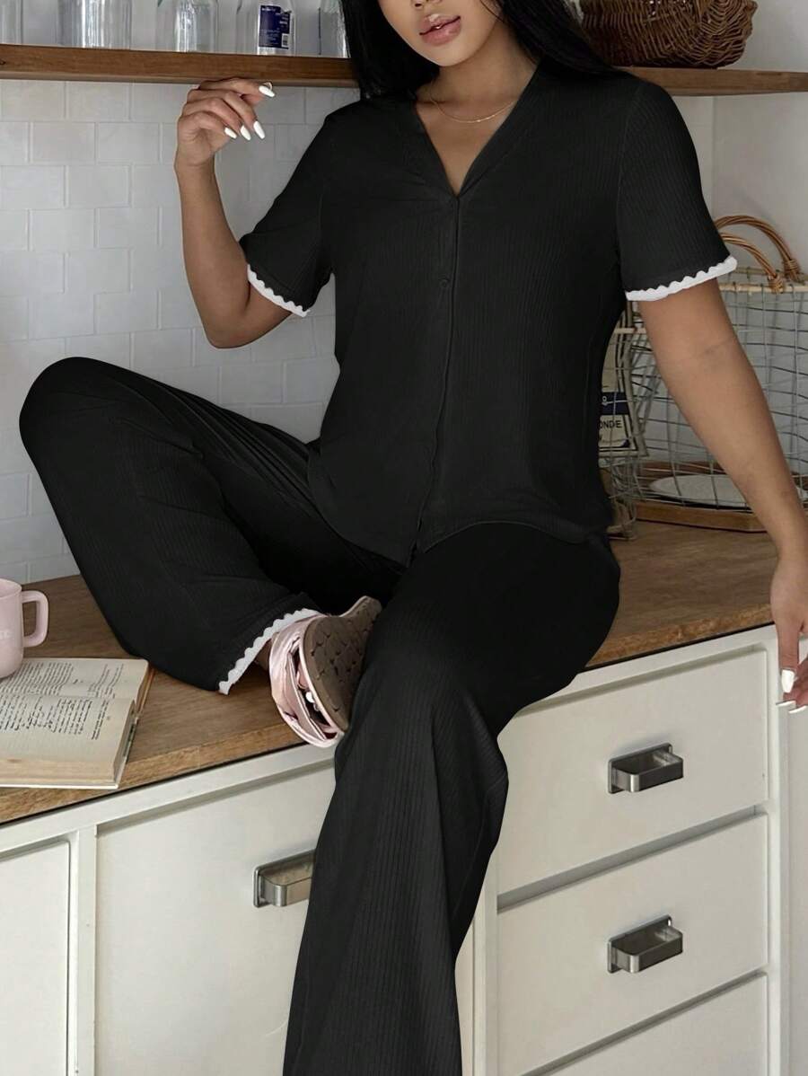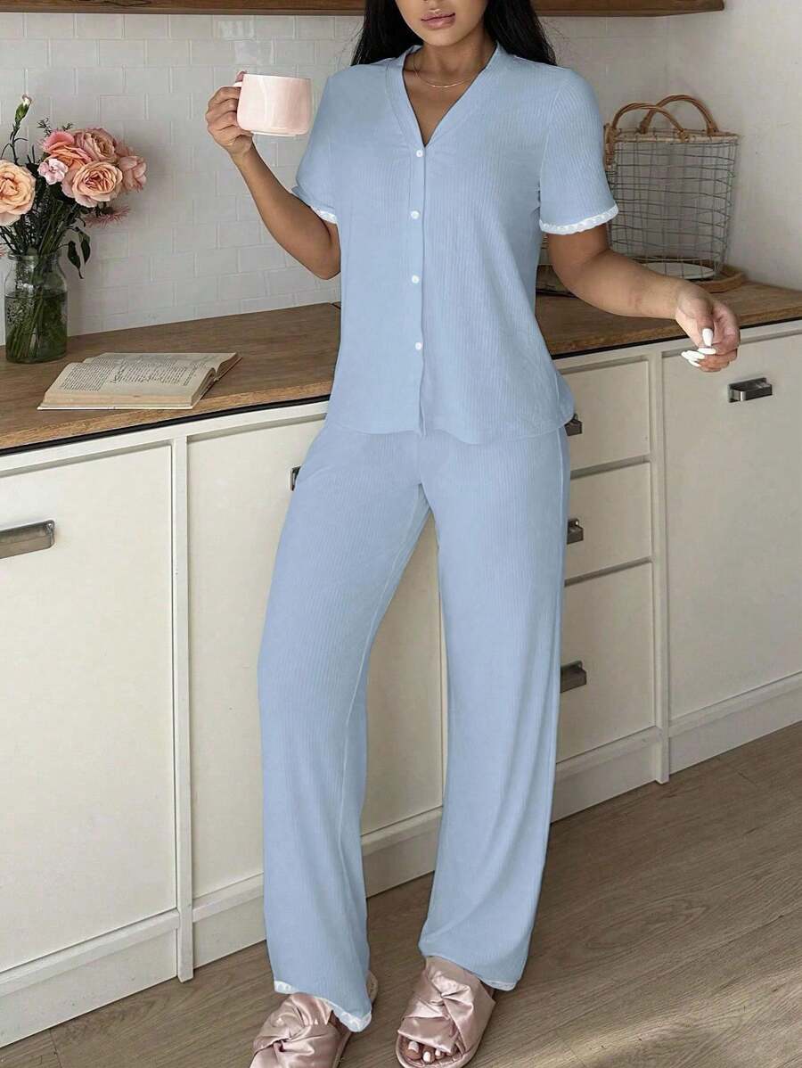 2 piezas conjunto de ropa de estar en casa informal con contraste de colores para mujer