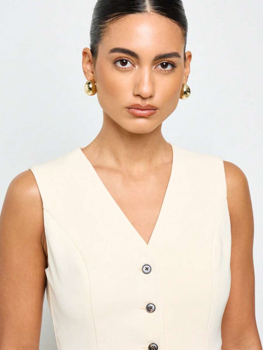 Aiirz chaleco estructurado formal con botones para oficina, reuniones profesionales o entrevistas. clasico para usar en otono, invierno y primavera.