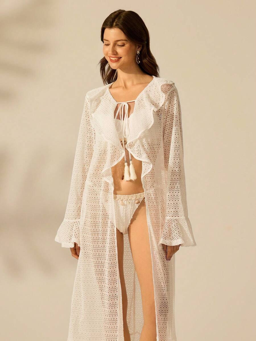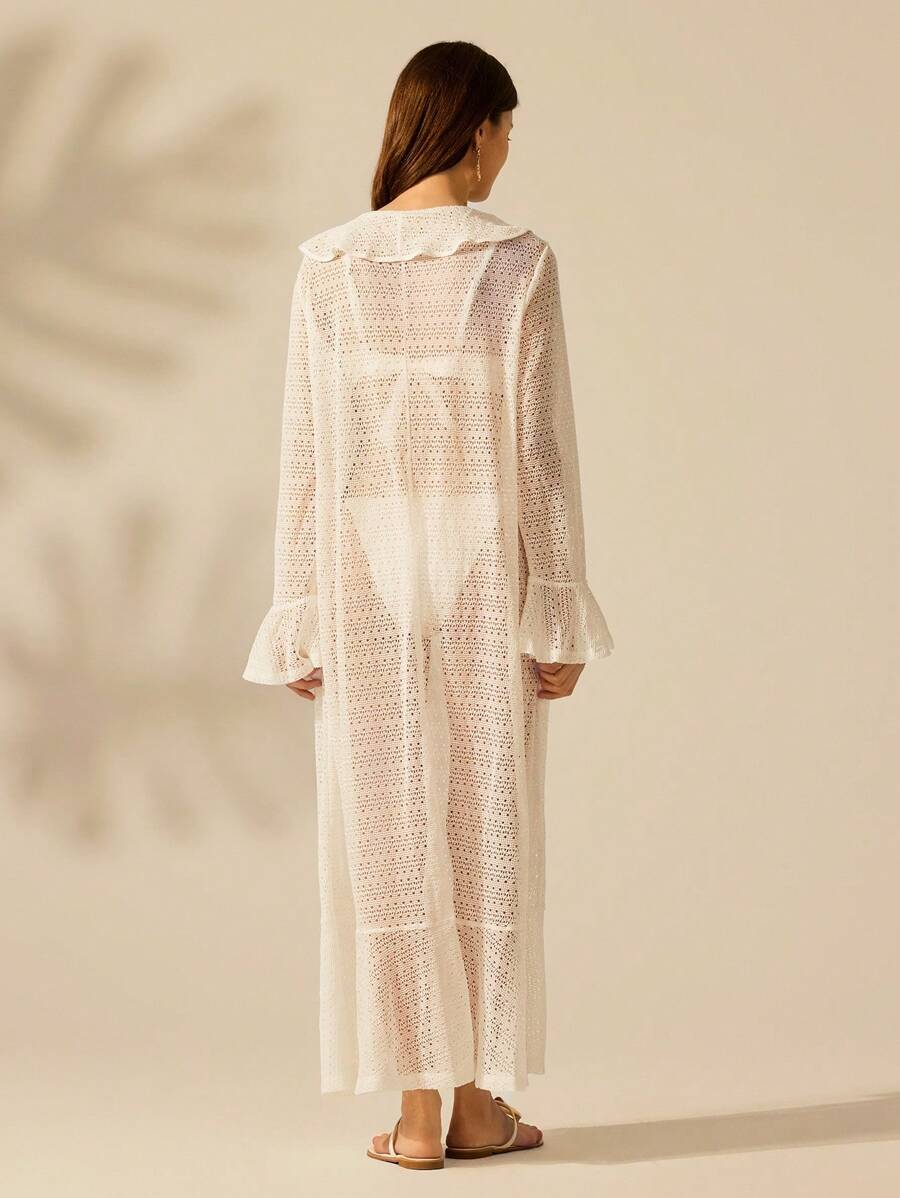 Batas de playa casual de estilo boho tropical, de manga abullonada larga, ligera, de color blanco lechoso