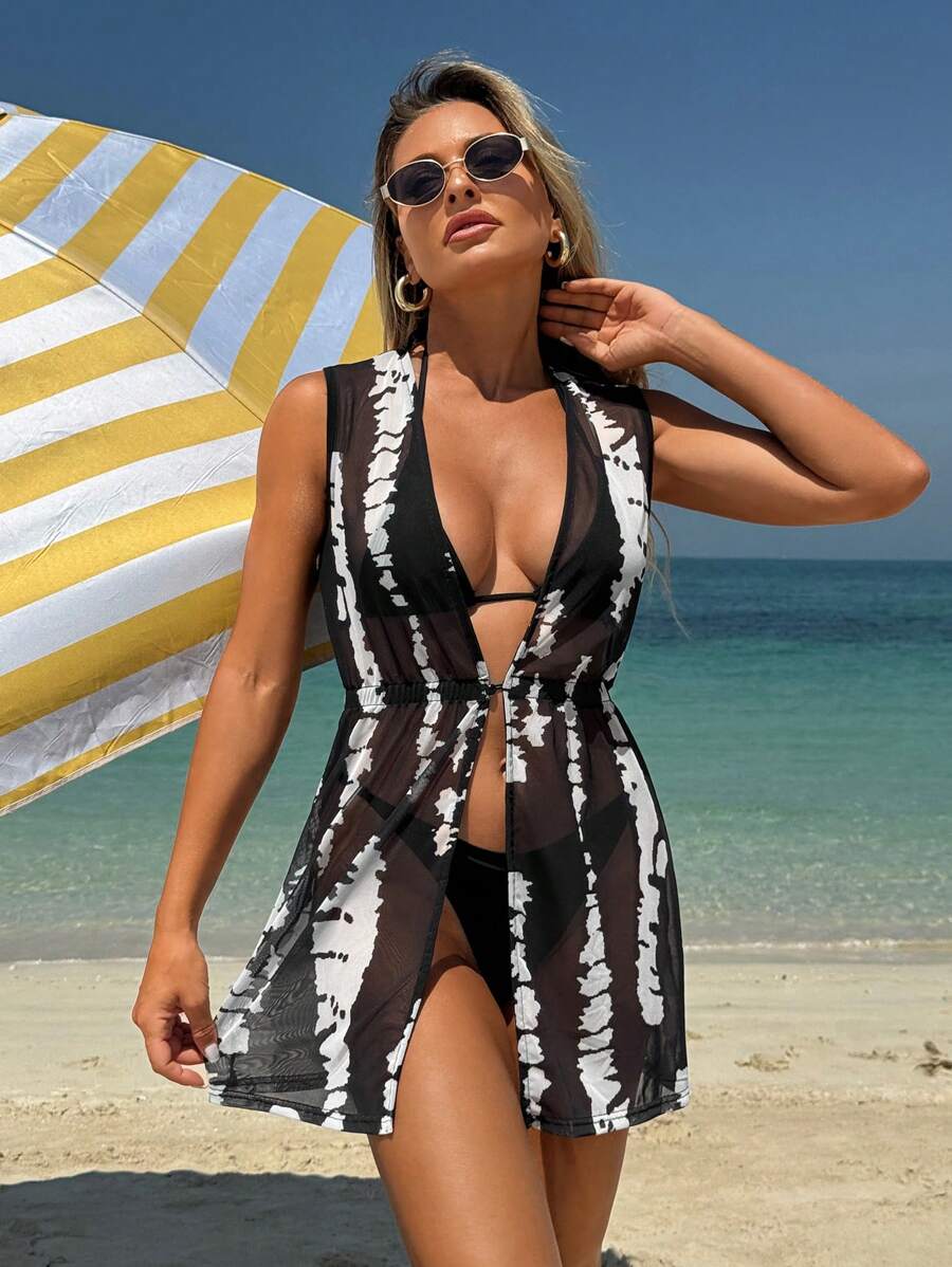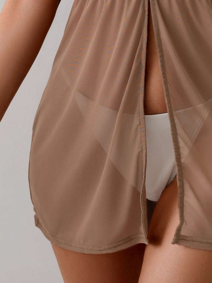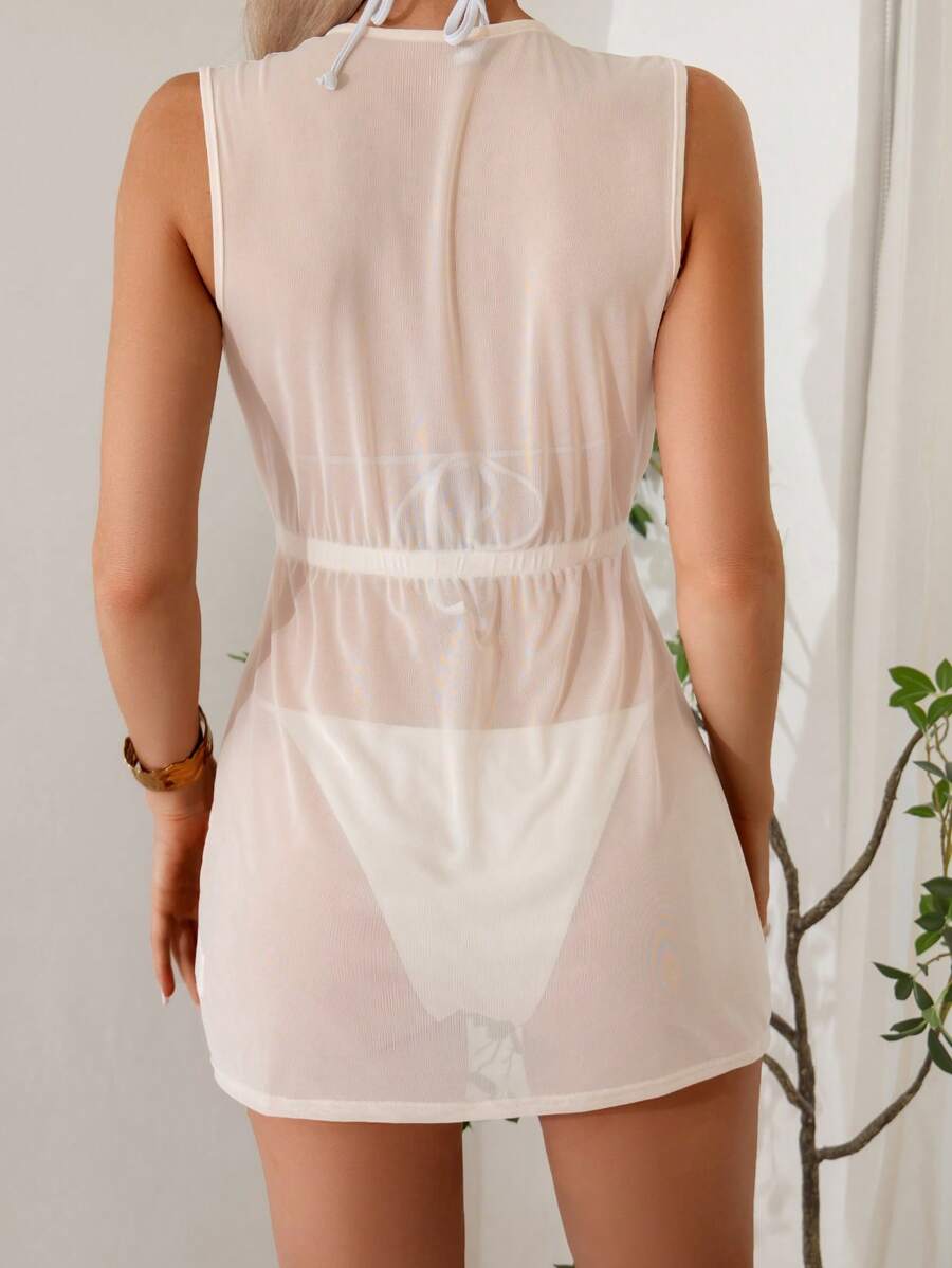 1 pieza tunica/cubrecuerpo casual de moda de unicolor sin mangas, adecuado para el verano, para mujer