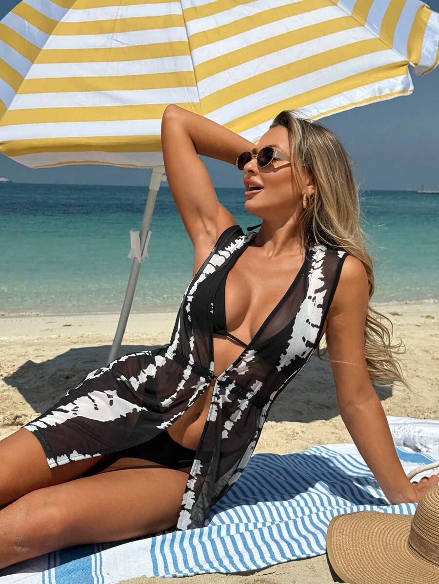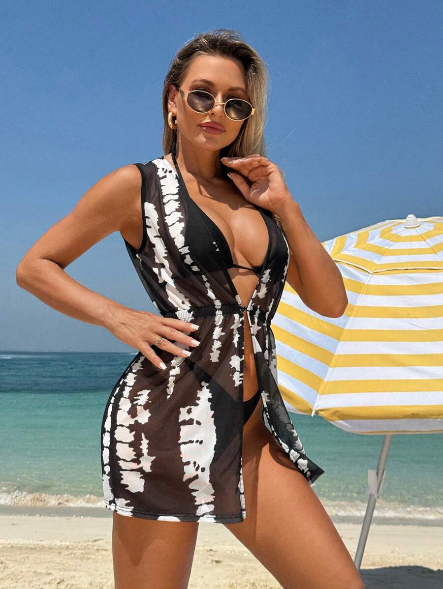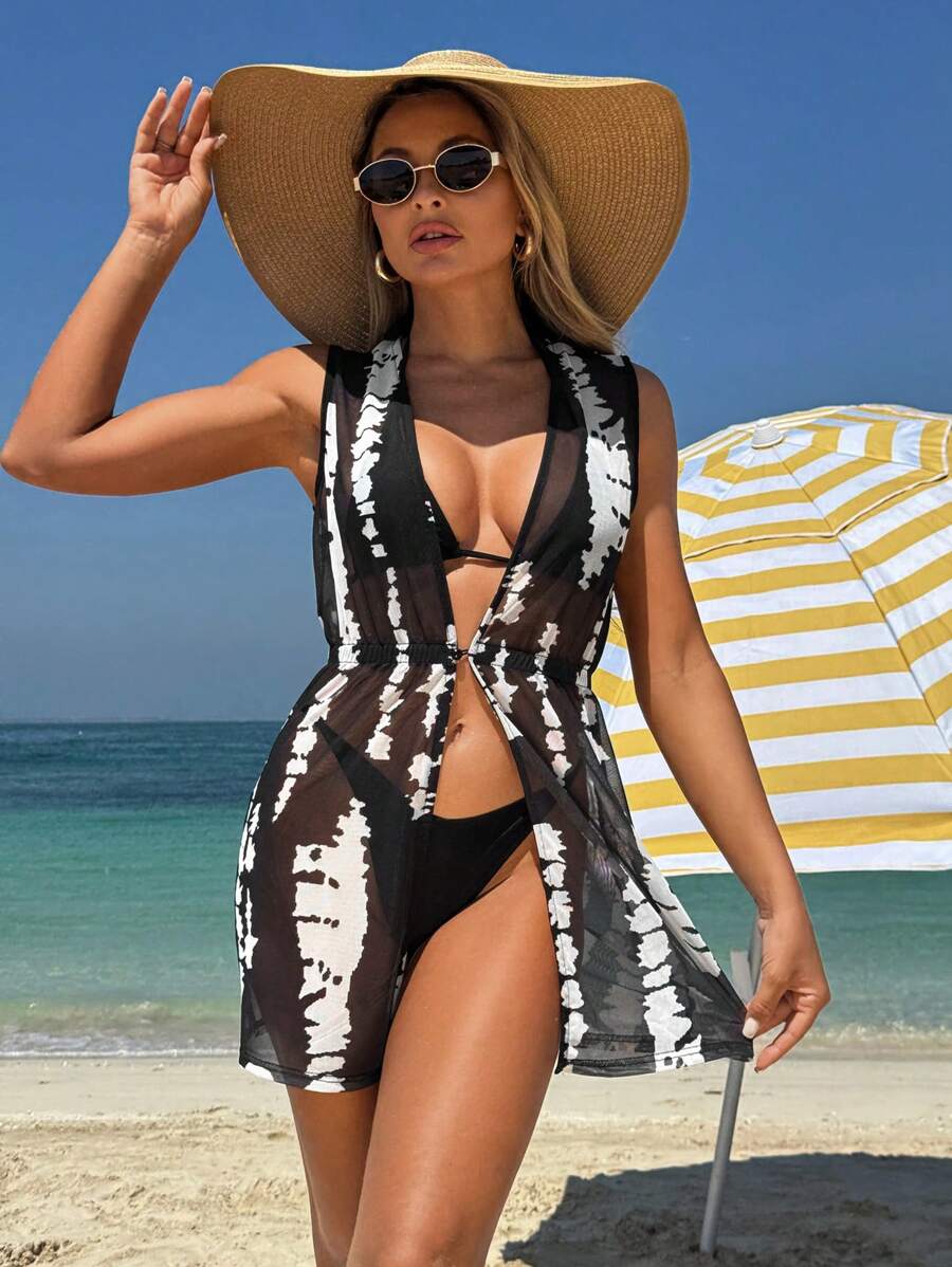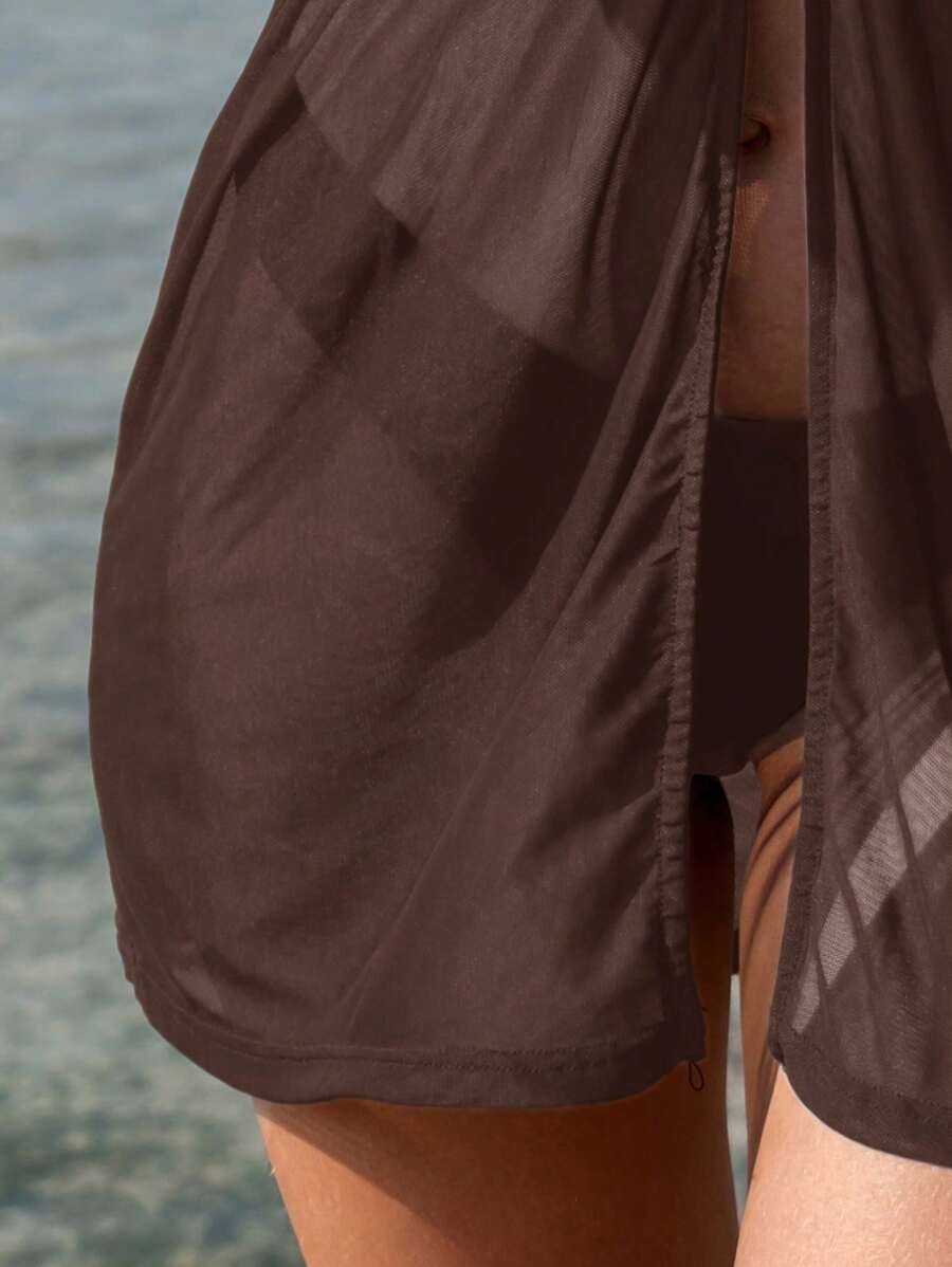 1 pieza tunica/cubrecuerpo casual de moda de unicolor sin mangas, adecuado para el verano, para mujer