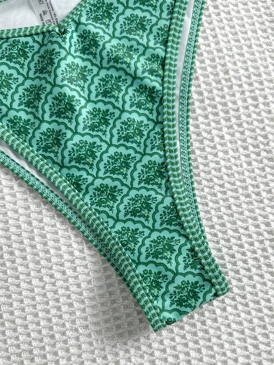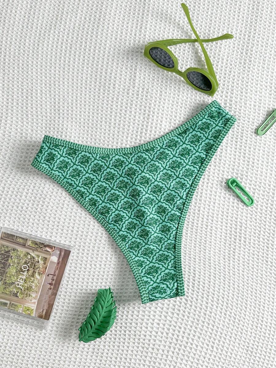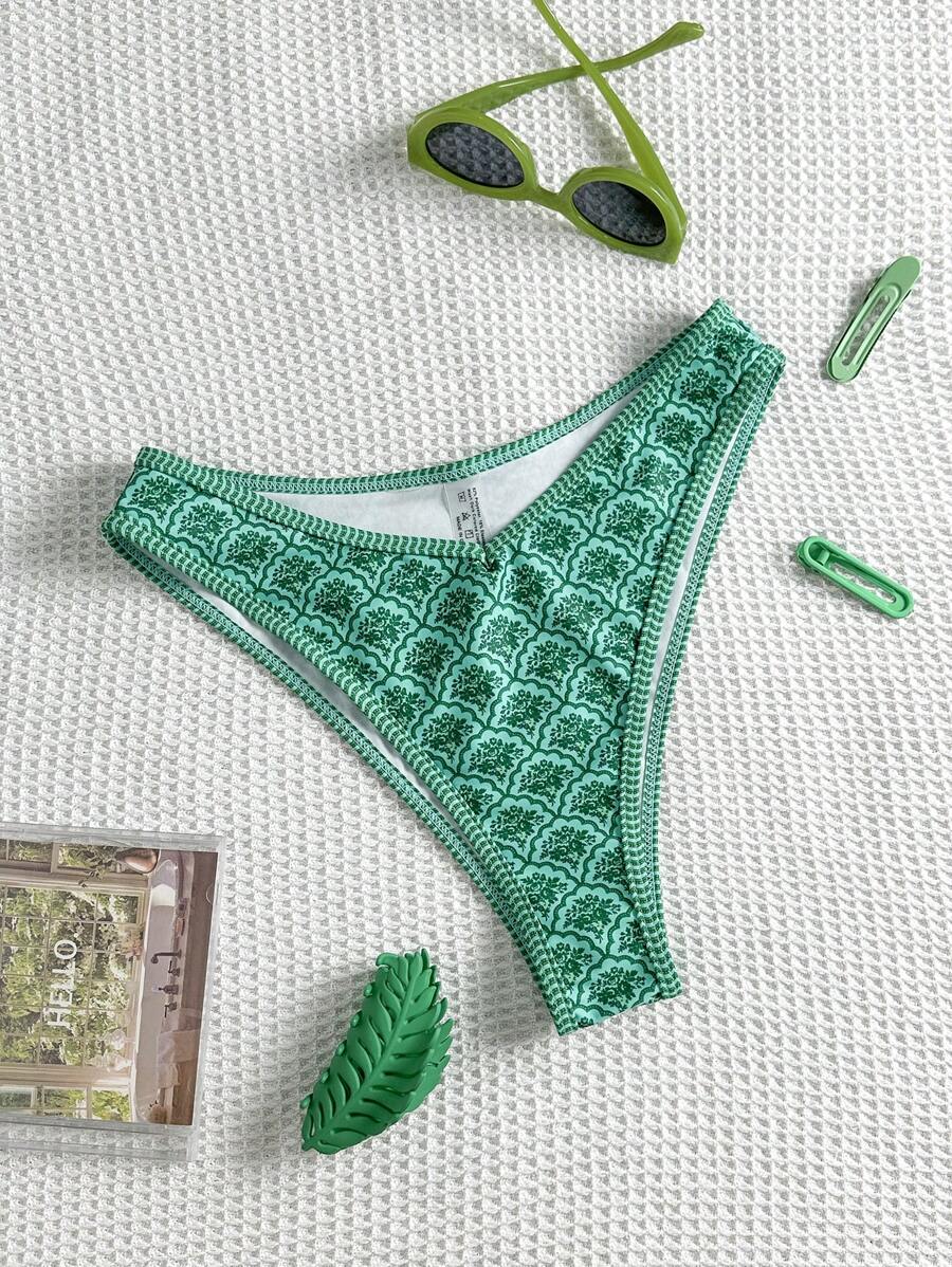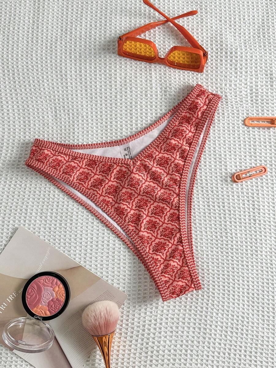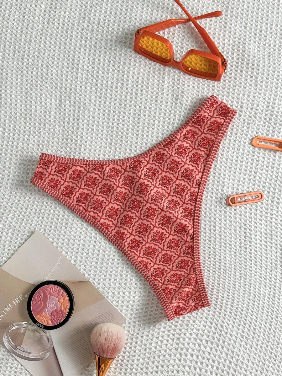 1 pieza tanga de bikini de corte alto con estampado aleatorio para playa y vacaciones de mujer