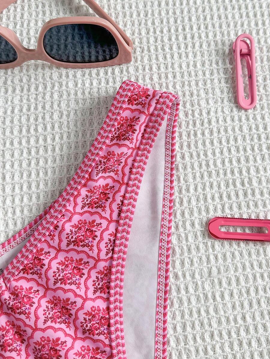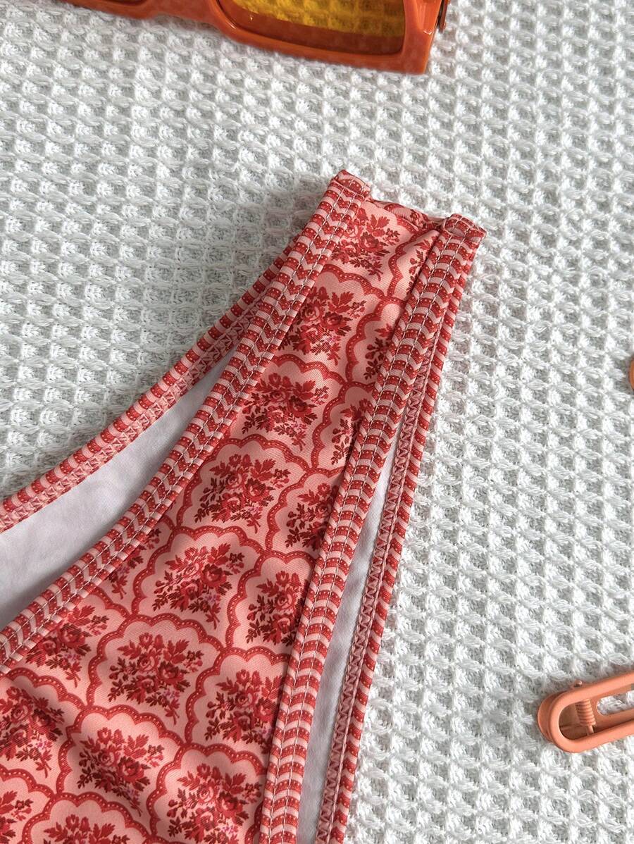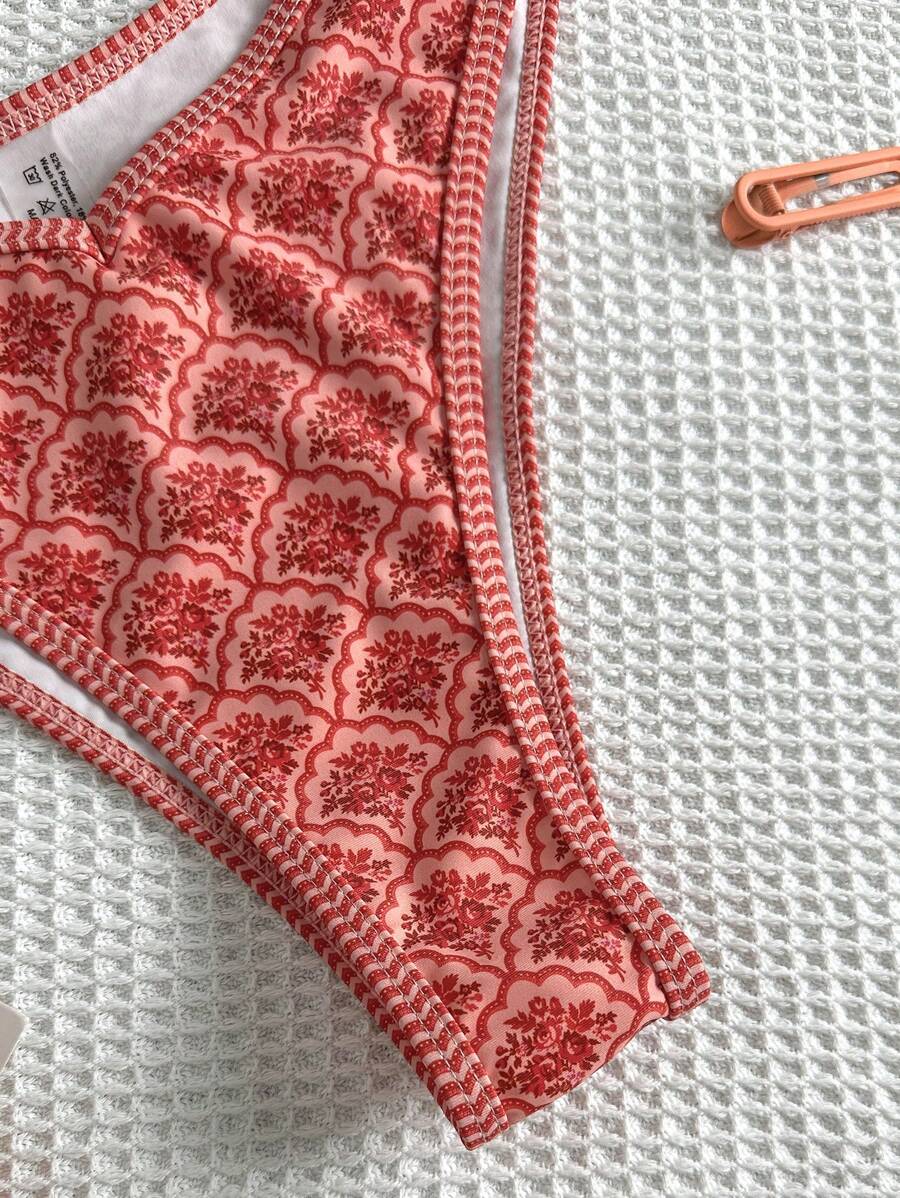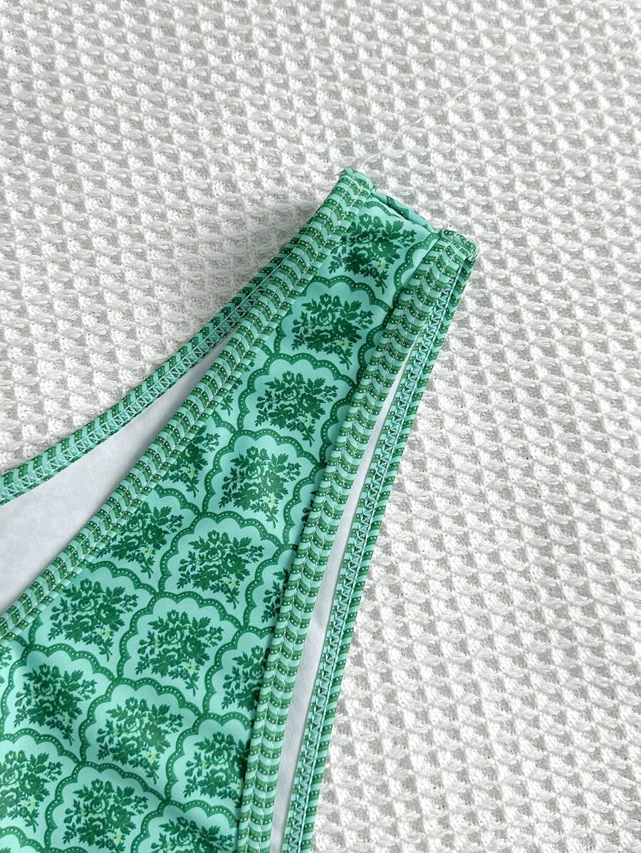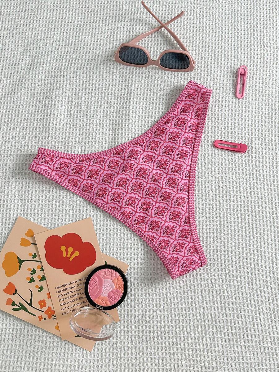 1 pieza tanga de bikini de corte alto con estampado aleatorio para playa y vacaciones de mujer