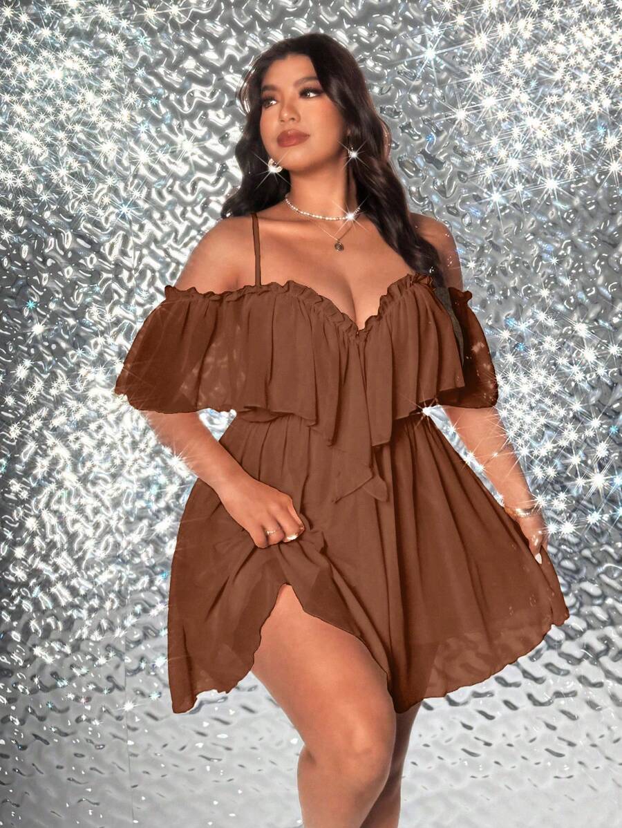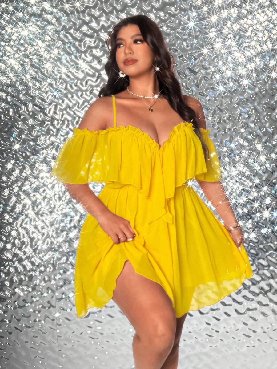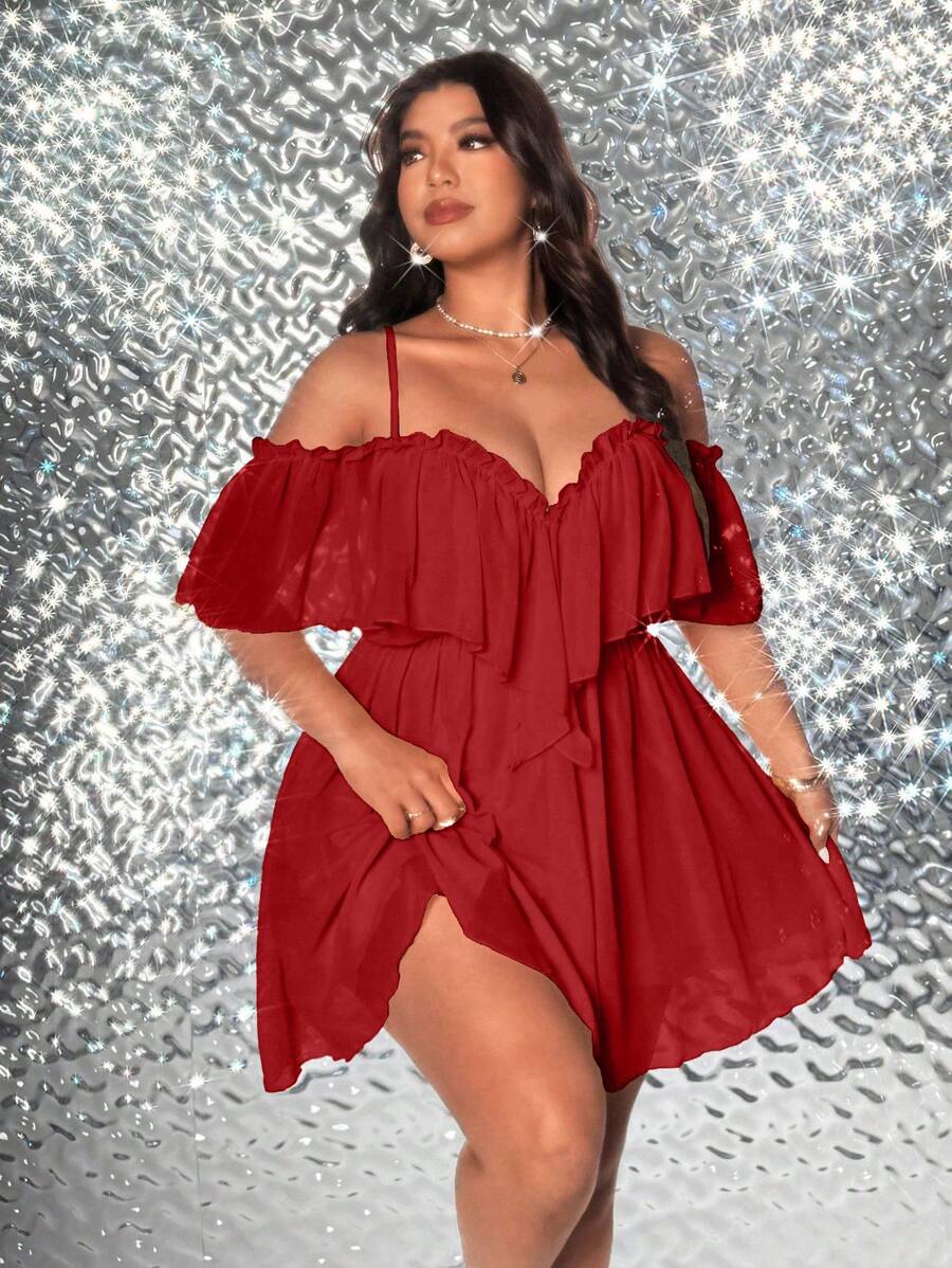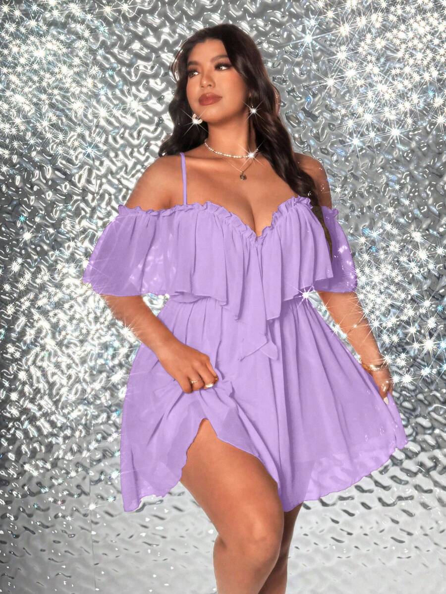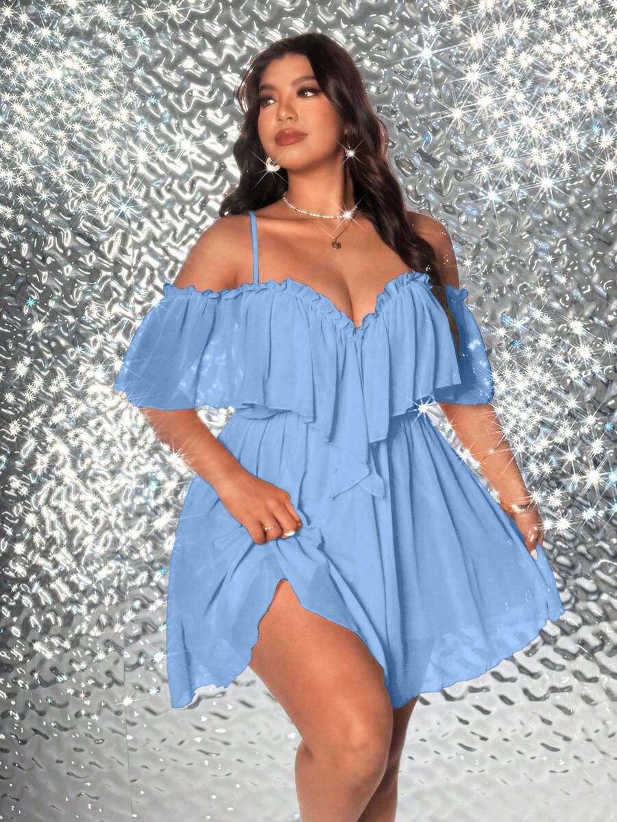Viva relle vestido deslizante de unicolor elegante y de hombros descubiertos para tallas grandes, verano