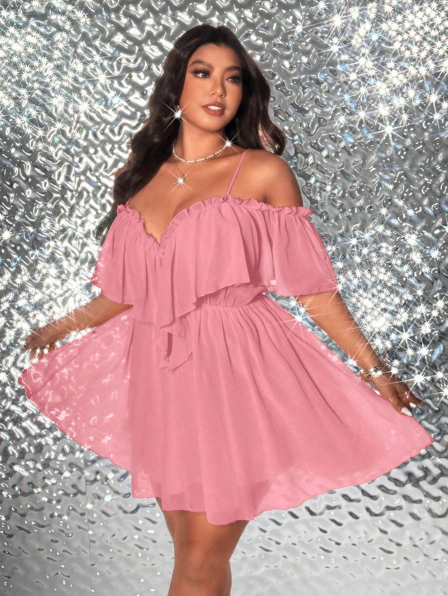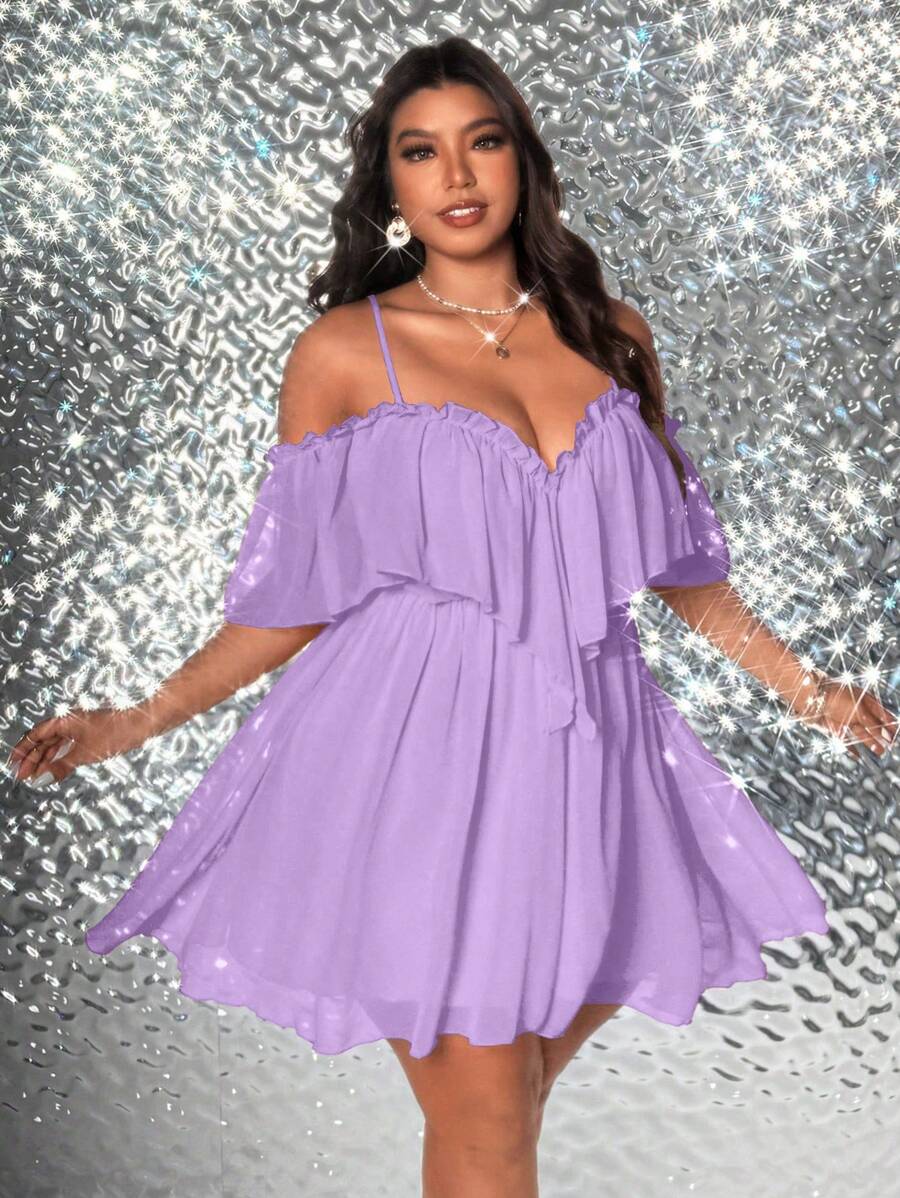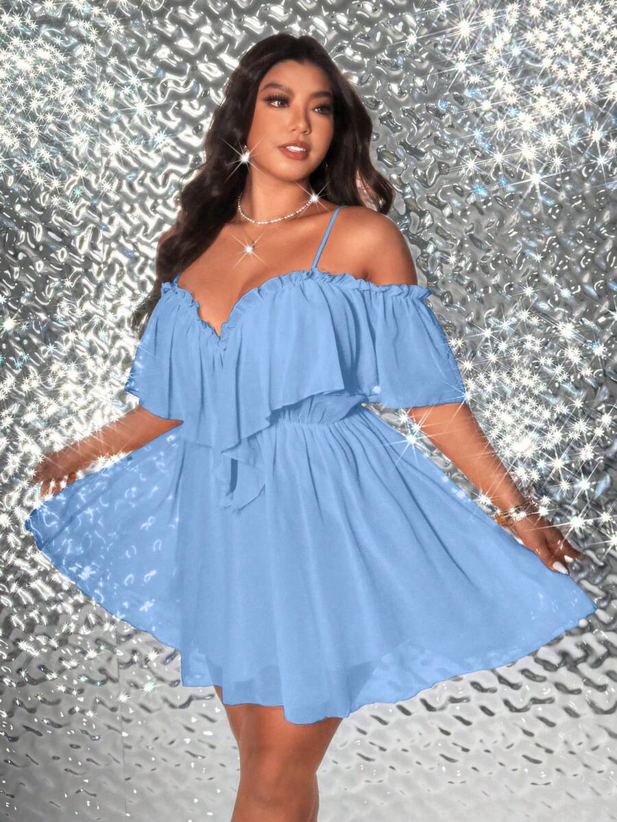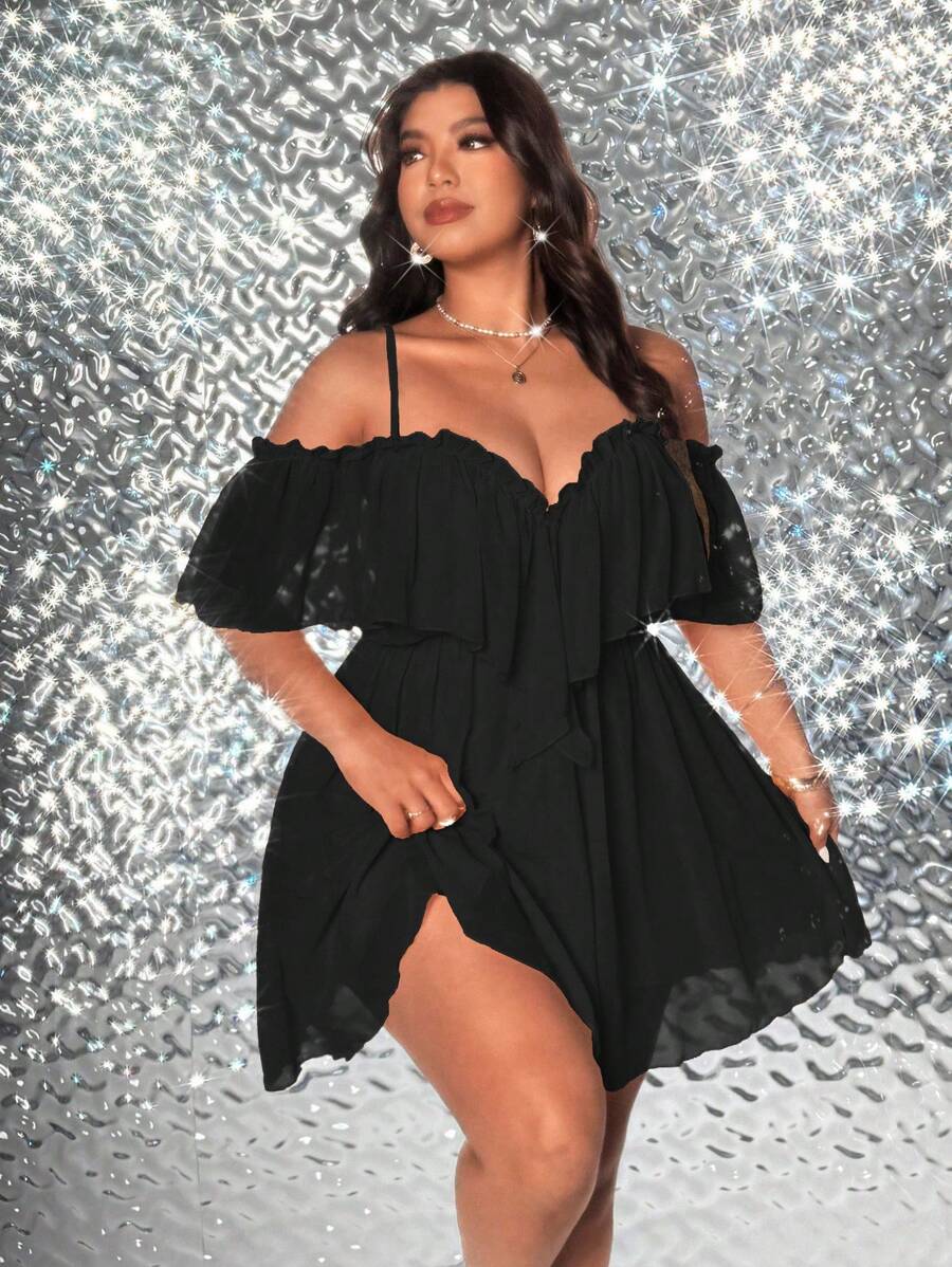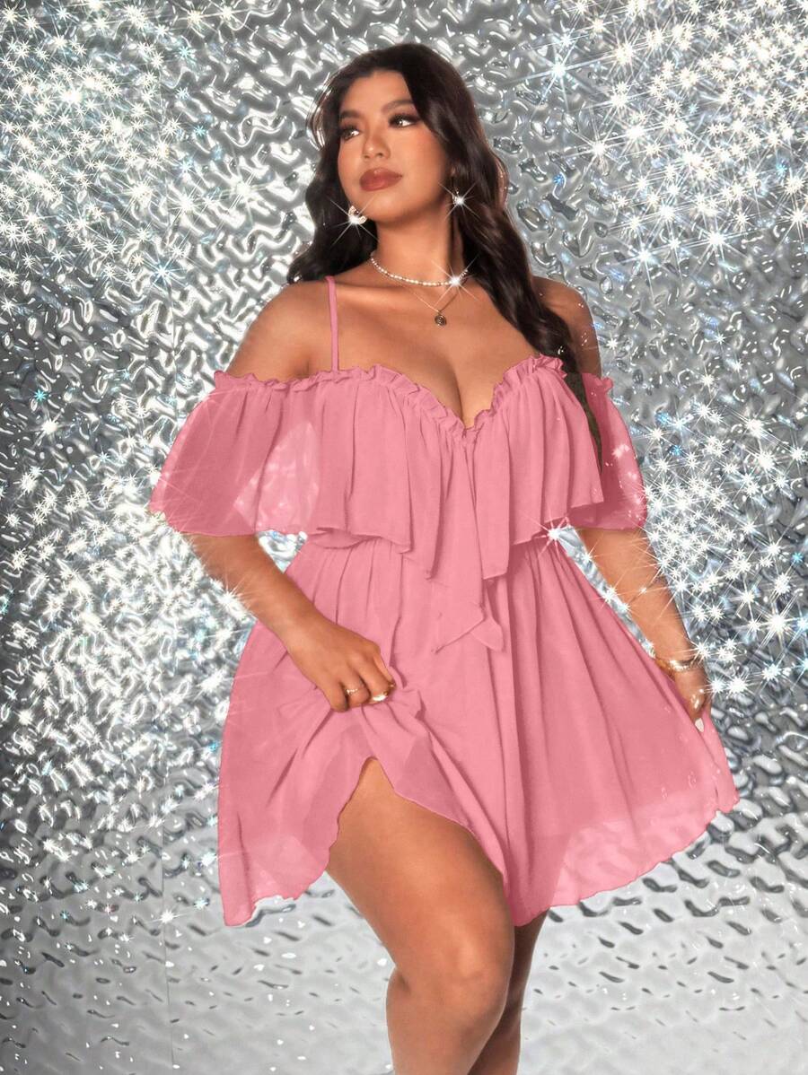 Viva relle vestido deslizante de unicolor elegante y de hombros descubiertos para tallas grandes, verano