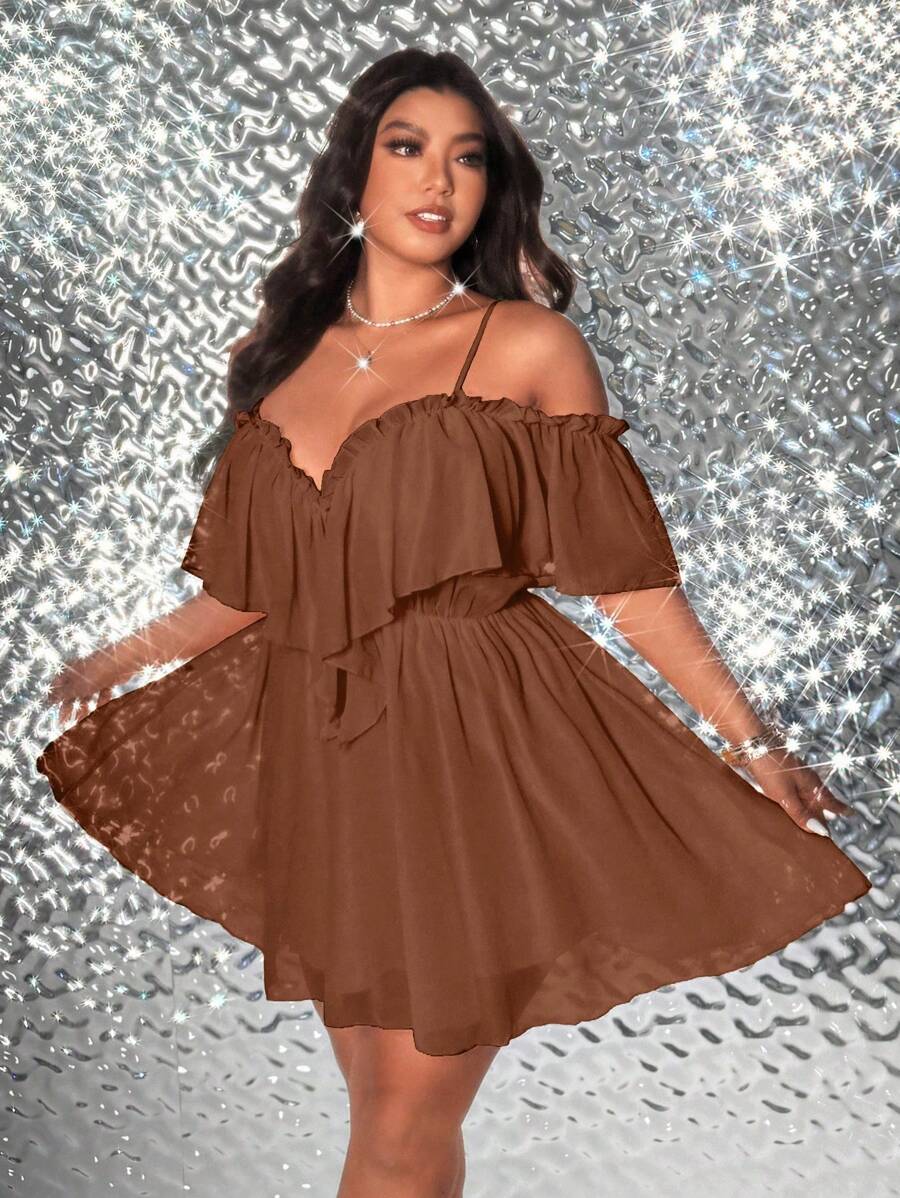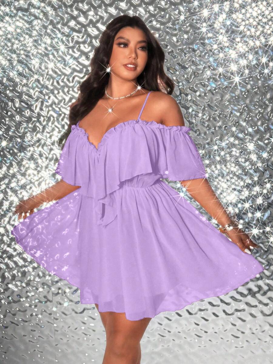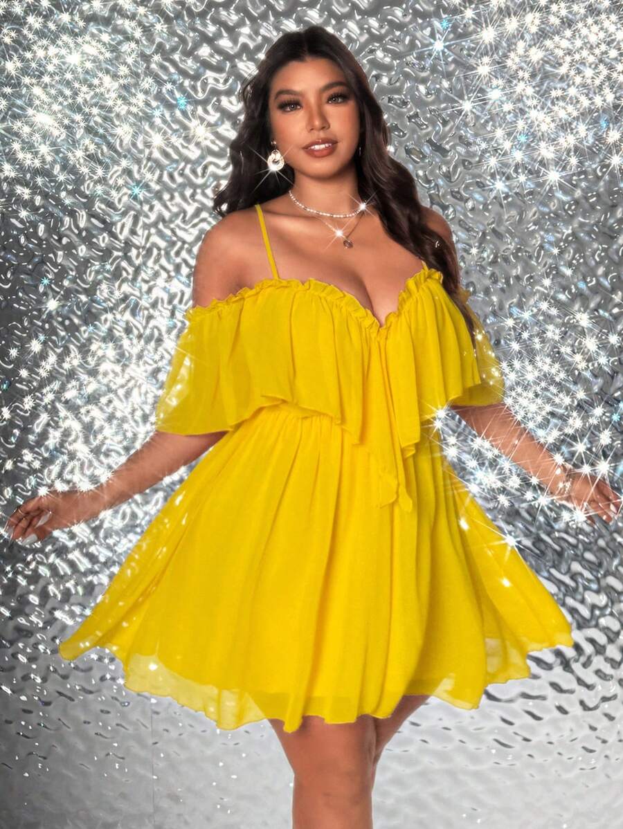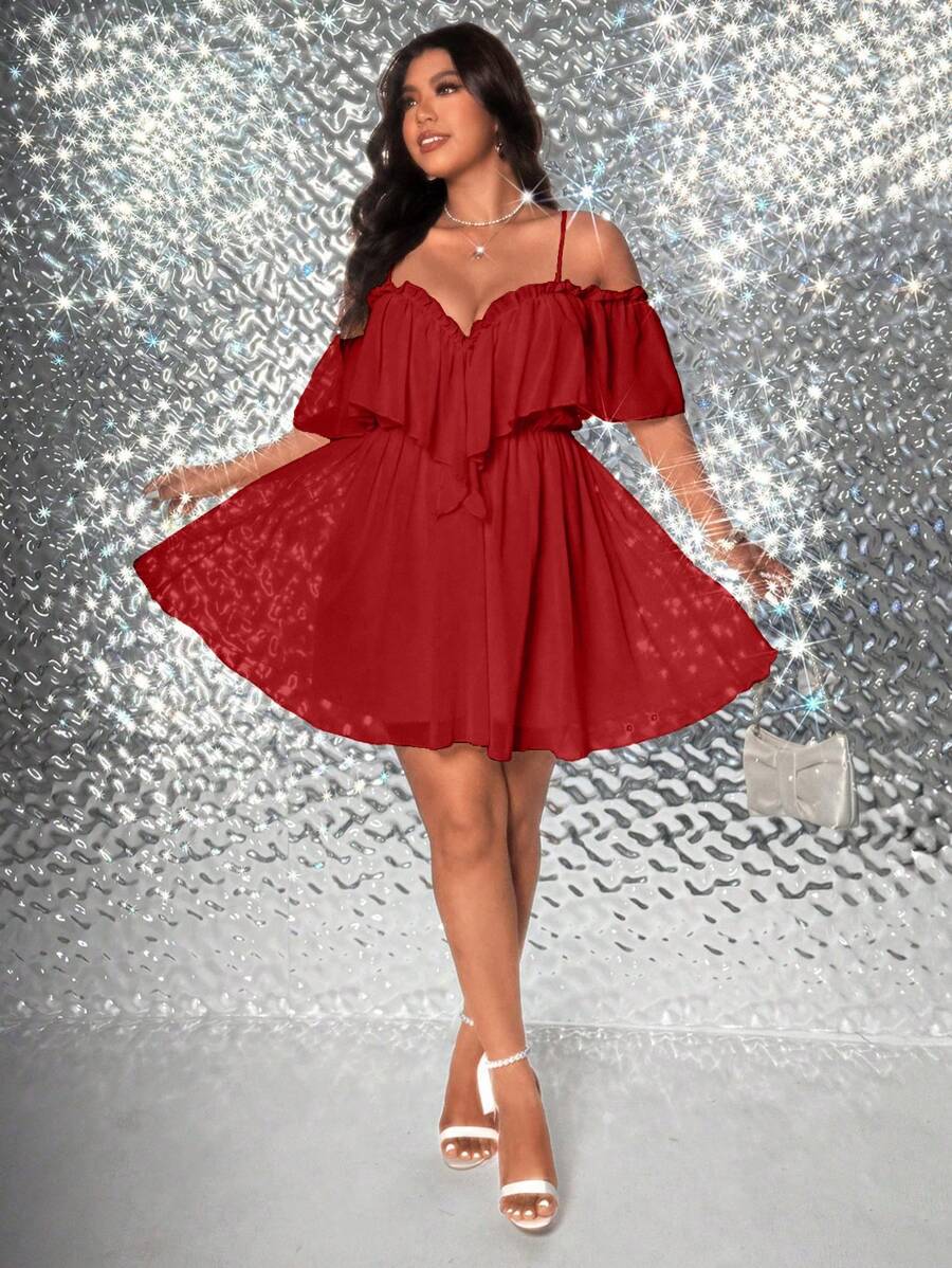Viva relle vestido deslizante de unicolor elegante y de hombros descubiertos para tallas grandes, verano