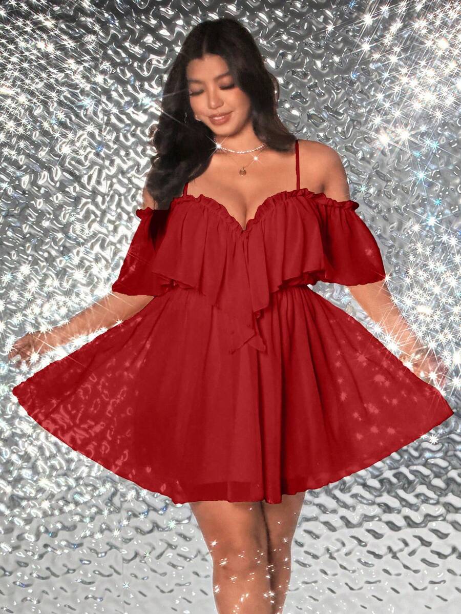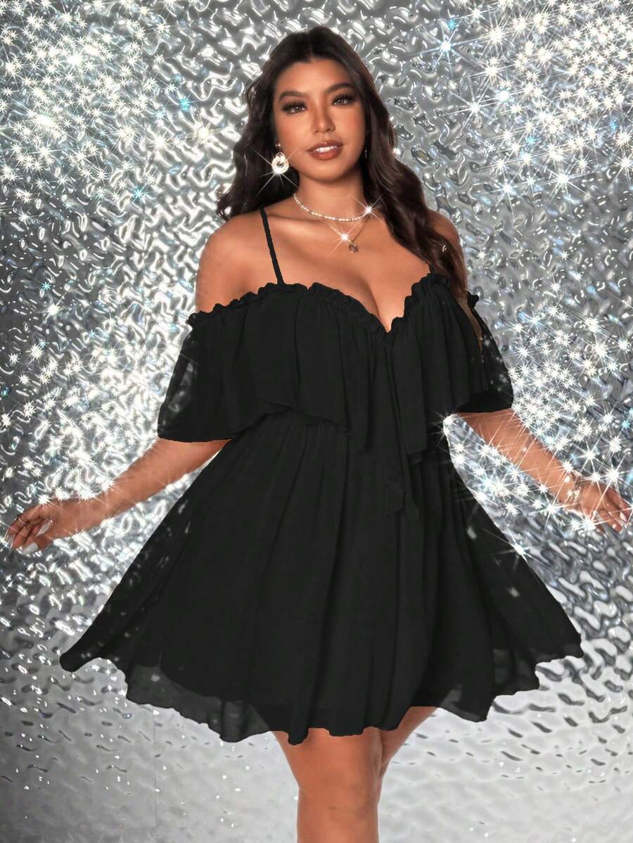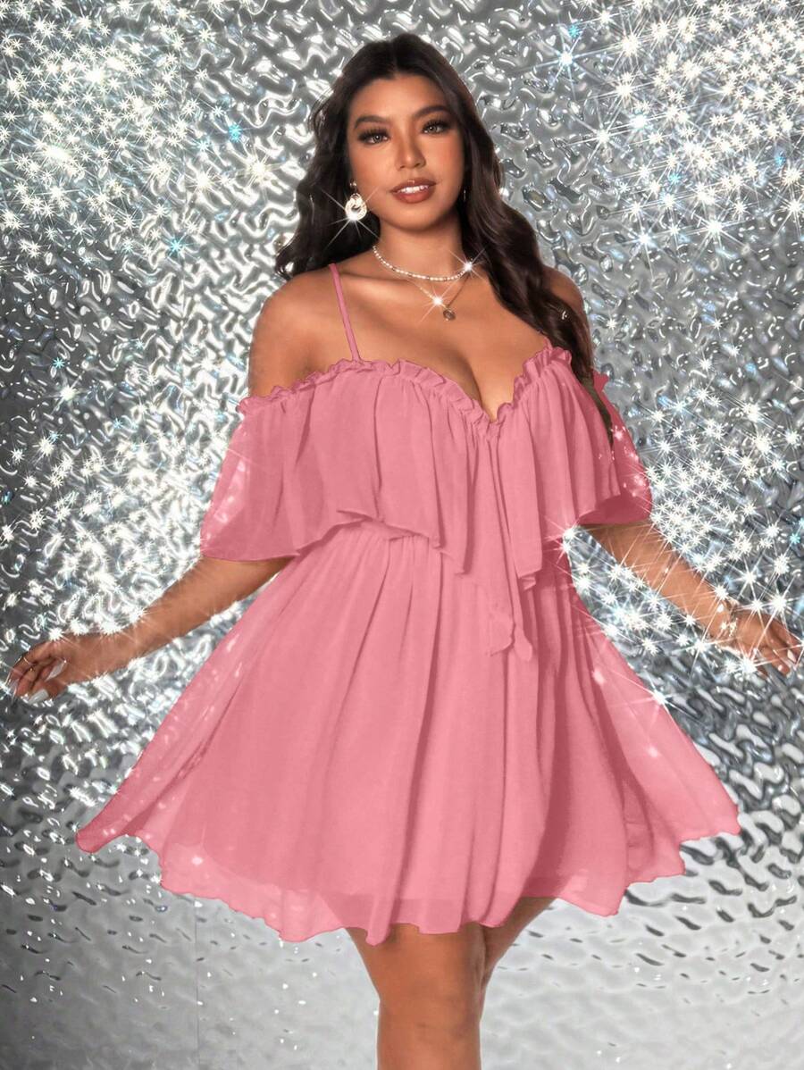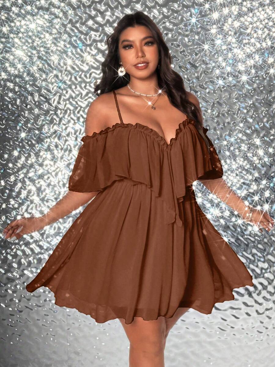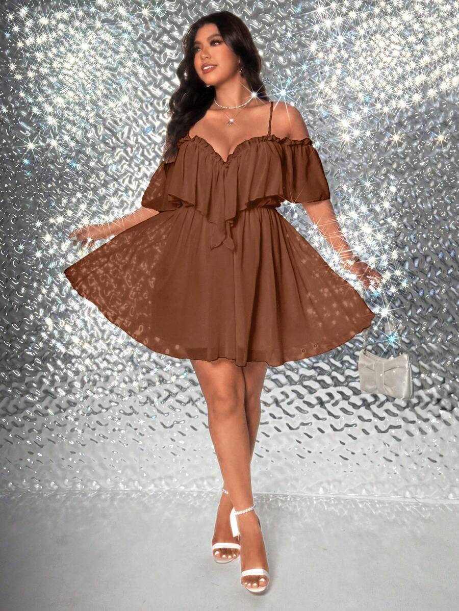 Viva relle vestido deslizante de unicolor elegante y de hombros descubiertos para tallas grandes, verano
