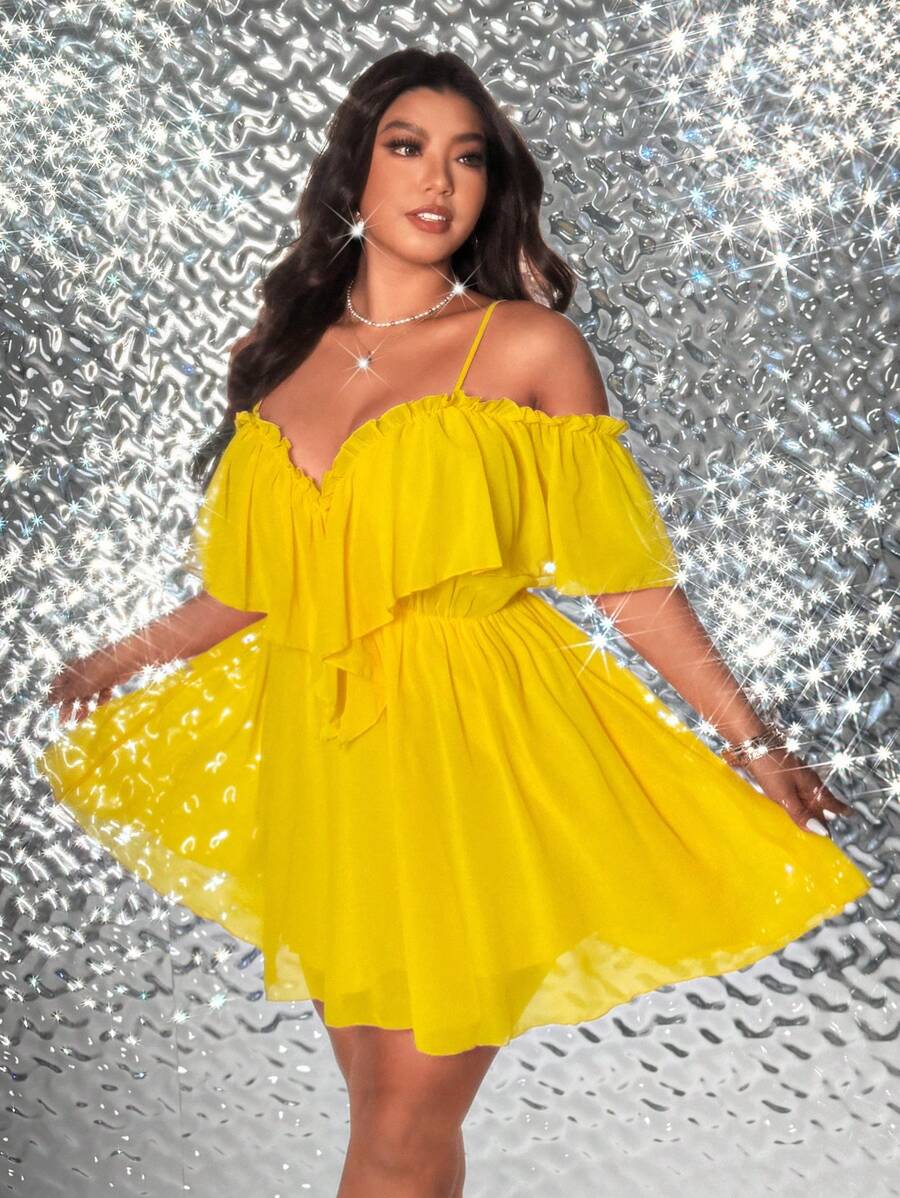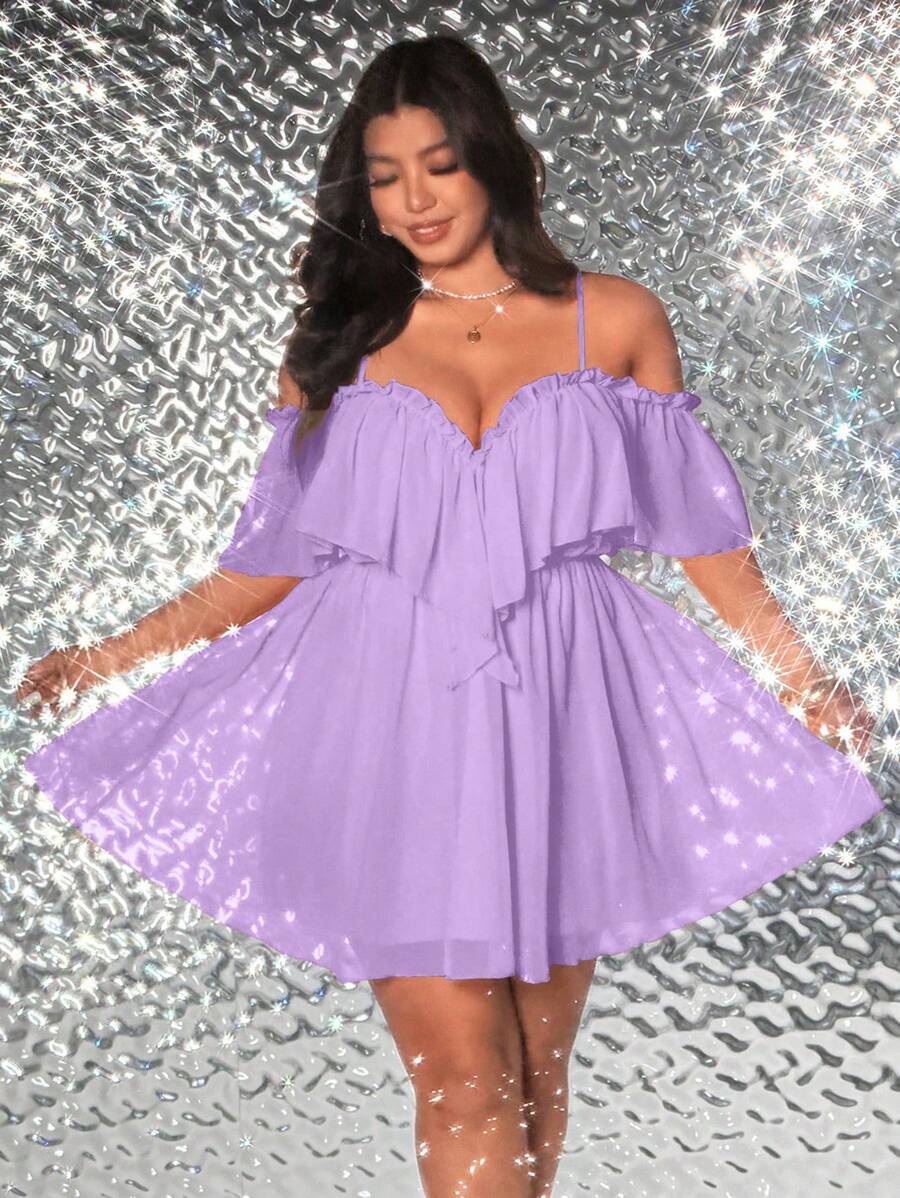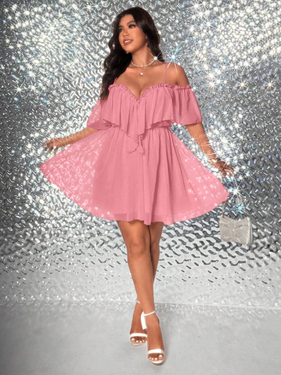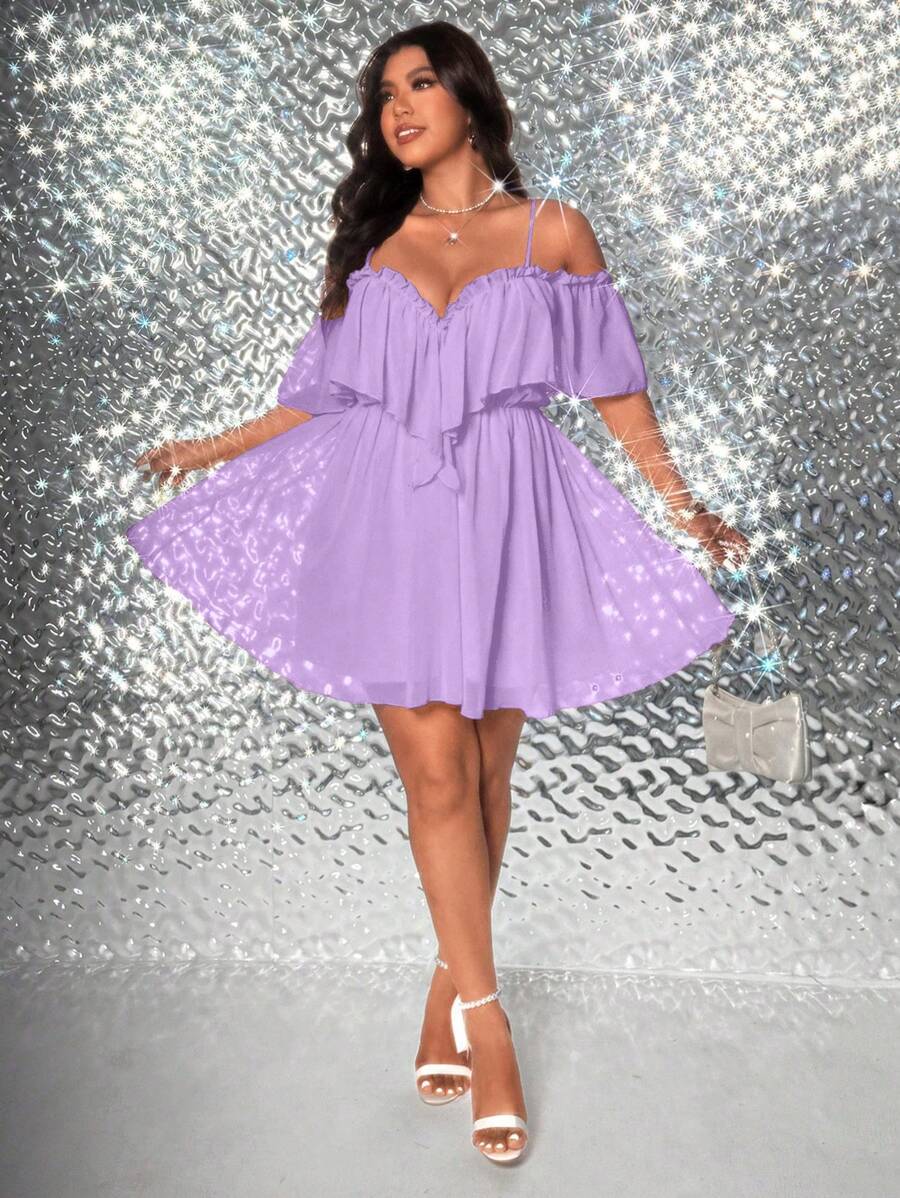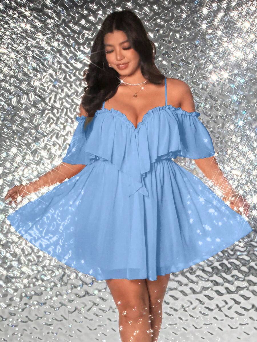 Viva relle vestido deslizante de unicolor elegante y de hombros descubiertos para tallas grandes, verano