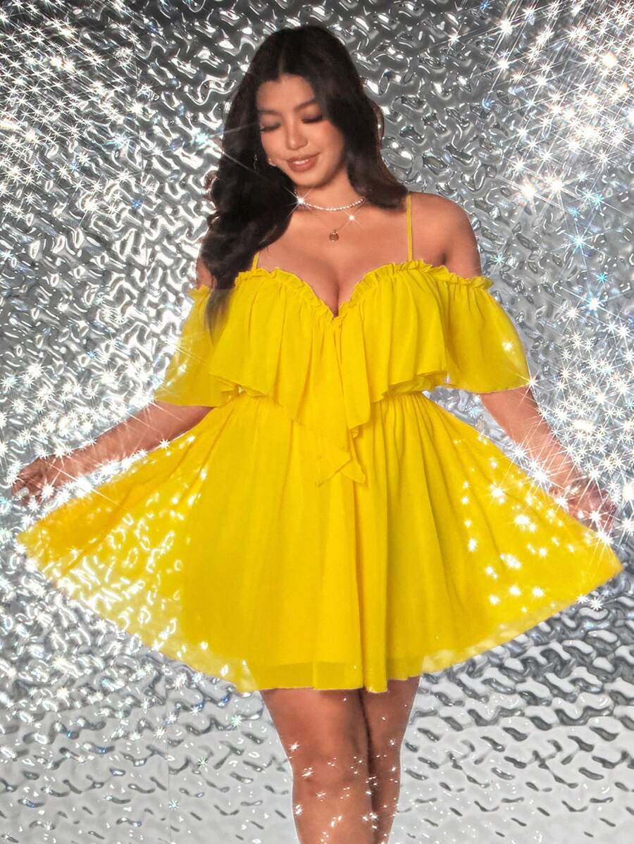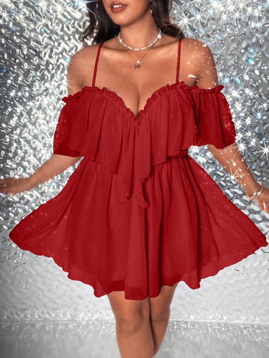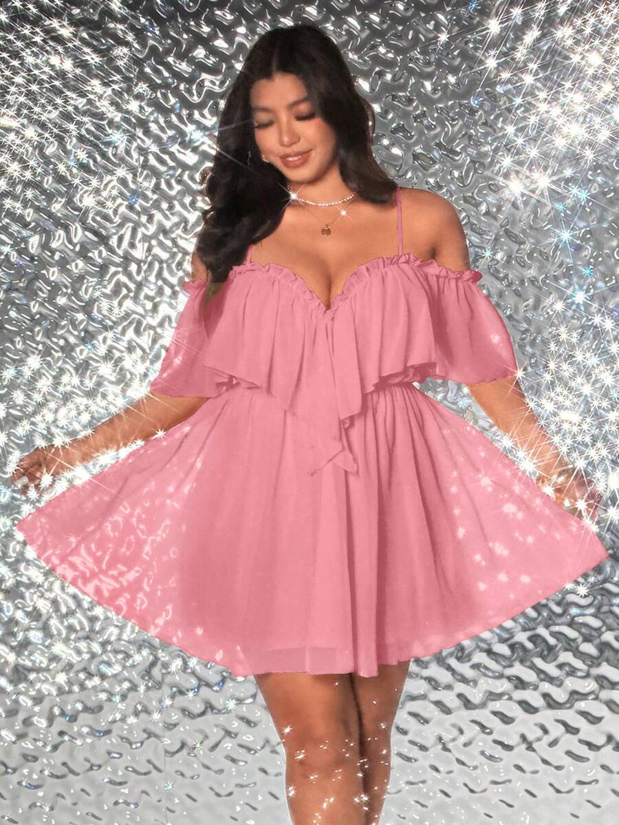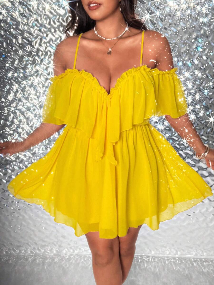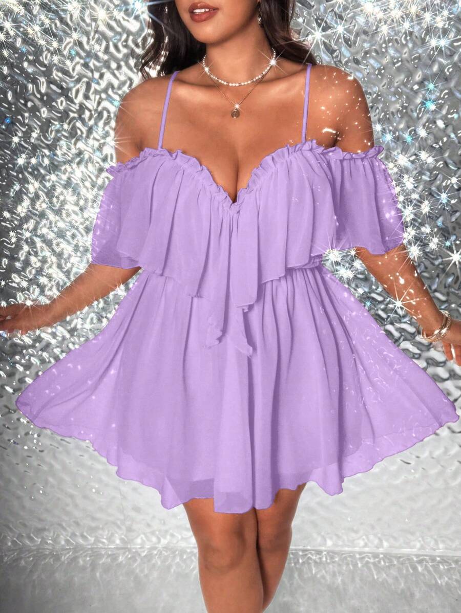 Viva relle vestido deslizante de unicolor elegante y de hombros descubiertos para tallas grandes, verano