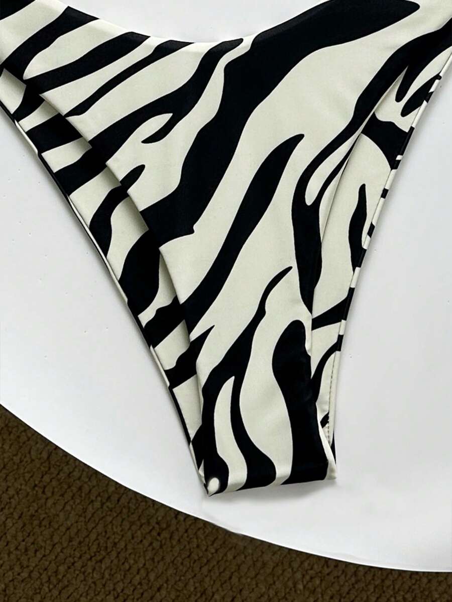 1 pieza parte de abajo de traje de bano reversible de mujer con corte sexy y estampado de cebra, para verano