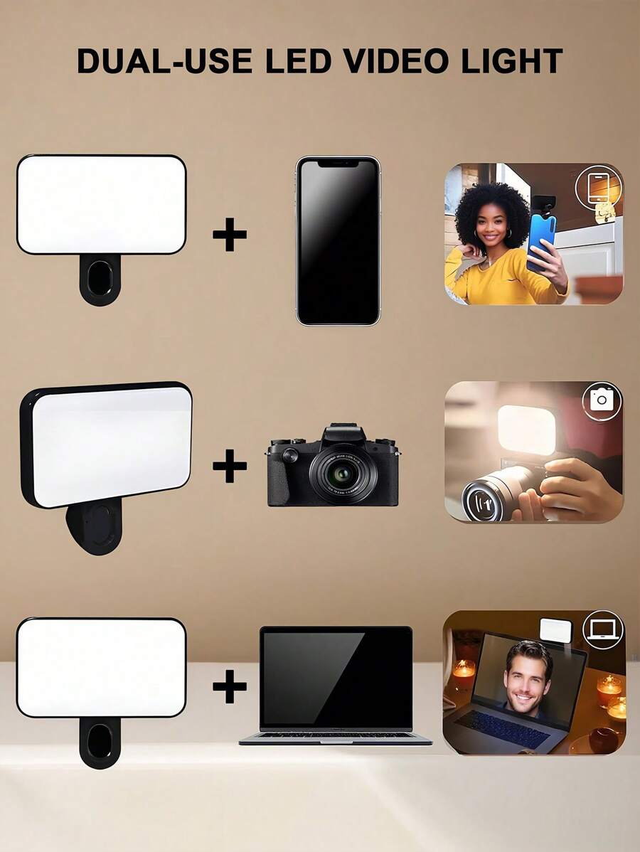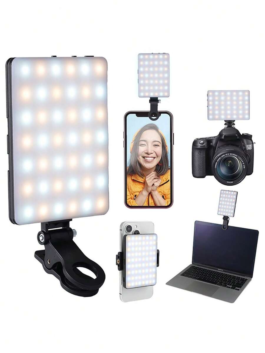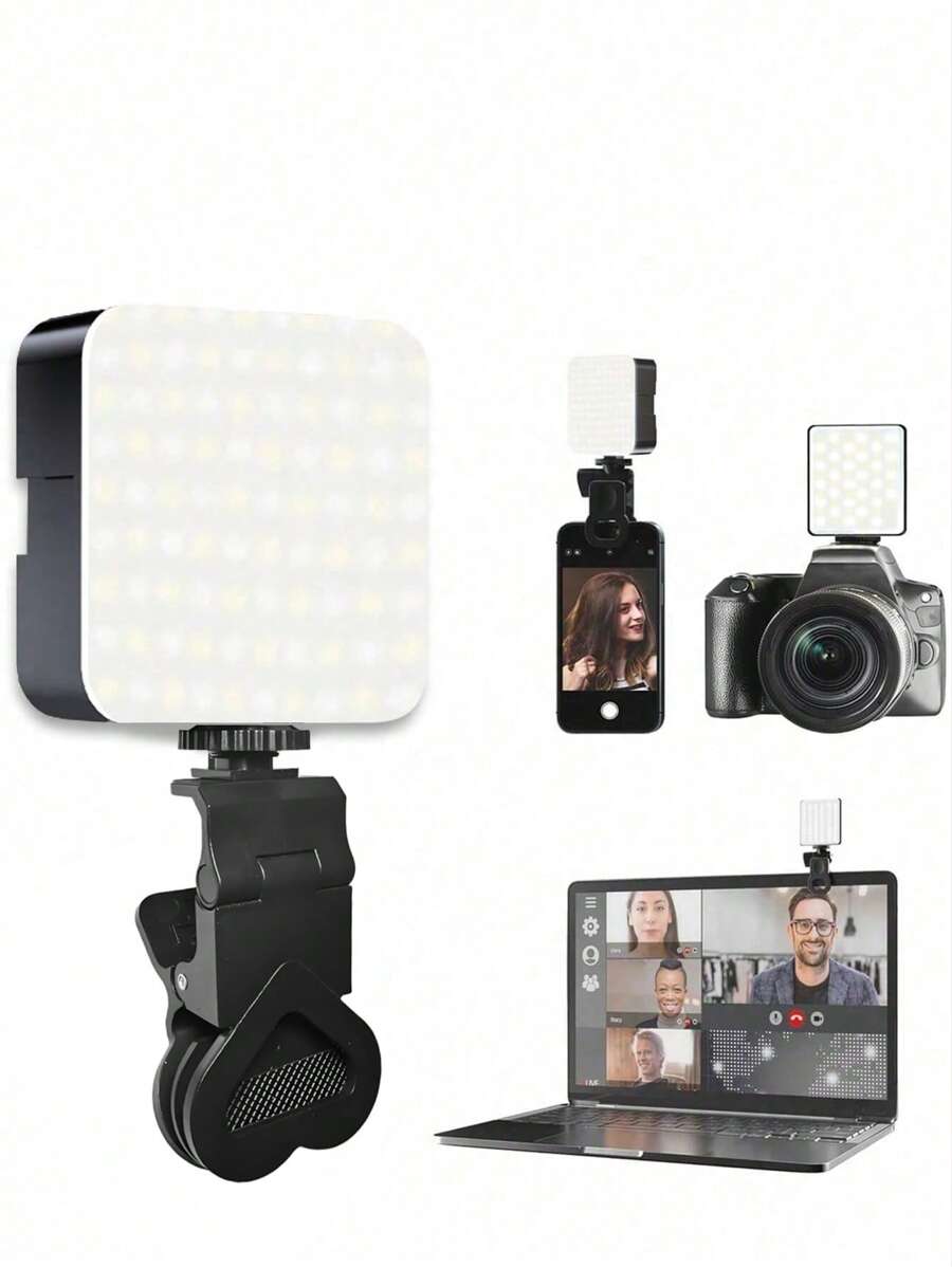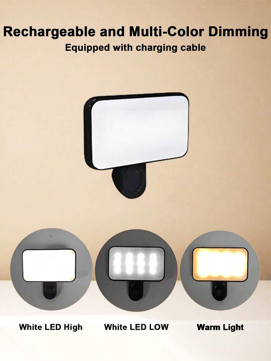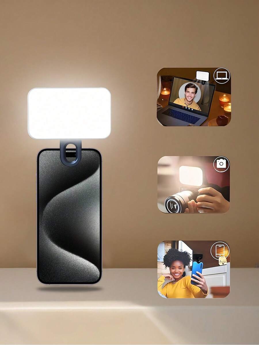 Luz selfie portatil para conferencias de video con clip para camara de telefono, luz led con clip para conferencias de video, 3 modos de iluminacion, recargable, portatil, apta para computadoras portatiles/telefonos/tabletas/videollamadas/maquillaje,