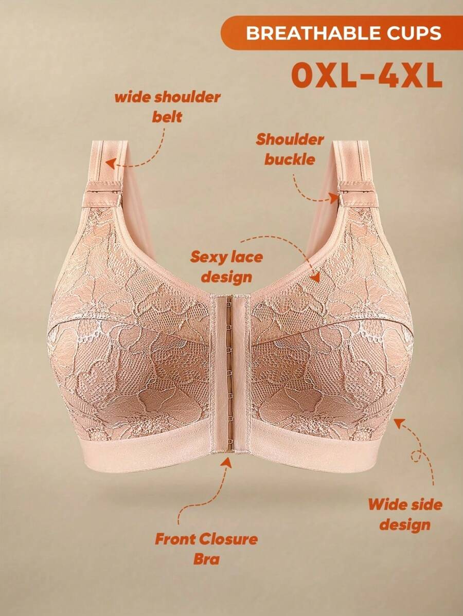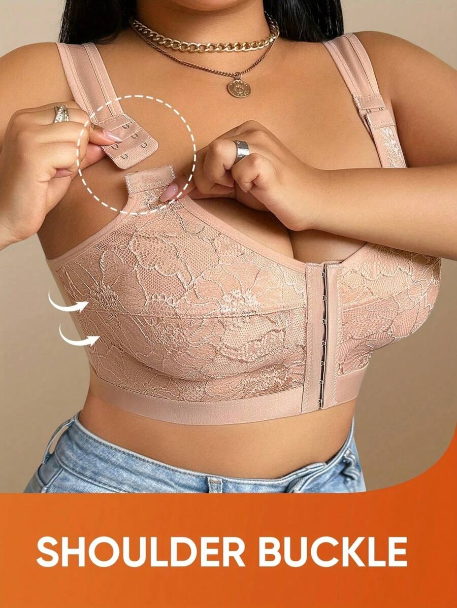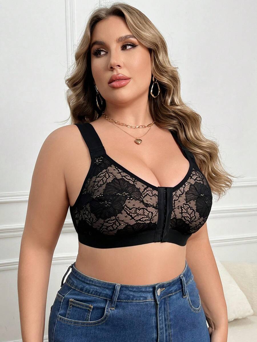 Brasier comodo sin aros con cierre delantero y encaje para tallas grandes