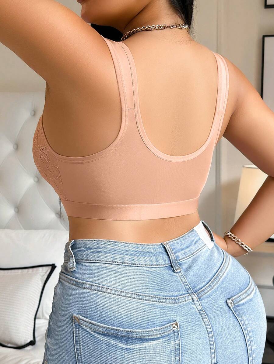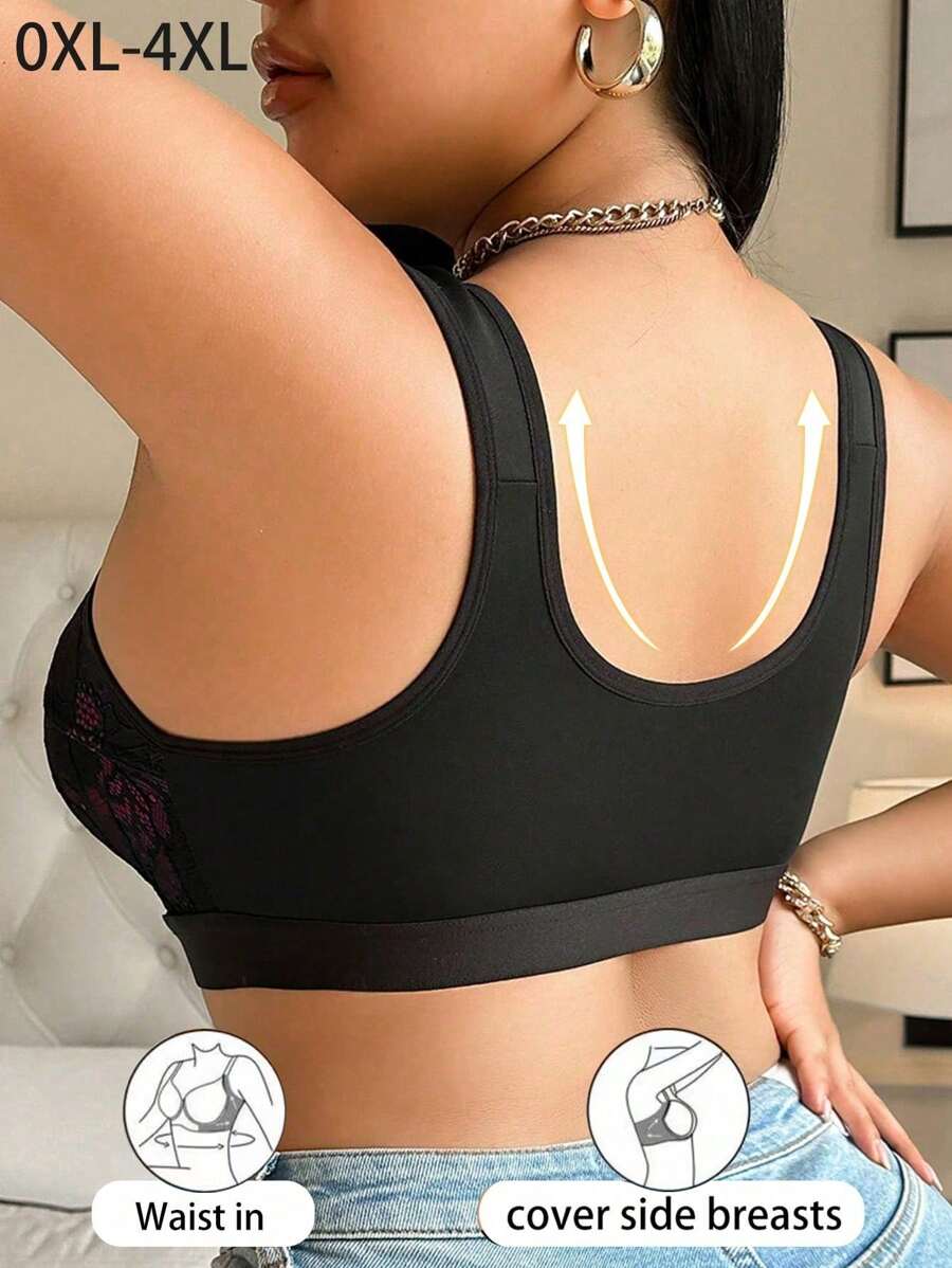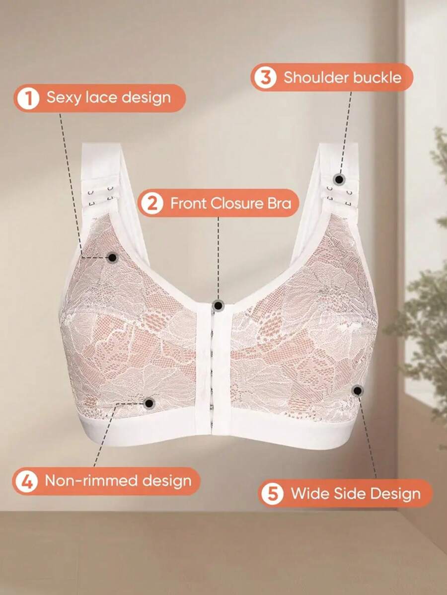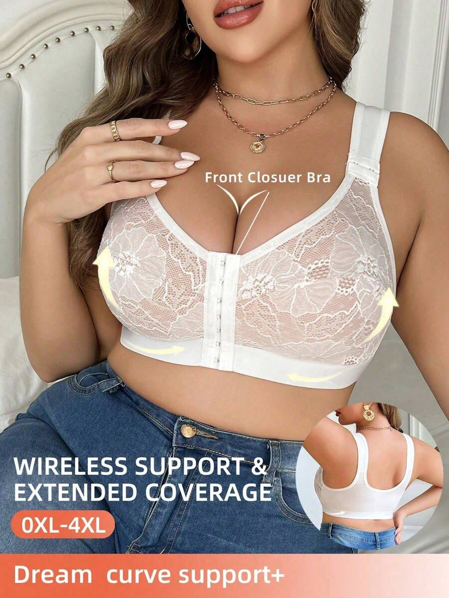 Brasier comodo sin aros con cierre delantero y encaje para tallas grandes