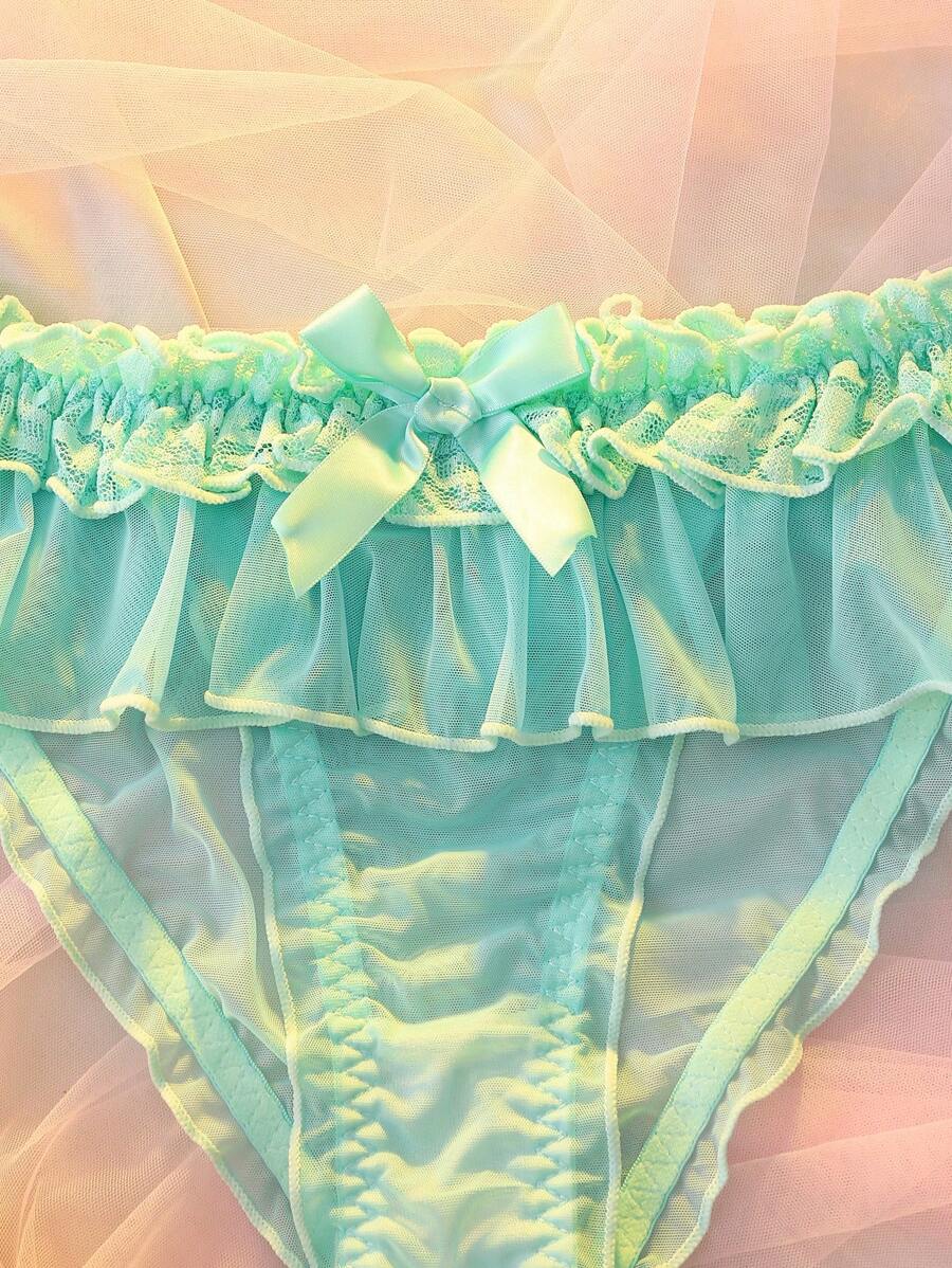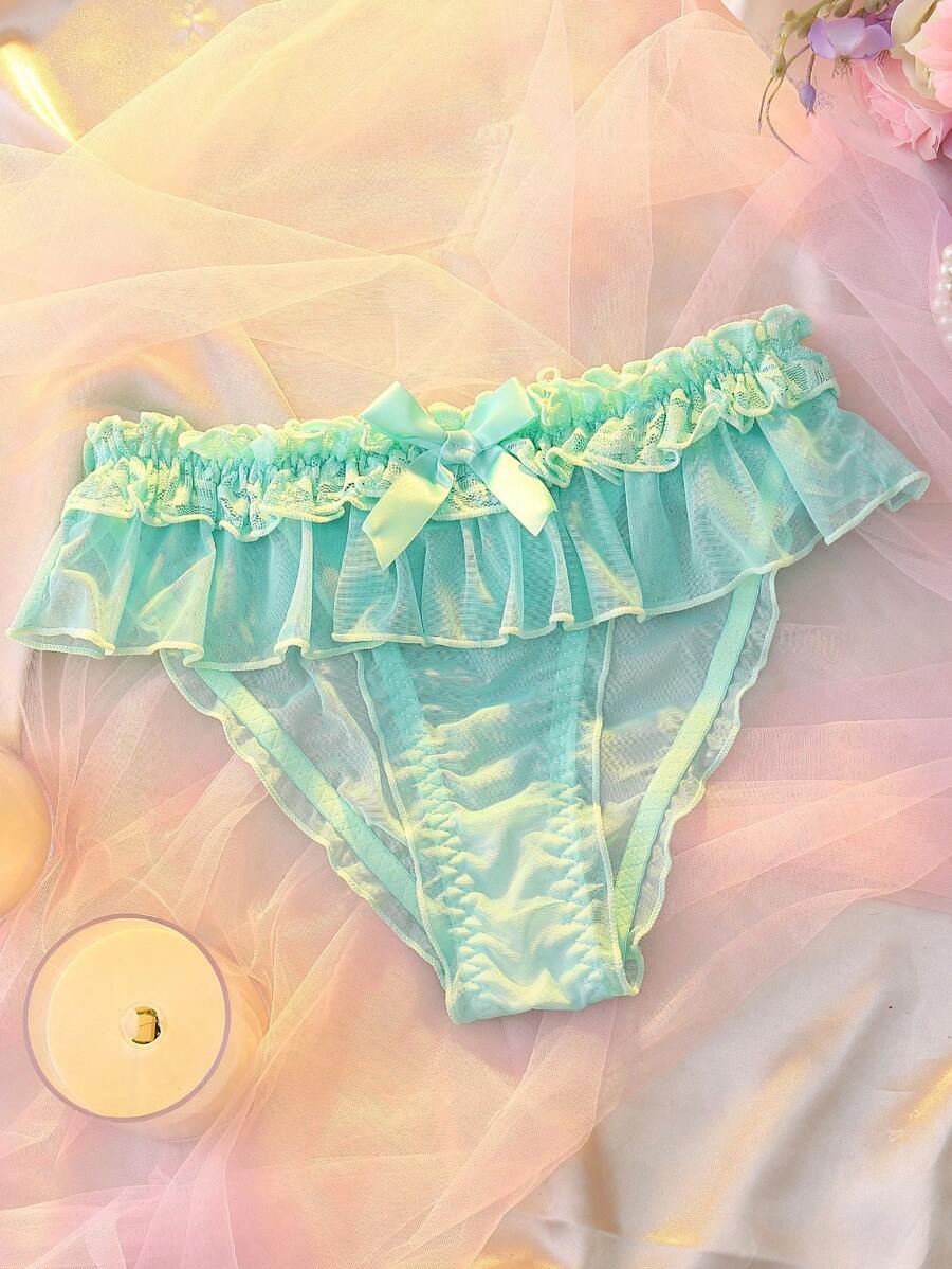 Delicateallure pantalones cortos de encaje floral transparente, de estilo romantico, con bordes de volantes y escalonados, con lazo, de multiples capas, color verde menta, para fiesta, vacaciones y boda
