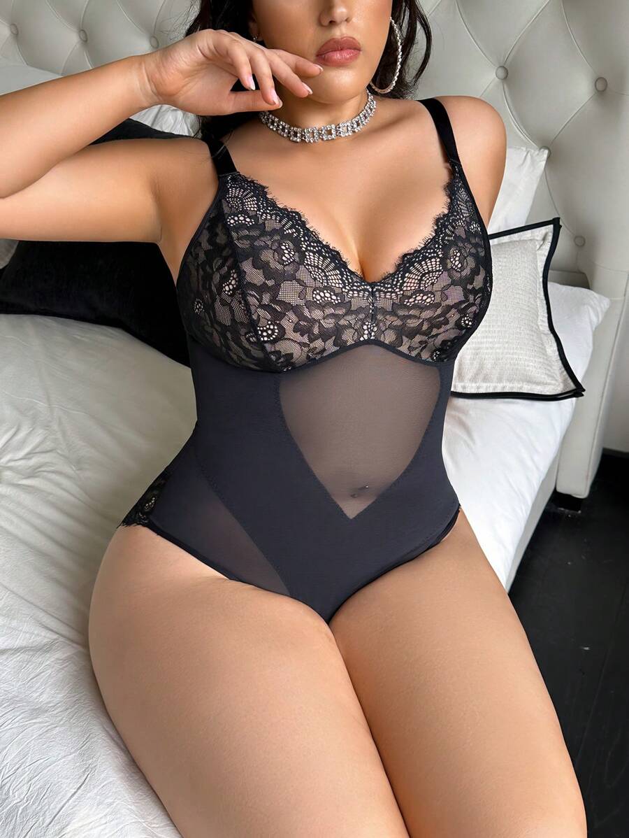 1 pieza bodyduit con parches de encaje para mujer de talla grande