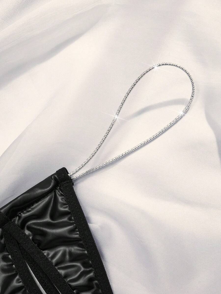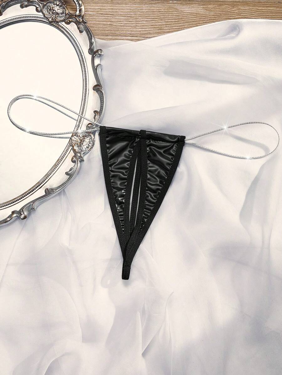 Spicyhot lenceria ultra sexy "lady boss" minimalista con abertura en la entrepierna, de pu brillante y elastica, color negro, para fiestas, san valentin y salir de fiesta