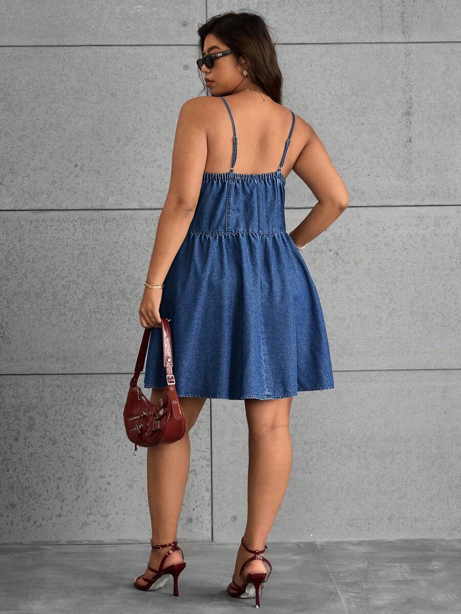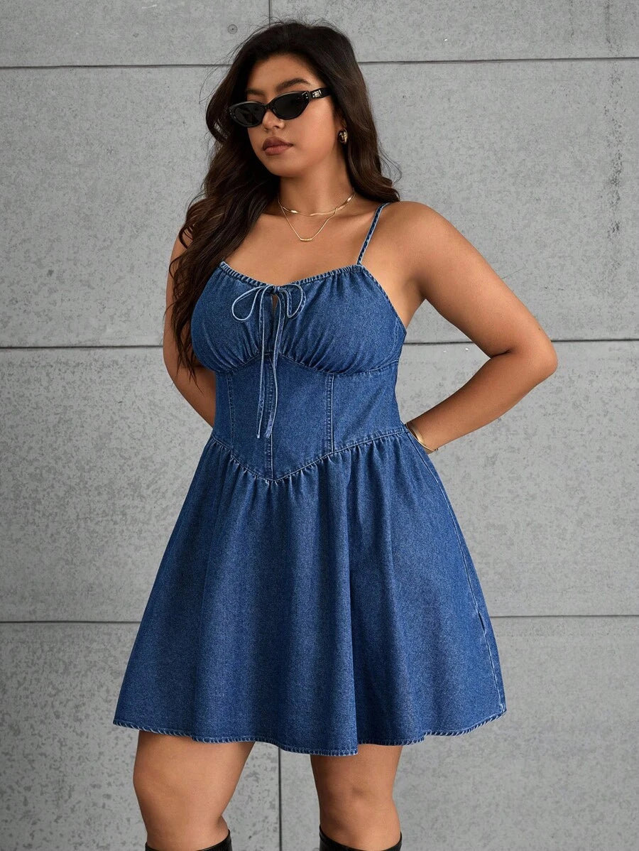 Vestido de mezclilla de tirantes con diseno anudado y unicolor, de tallas grandes y sexy para el verano