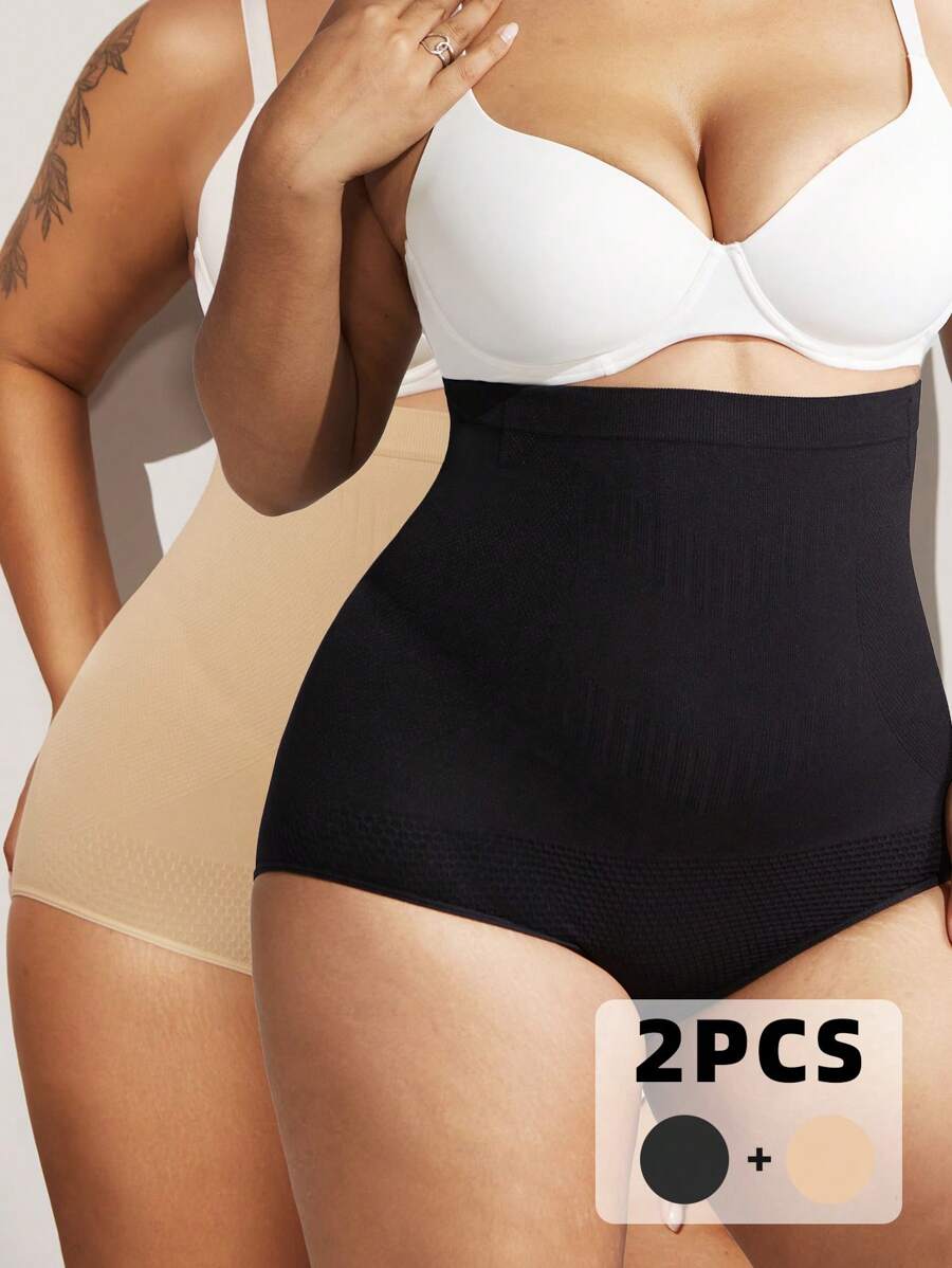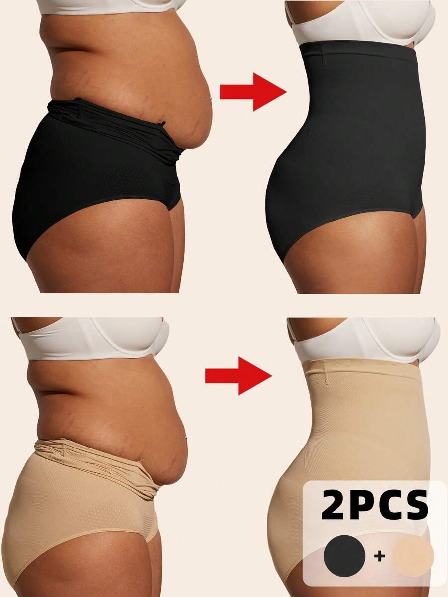 2 piezas pantalones cortos moldeadores de cintura alta y talla grande para reducir el abdomen, fondo moldeador sin costuras para el verano