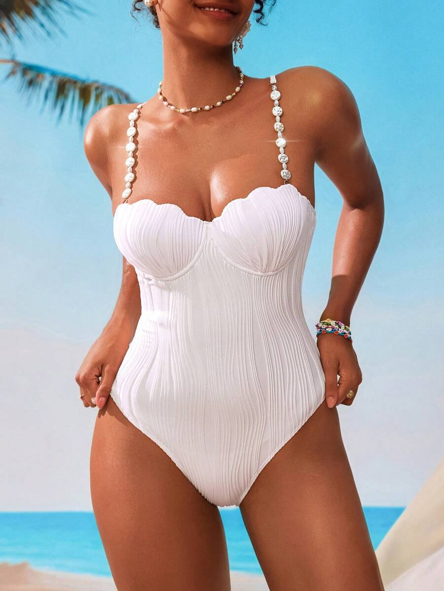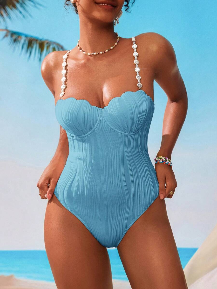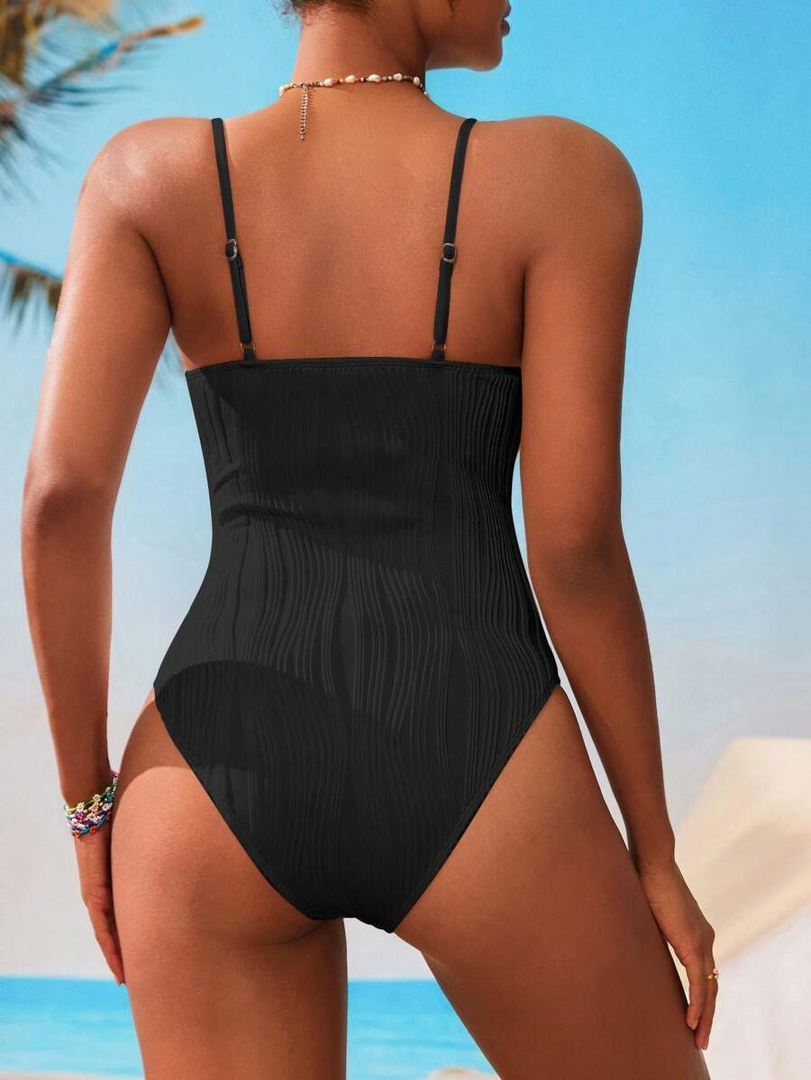 1 pieza traje de bano de una sola pieza de unicolor para mujer, de moda para el verano