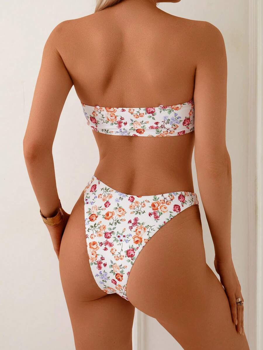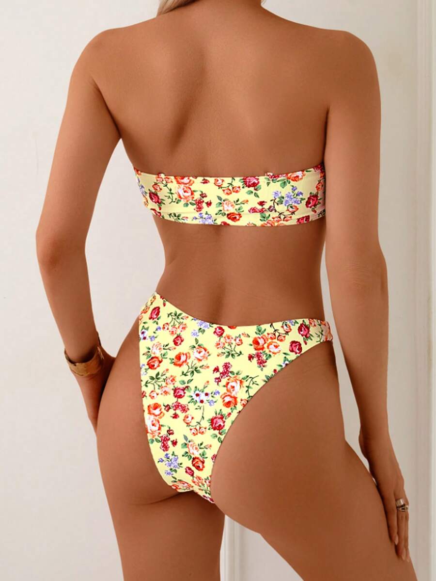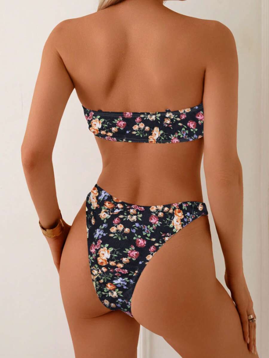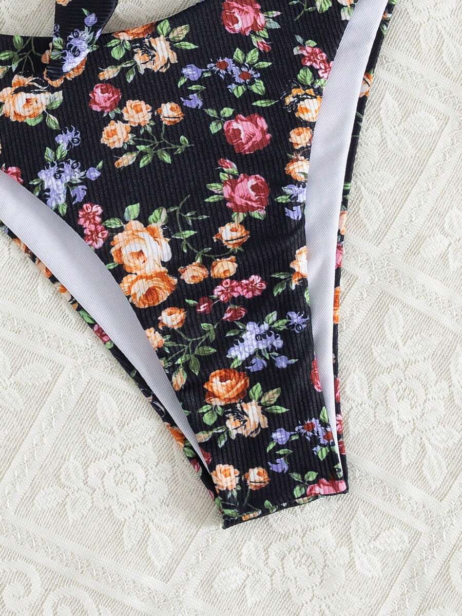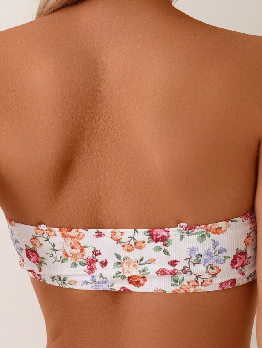 2 piezas conjuntos de ropa de verano para playa para mujer, top de tirantes con estampado floral y conjunto de bikini lindo con lazos a los lados