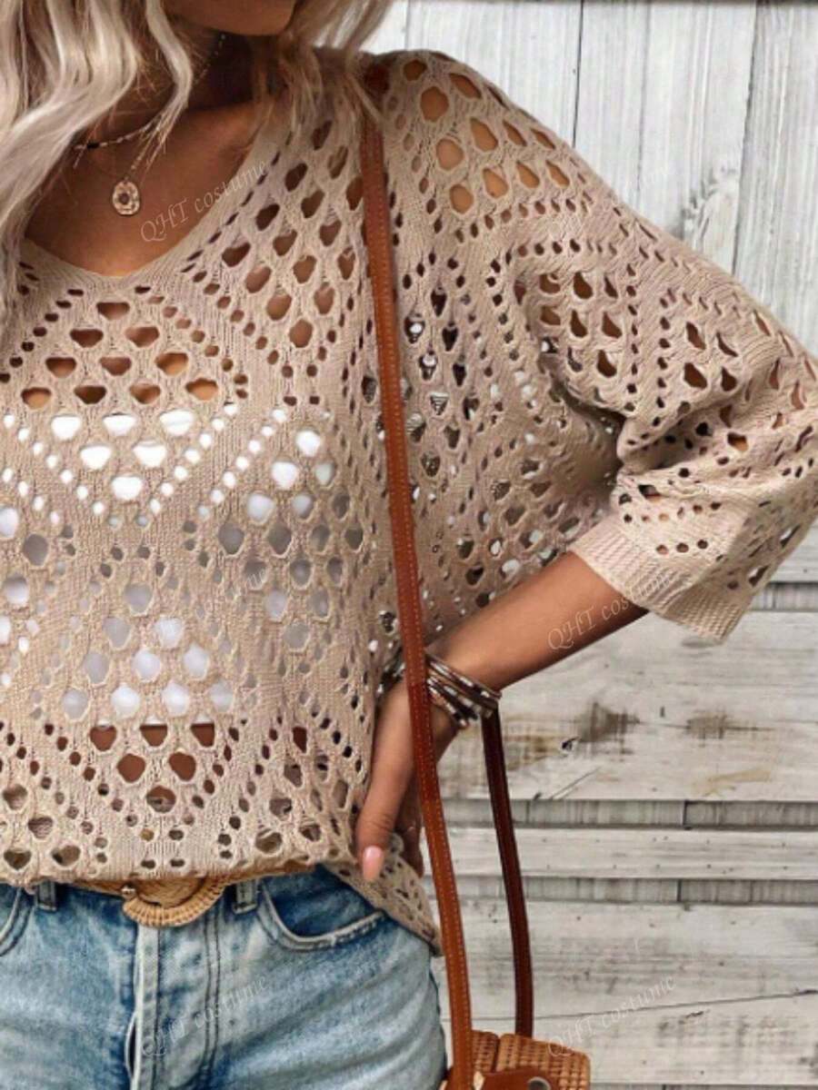 1 pieza top de gasa de manga murcielago informal y de unicolor para la playa y vacaciones, primavera/verano