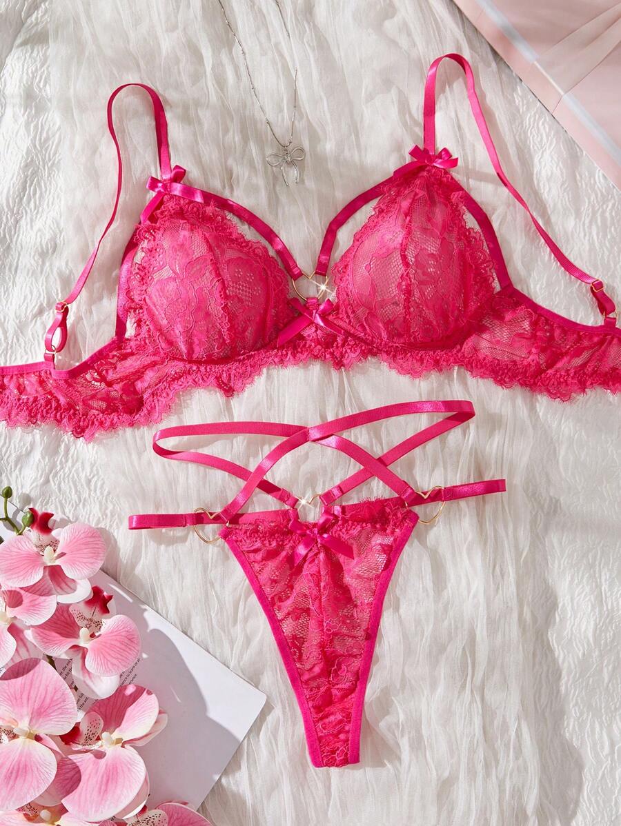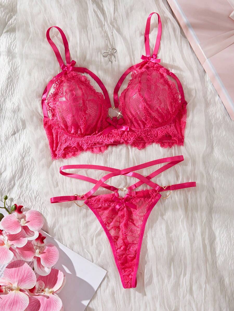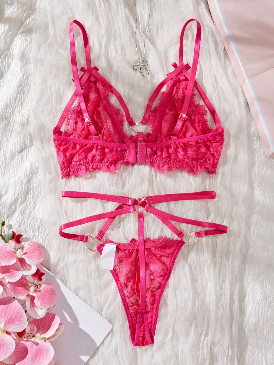2 piezas conjunto de lenceria sexy con encaje, pestanas y diseno de corazon, sin aros