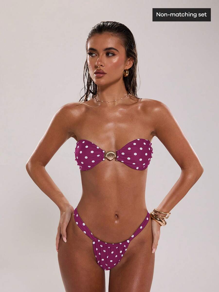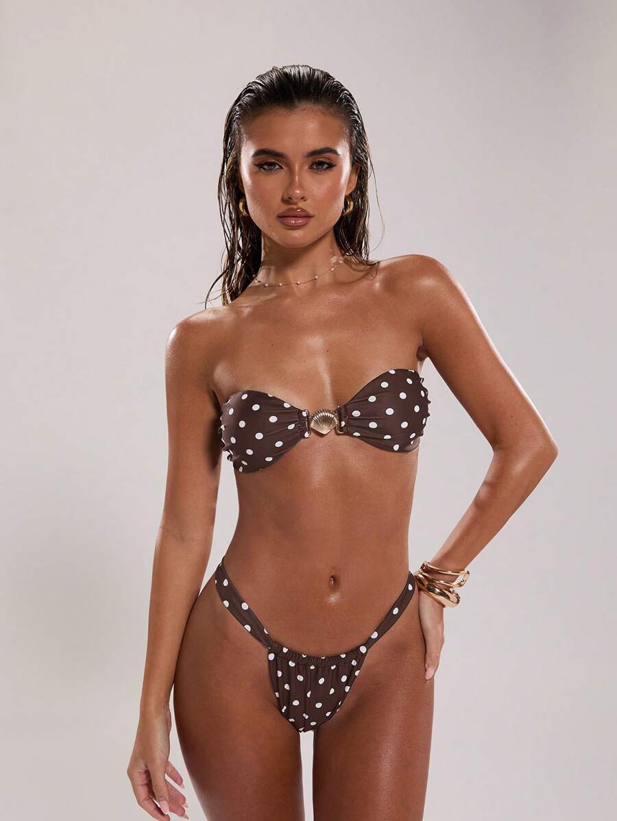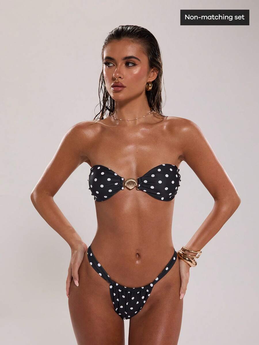 Braga de bikini de mujer, ropa de bano sexy tipo tanga con estampado de lunares, traje de bano lindo para fiestas, vacaciones y playa, ideal para primavera/verano