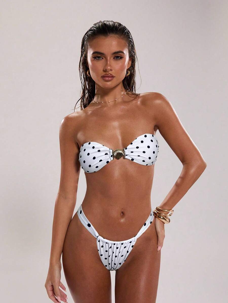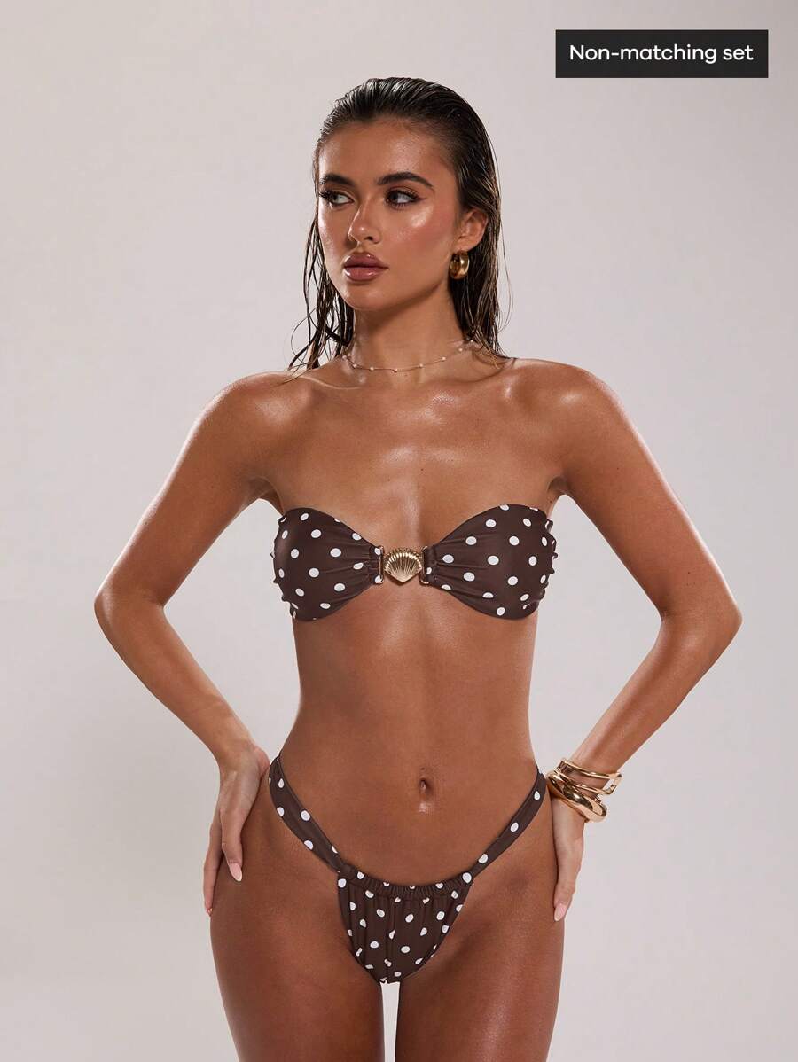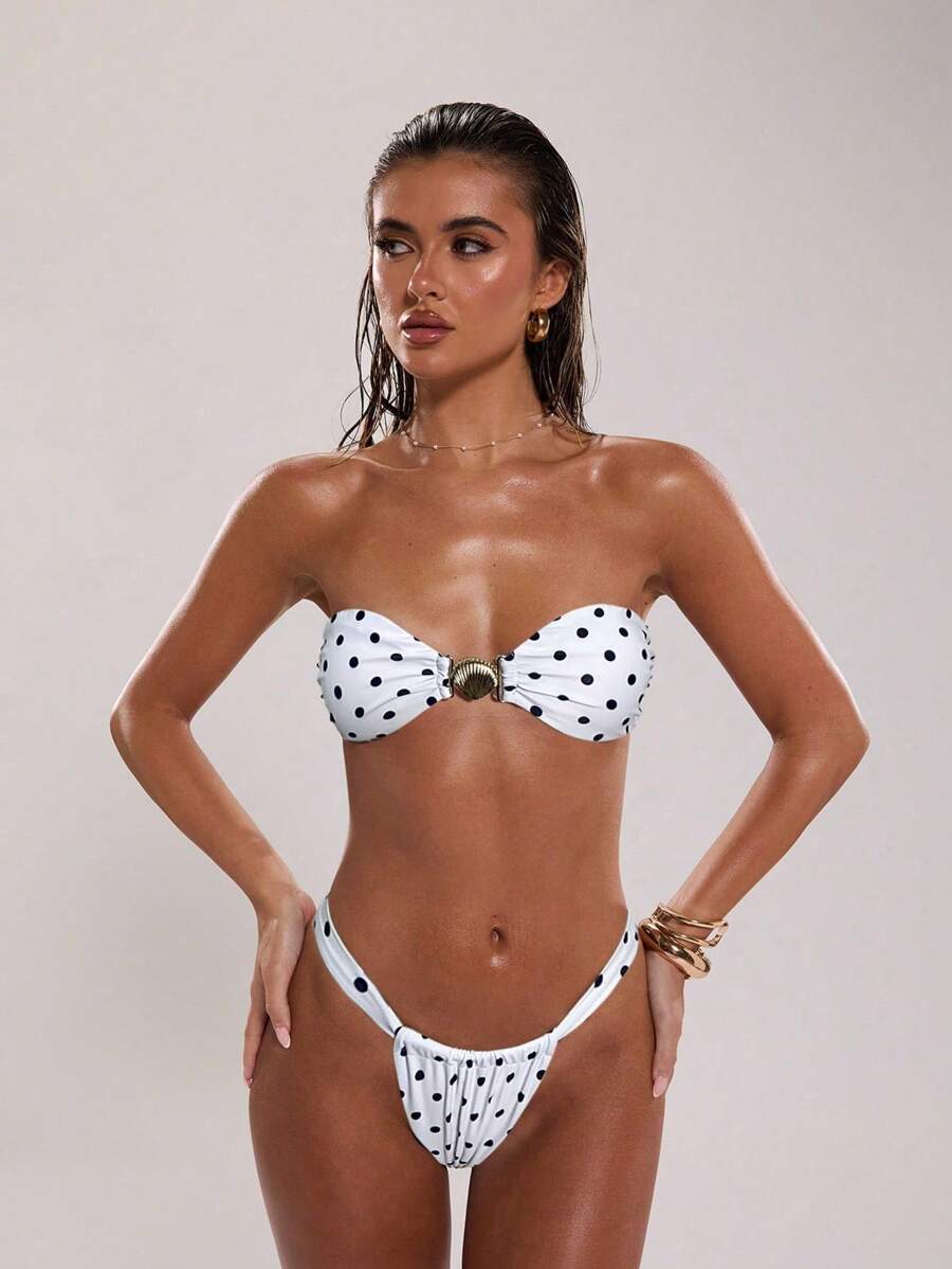 Braga de bikini de mujer, ropa de bano sexy tipo tanga con estampado de lunares, traje de bano lindo para fiestas, vacaciones y playa, ideal para primavera/verano