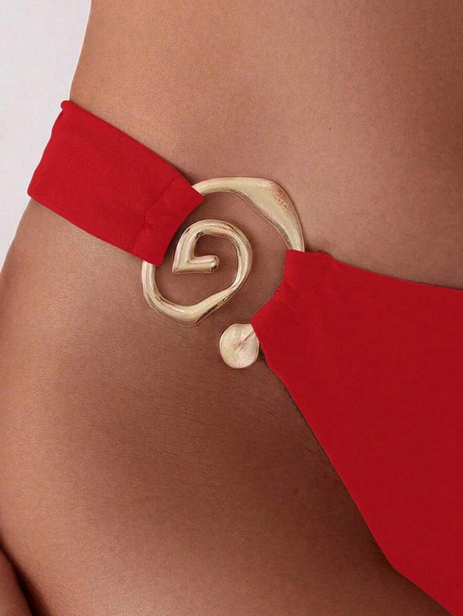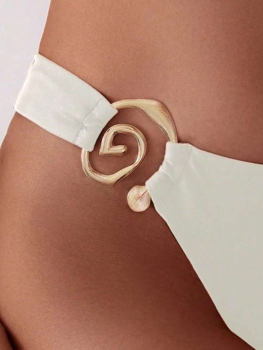 Bottom de bikini para mujer de unicolor con decoracion metalica, para el verano y la playa