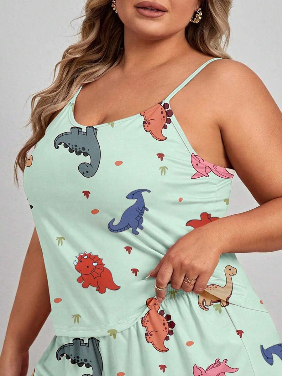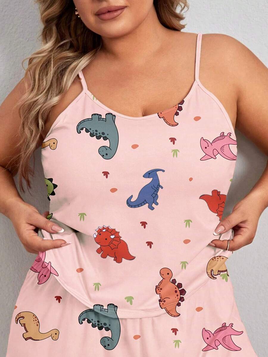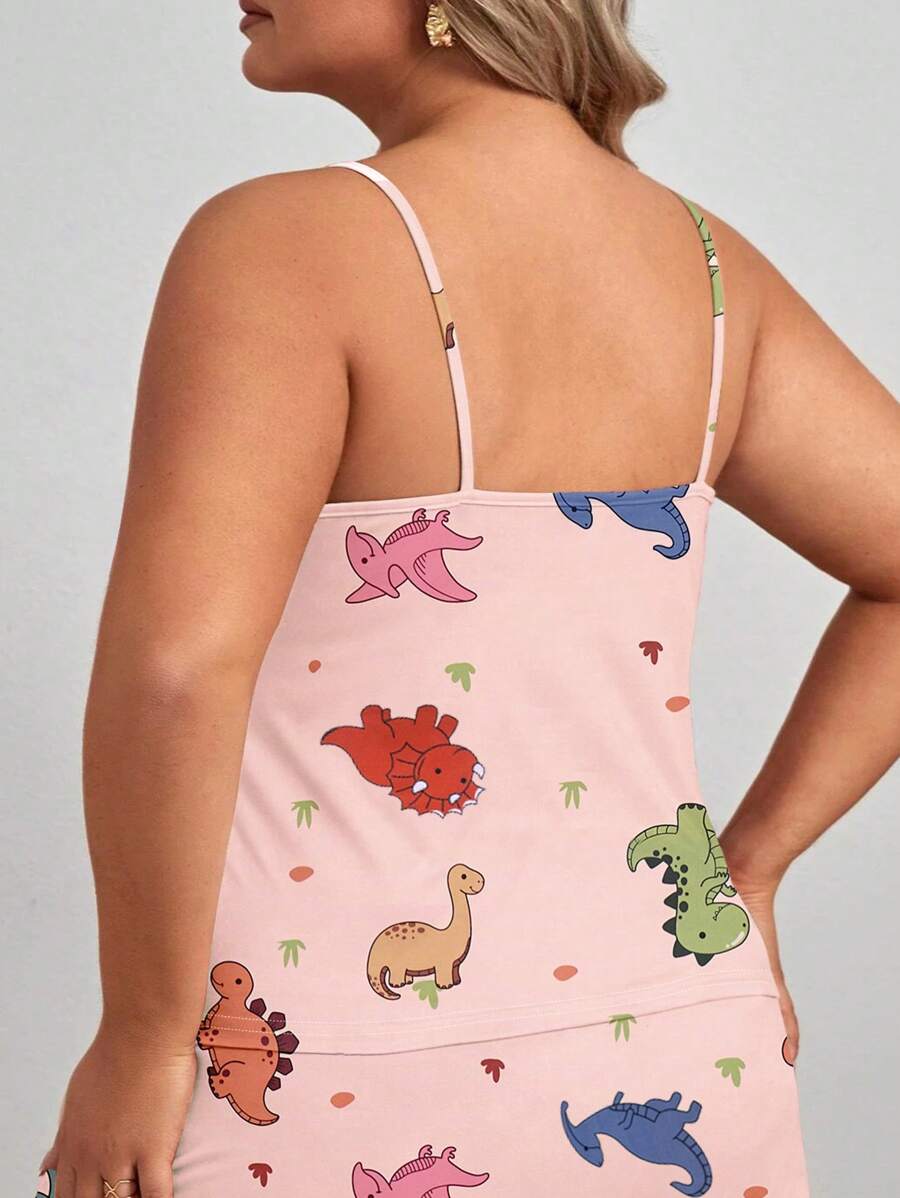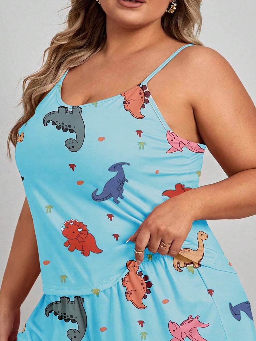 1 pieza camiseta sin mangas para mujer talla grande, parte superior con tirantes finos y escote redondo con estampado de dinosaurio lindo, primavera/verano